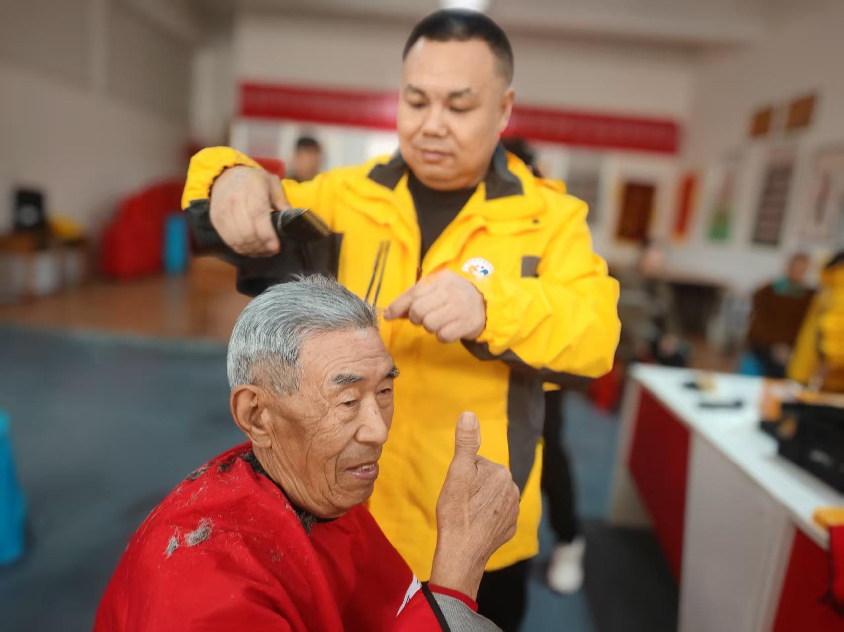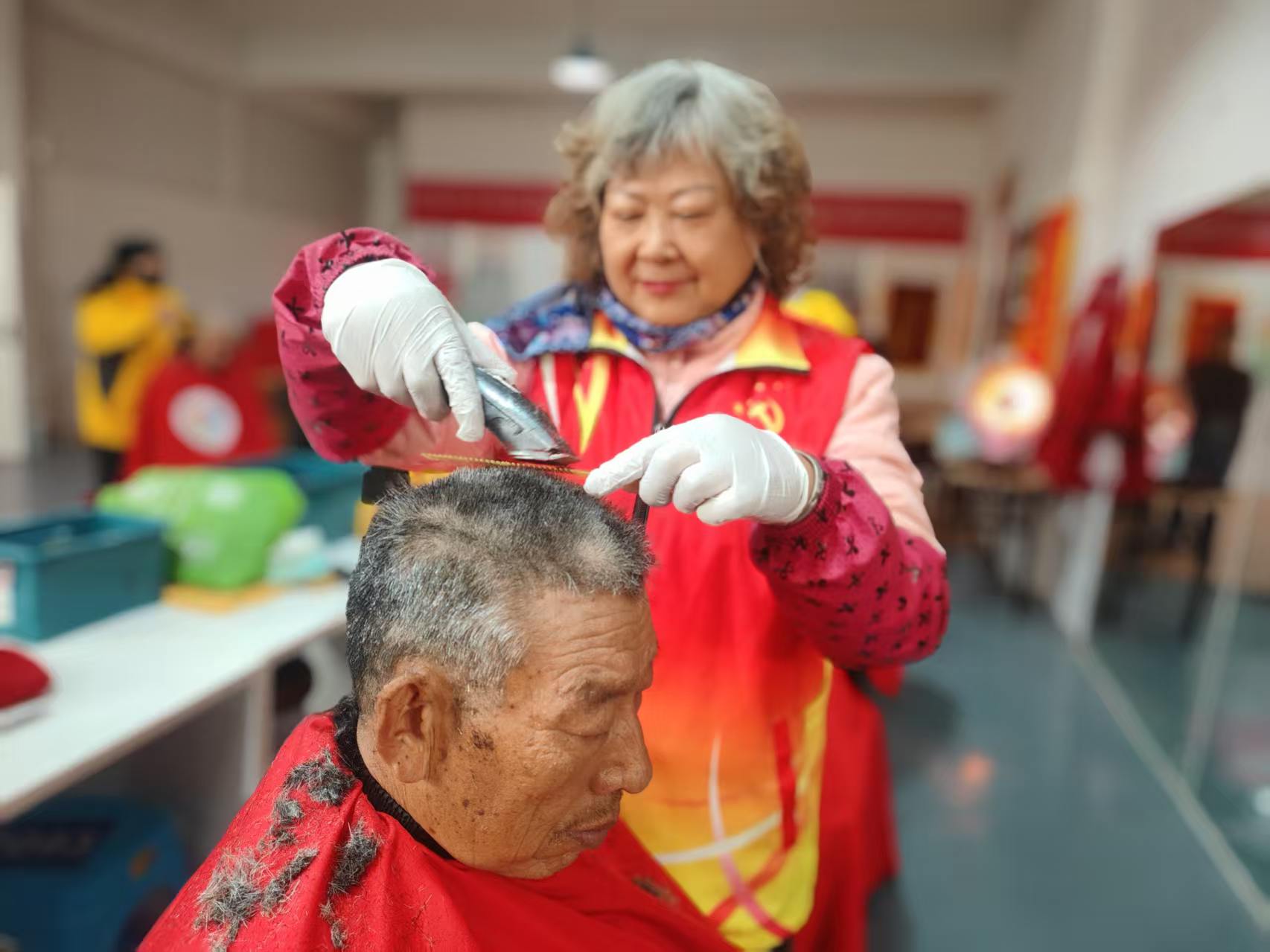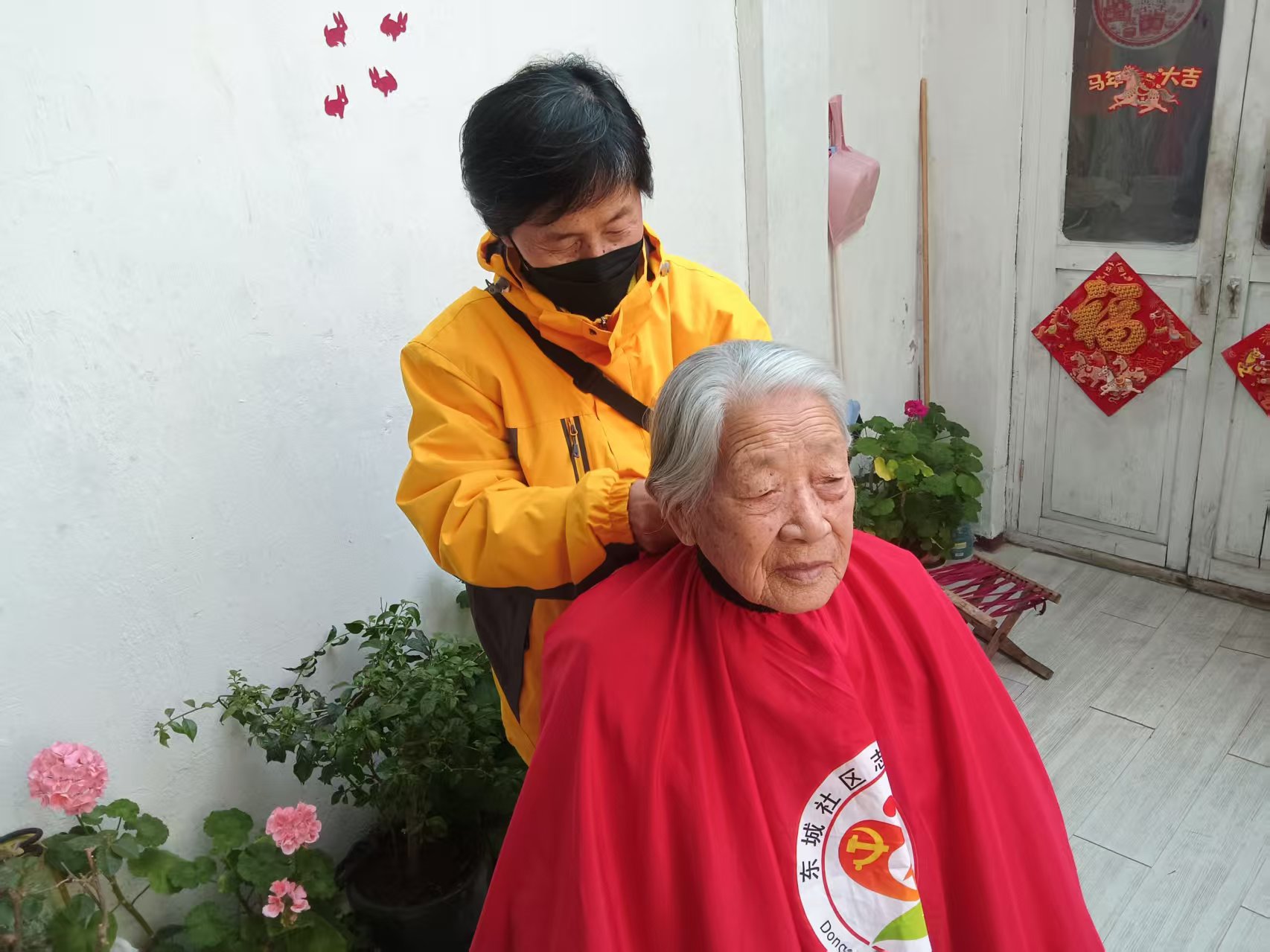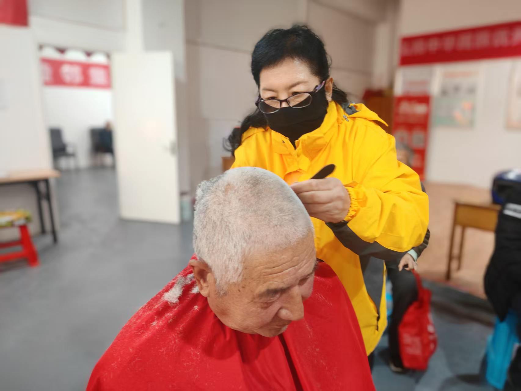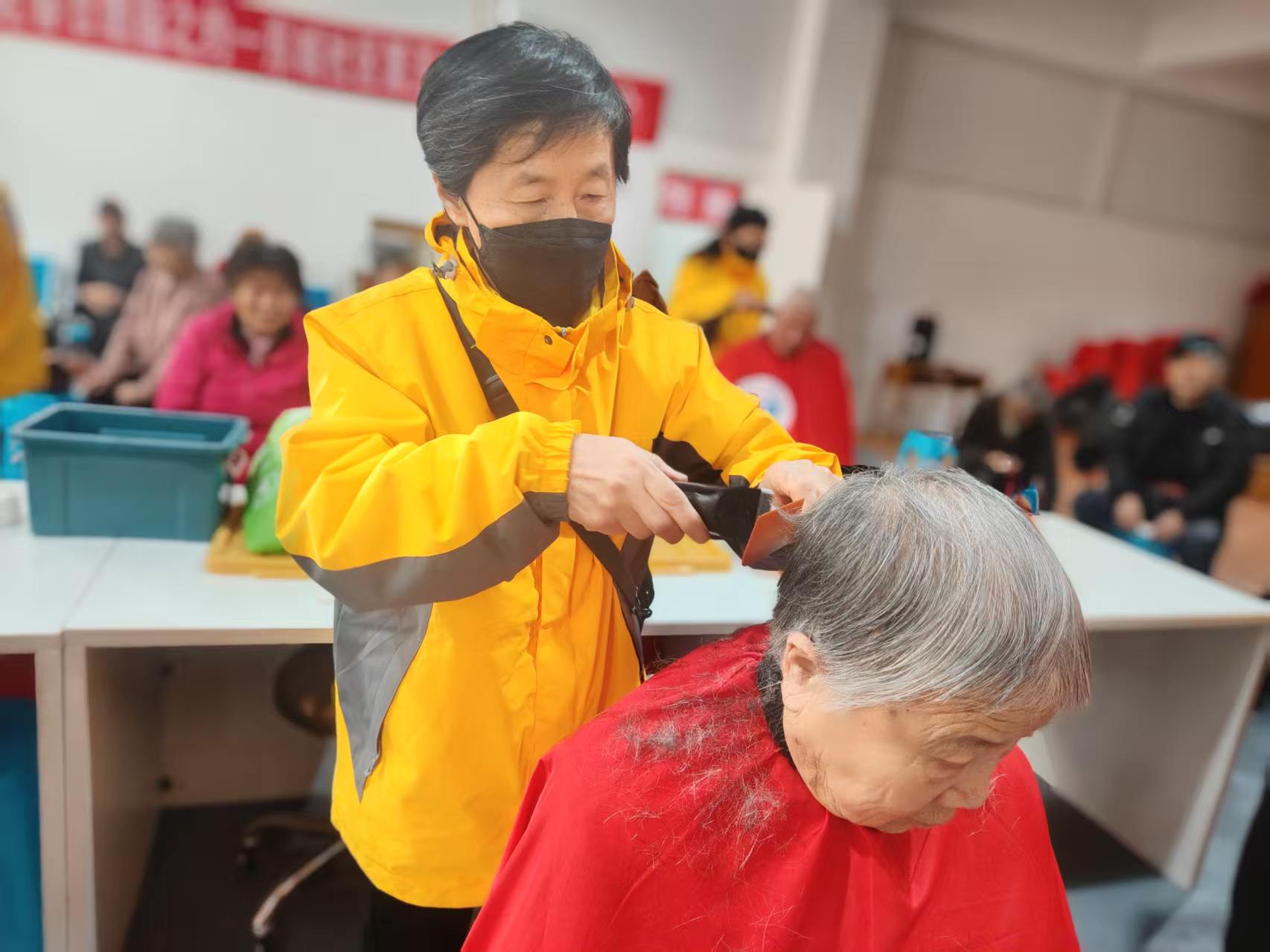 东城社区志愿服务队爱心义剪,每周二在龙华财富大厦院里社区活动室为老人免费理发,并且为腿脚不方便的老人上门服务。