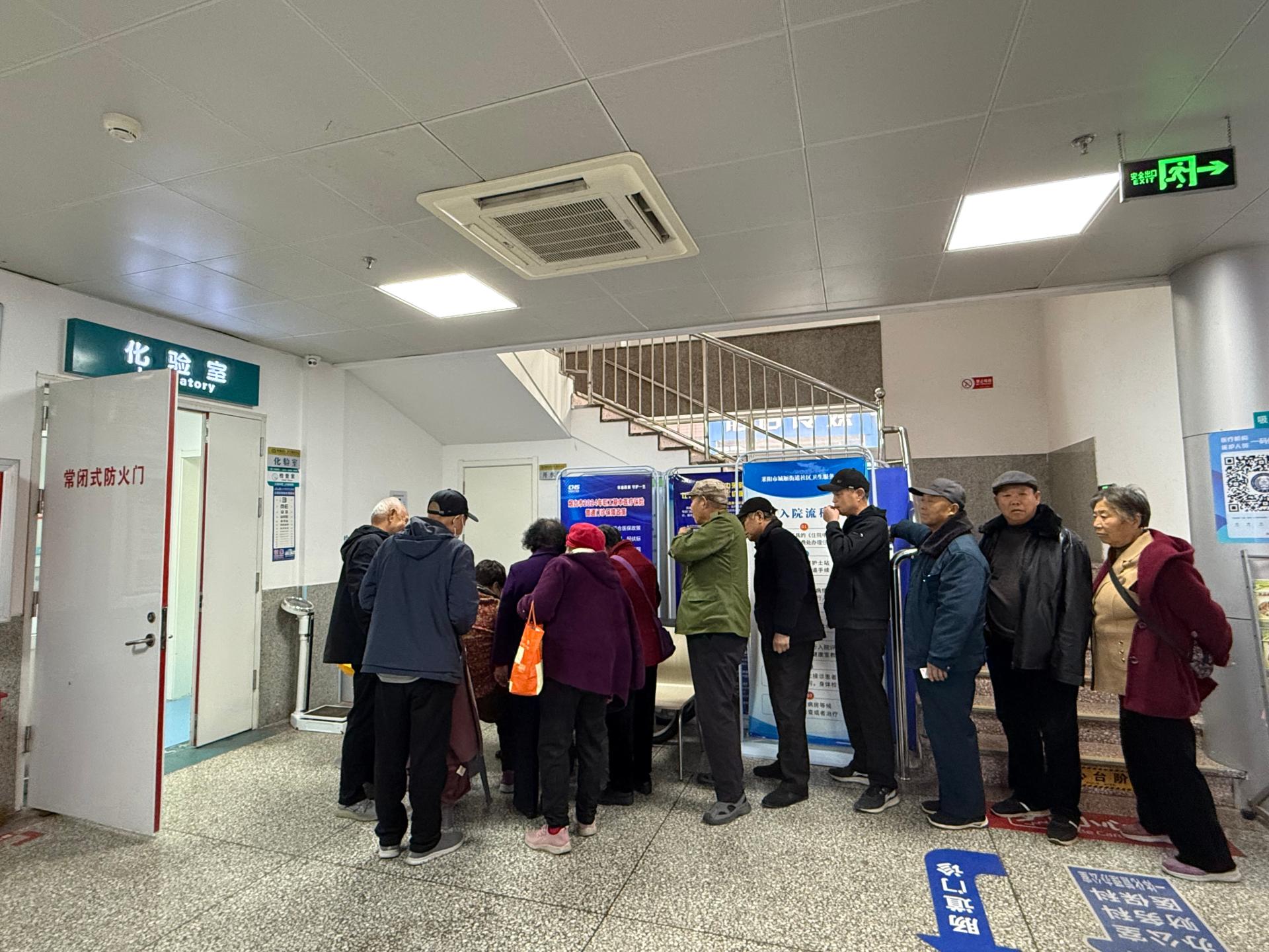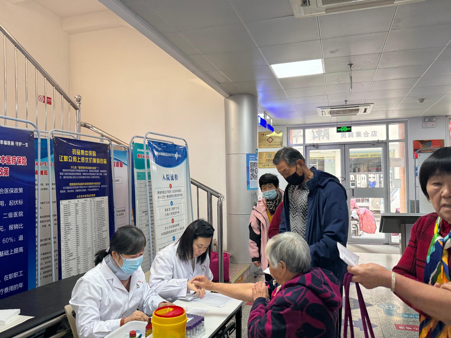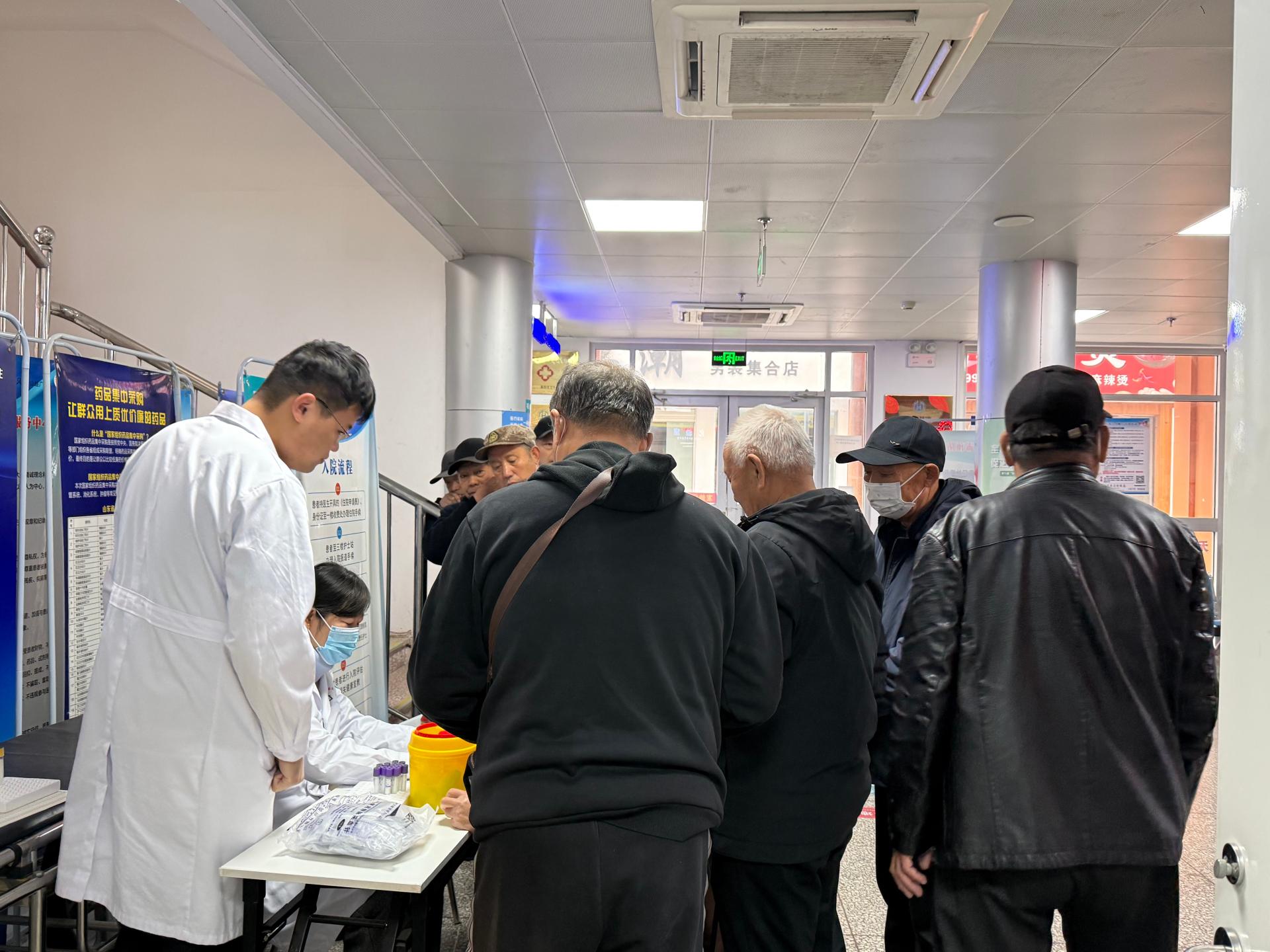 莱阳市城厢街道社区卫生服务中心为辖区的老年人进行免费测量血压、 问诊活动, 并进行健康指导。