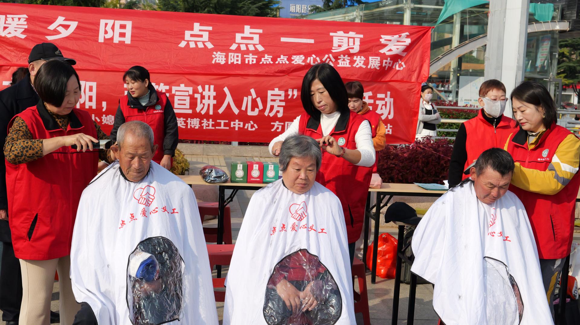 重阳节到来之际,点点爱心公益发展中心配合民政局创意园开展为老服务活动,为60岁以上老人义务理发,向老人们表达敬意。