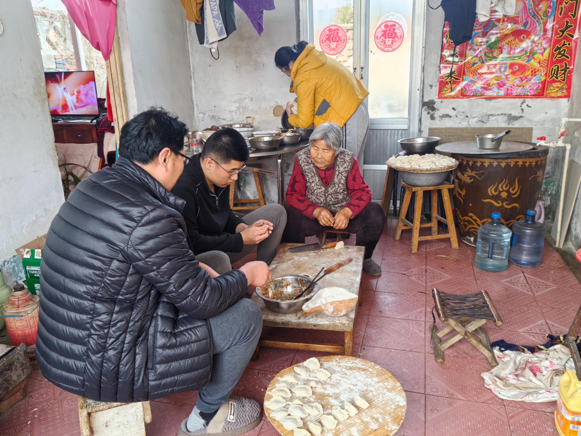 山上李家村开展走访关爱独居老人,空巢家庭活动,为特殊家庭送上温暖和关爱,帮助老人上门包饺子,打扰卫生等