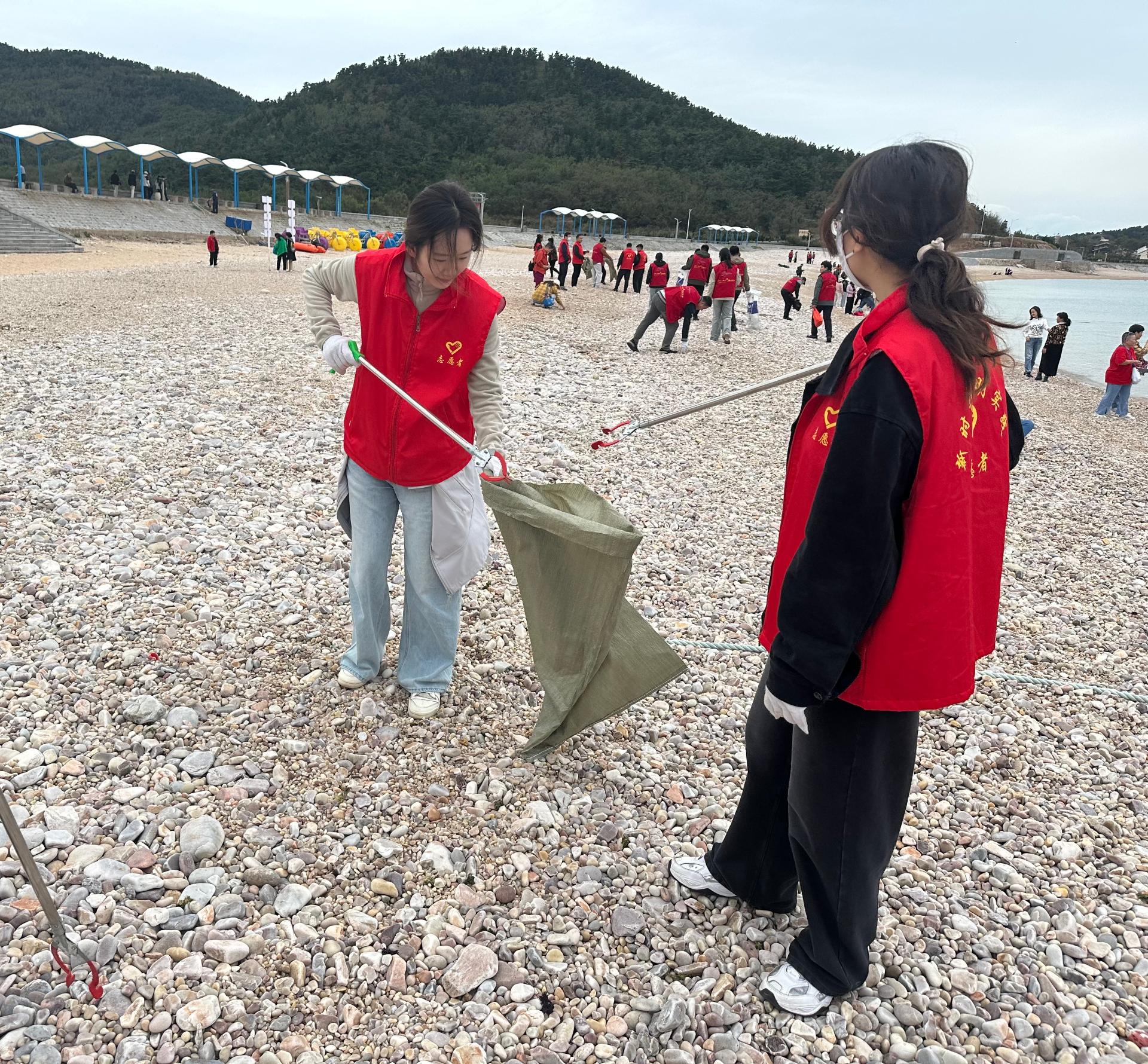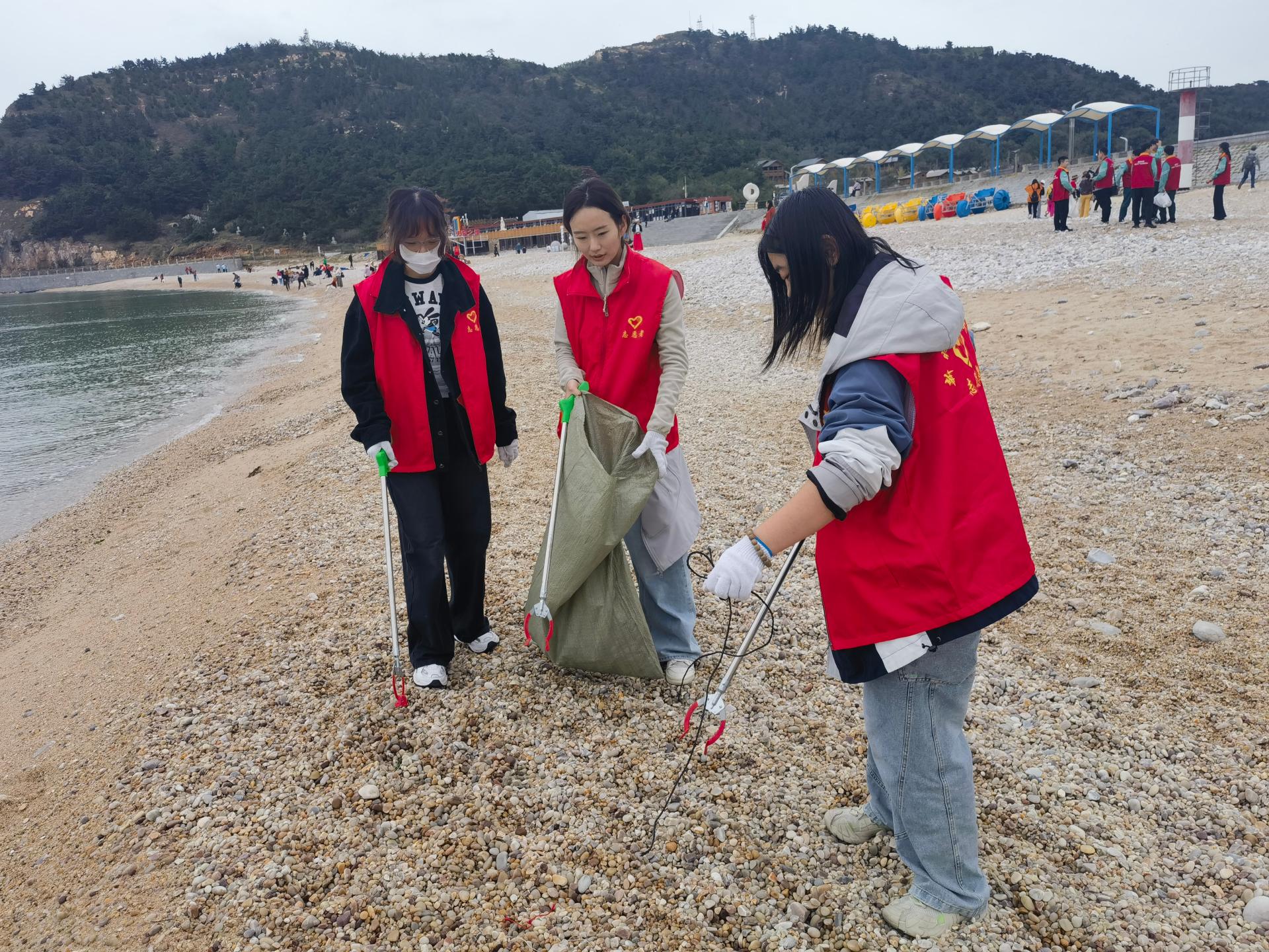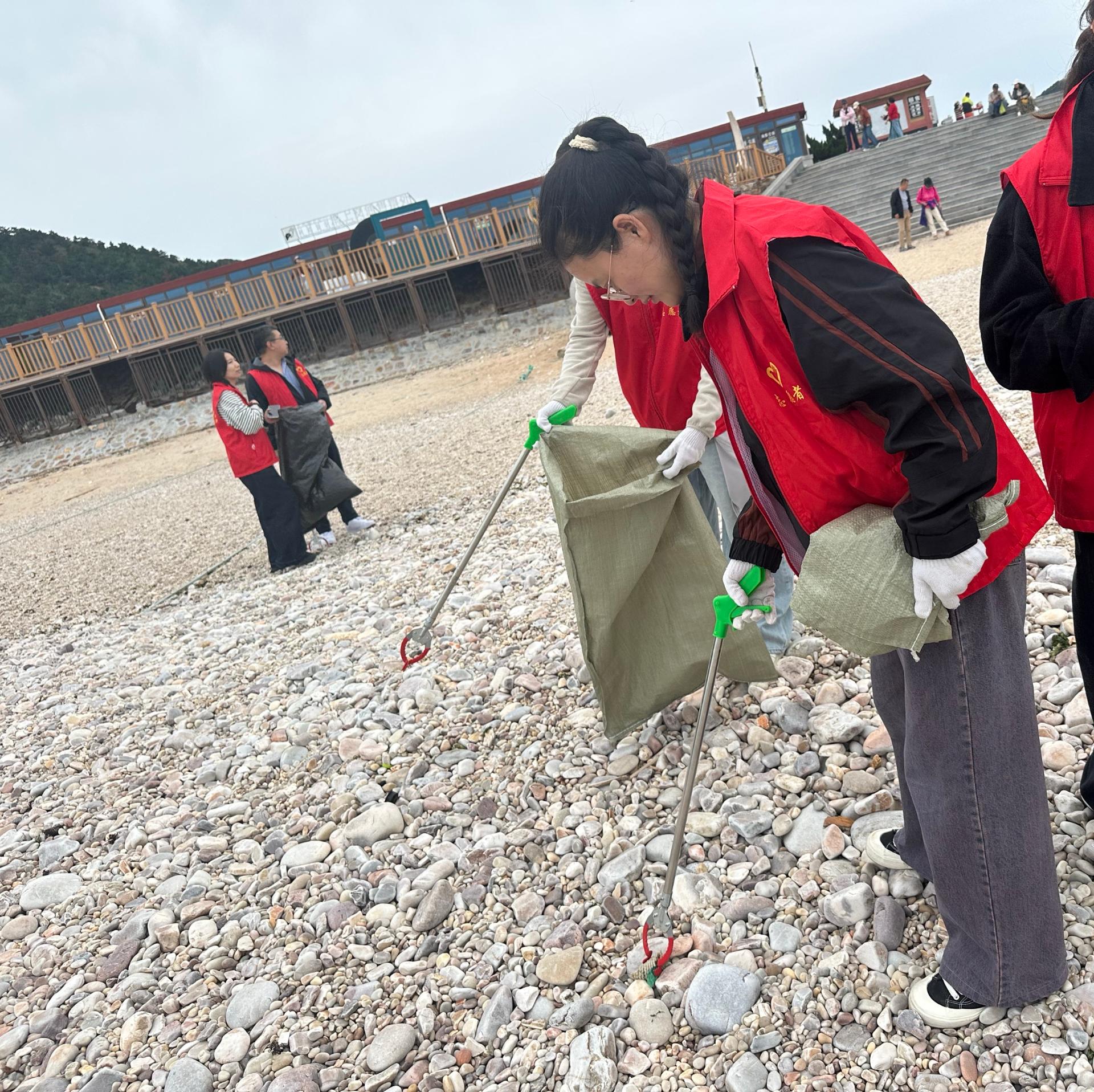 海洋经济促进局志愿服务队组织志愿者,到月牙湾景区岸滩进行环境卫生清理,开展净滩活动,清理岸滩垃圾,践行零碳先锋,助力5A景区创建。