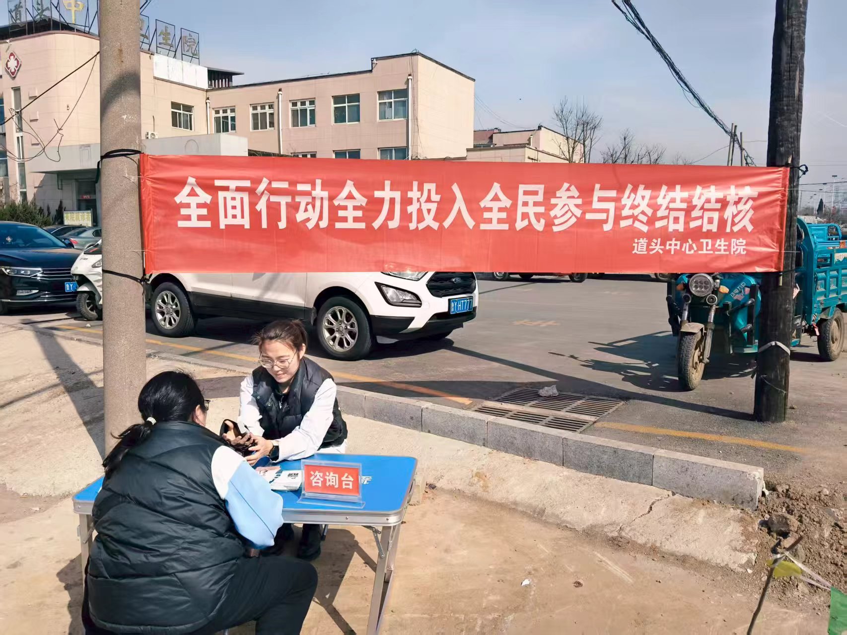 3月18日7:30-12:00道头中心卫生院开展全面行动全力投入全民参与终结结核活动,活动现场发放宣传手册。