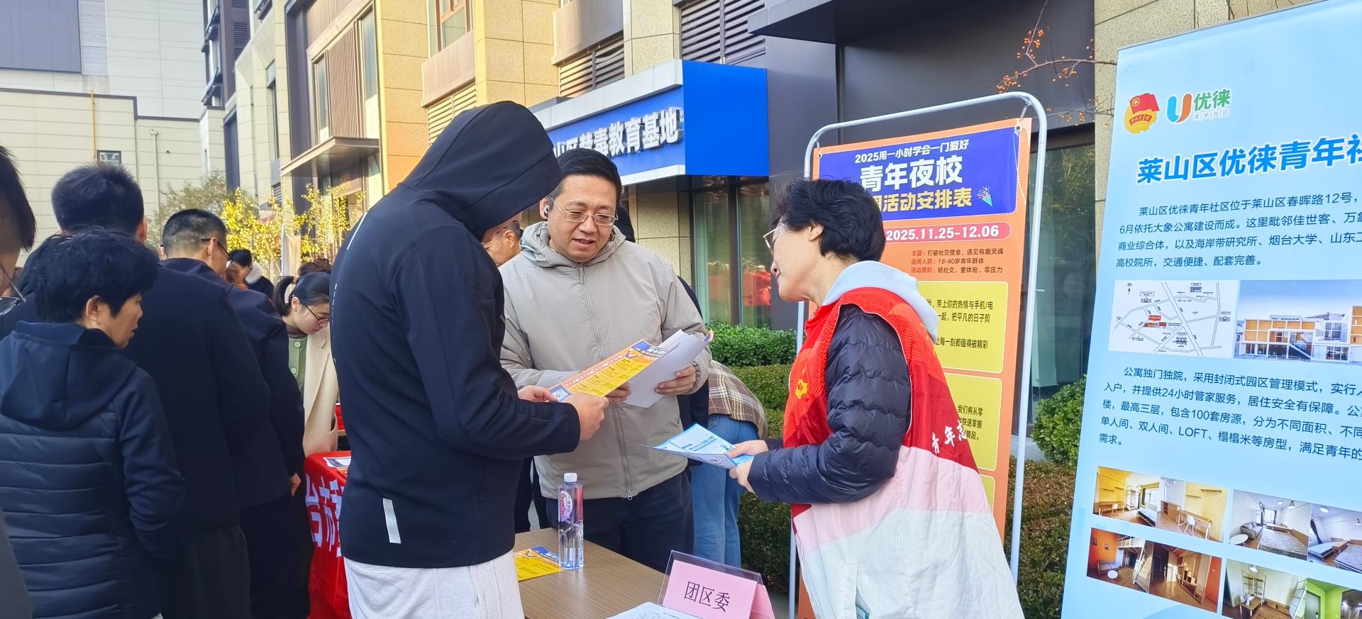 莱山团区委开展“双报到”社区政策宣传志愿服务活动,为社区居民宣传青年夜校、优徕社区,人才引进等相关政策。