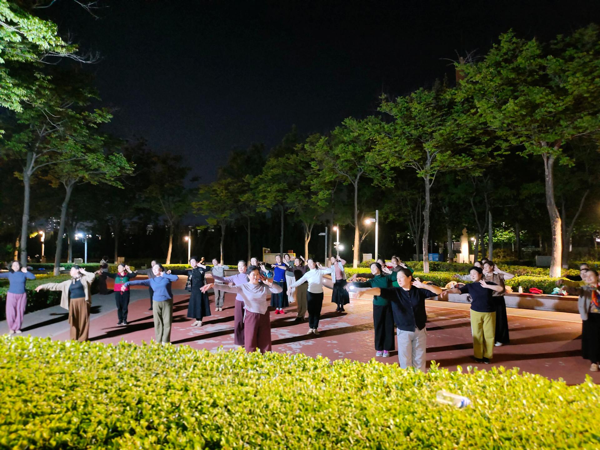 龙口市雪莲花志愿服务队在黄县林苑组织义务教授广场舞,提升全民健身活动服务水平,积极引导群众科学健身,快乐健身。