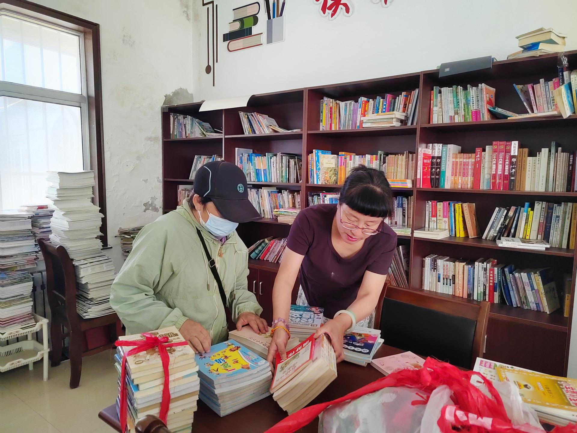 龙口市爱心志愿者协会党支部组织志愿者,在雷锋驿站爱心书屋,对社会各界爱心人士捐来的闲置书籍,进行分类和整理。