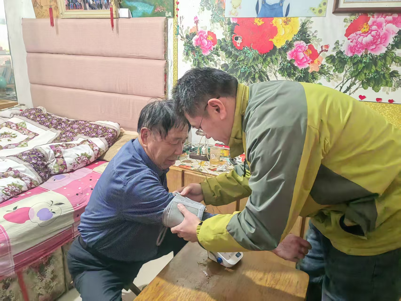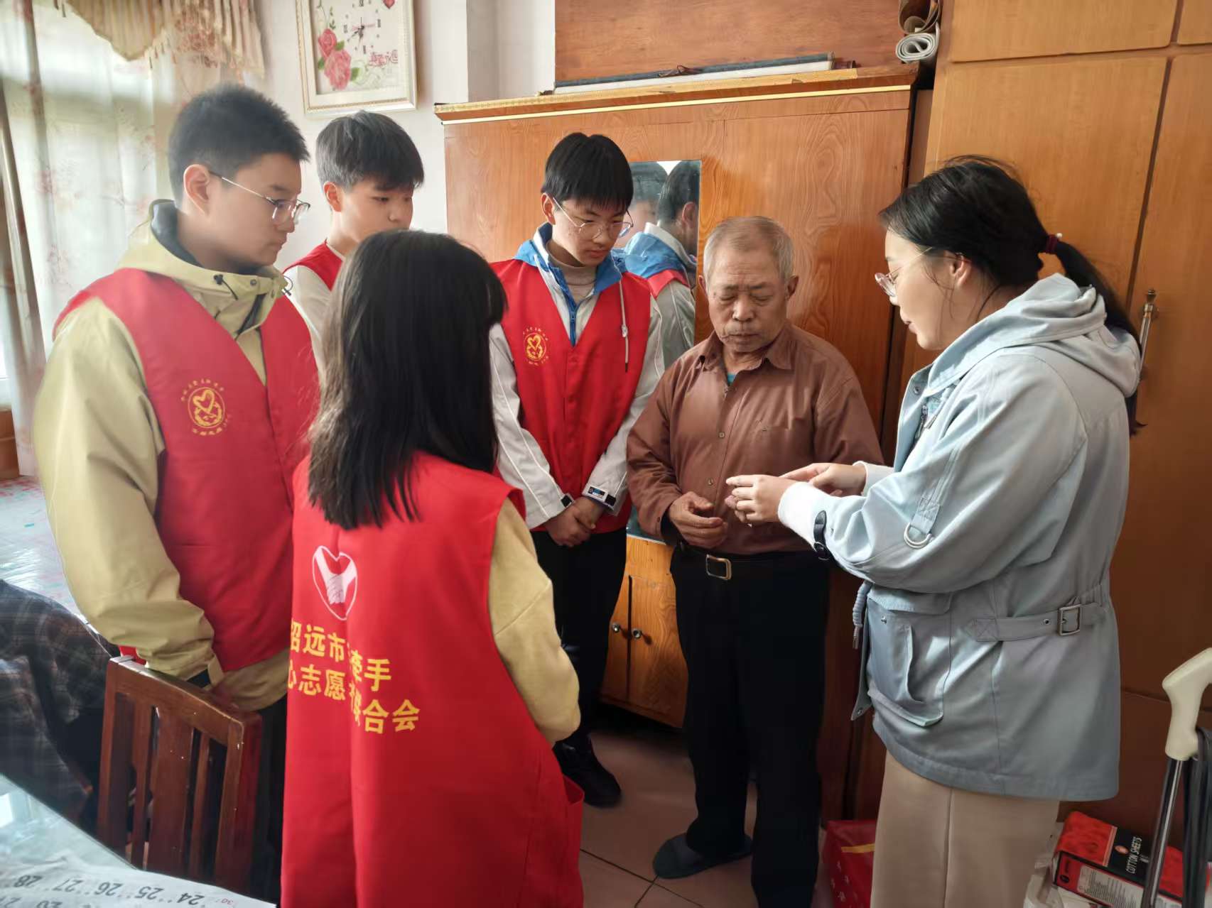 晨光暖夕照招远市手牵手爱心志愿者联合会在行动——— 在市民政局的推动下招远市,一场以“晨光暖夕阳”为主题的公益活动温暖开展。招远市手牵手爱心志愿者联合会与温泉街道金泉河居委会携手,为老人送去救命及生活手环,县人民医院医生志愿者则为老人提供血压测量服务,共同守护老年人的健康与幸福。