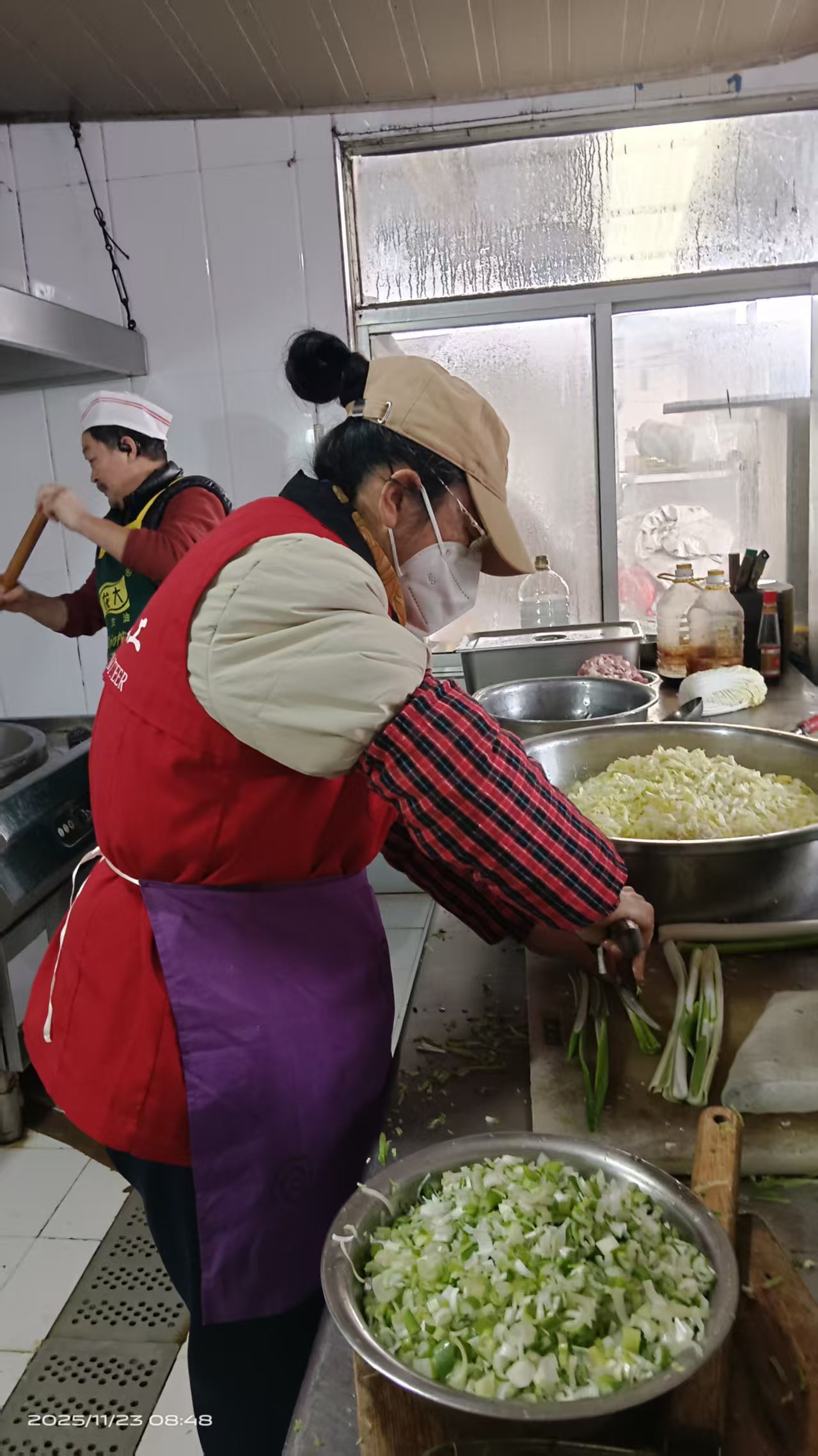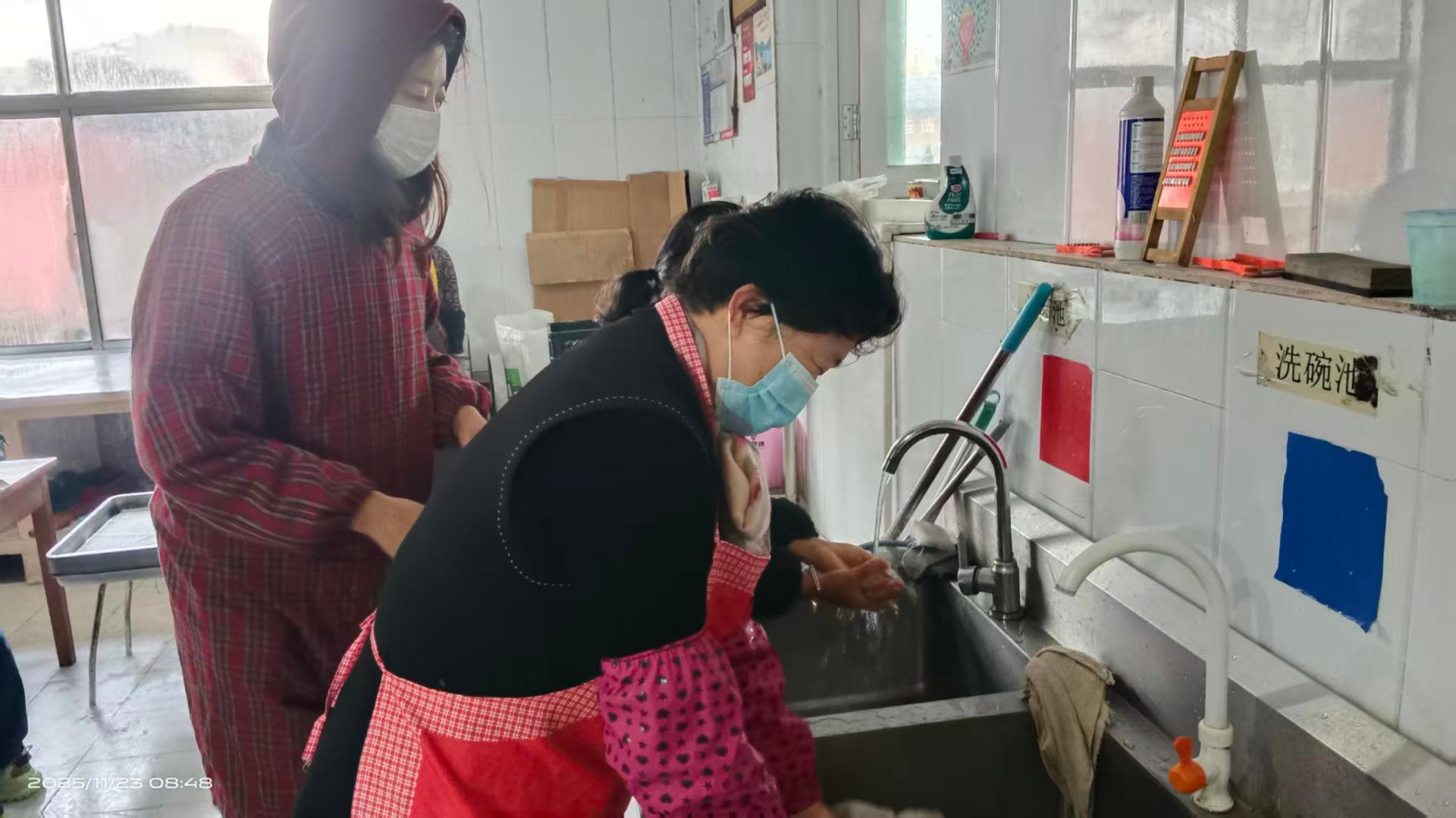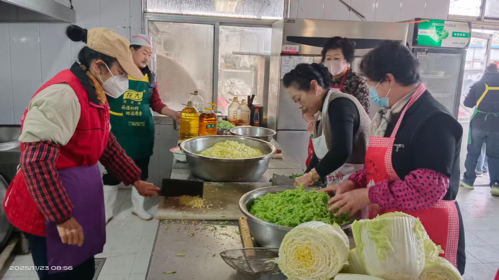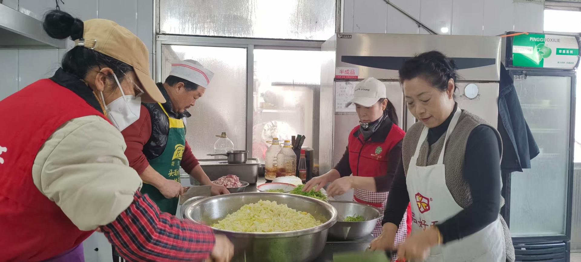 锦城社区春光爱心家园志愿服务队的志愿者们到老涞福老人公寓开展志愿服务活动,到厨房帮厨,陪伴老年人等。