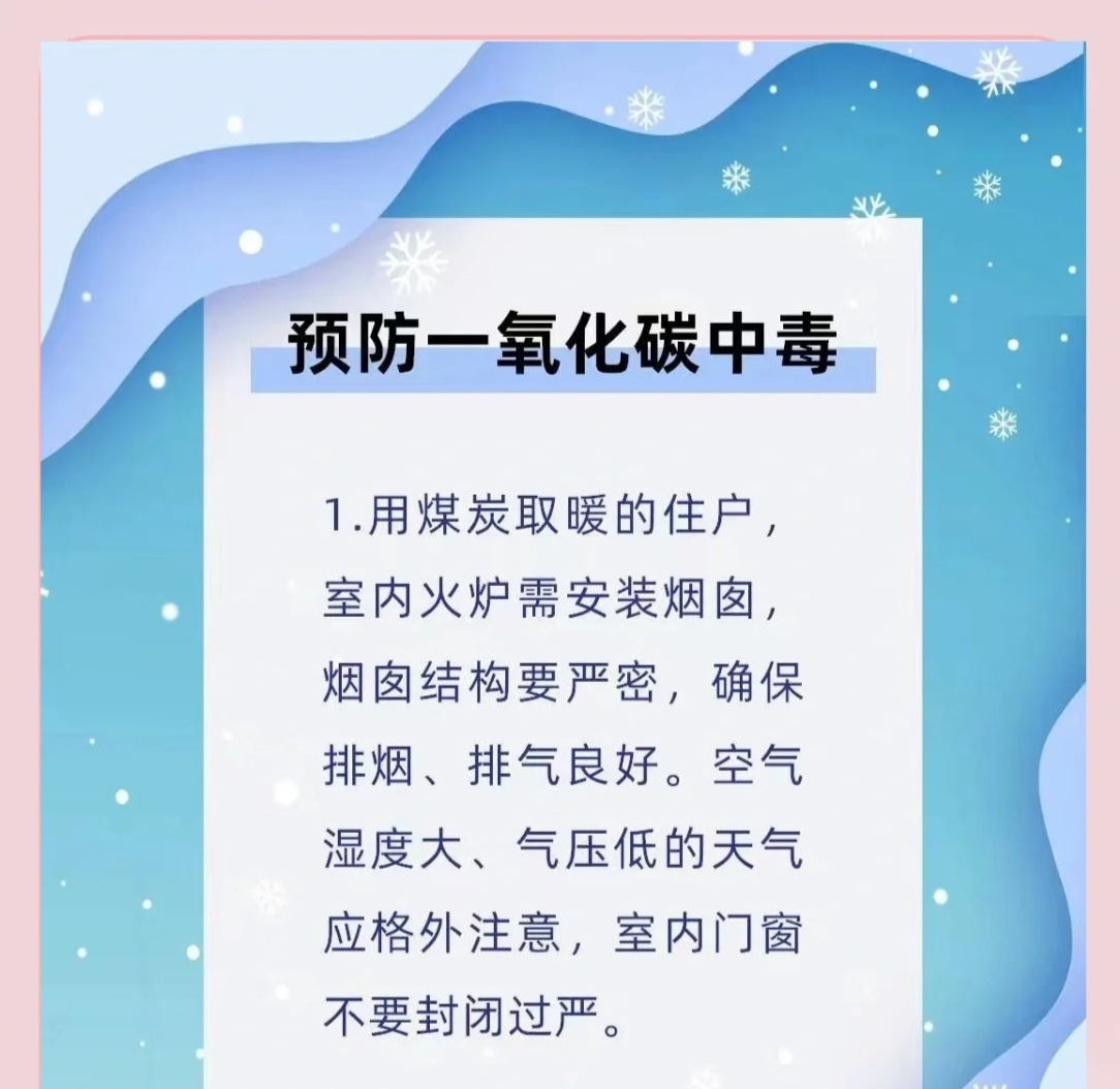 冬季预防一氧化碳中毒
