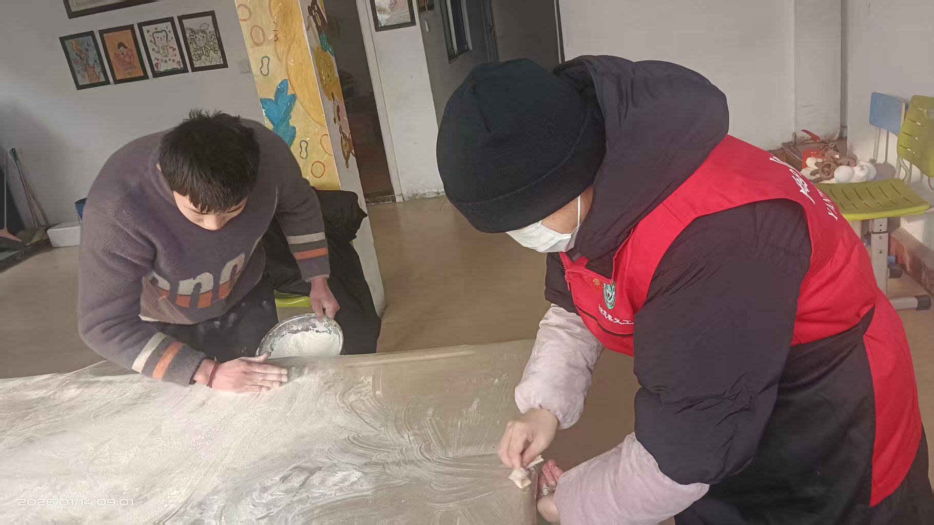 锦城社区春光爱心家园志愿服务队的志愿者们到扬帆助学基地开展志愿服务活动,陪伴特殊儿童制作手工,到厨房帮厨等。