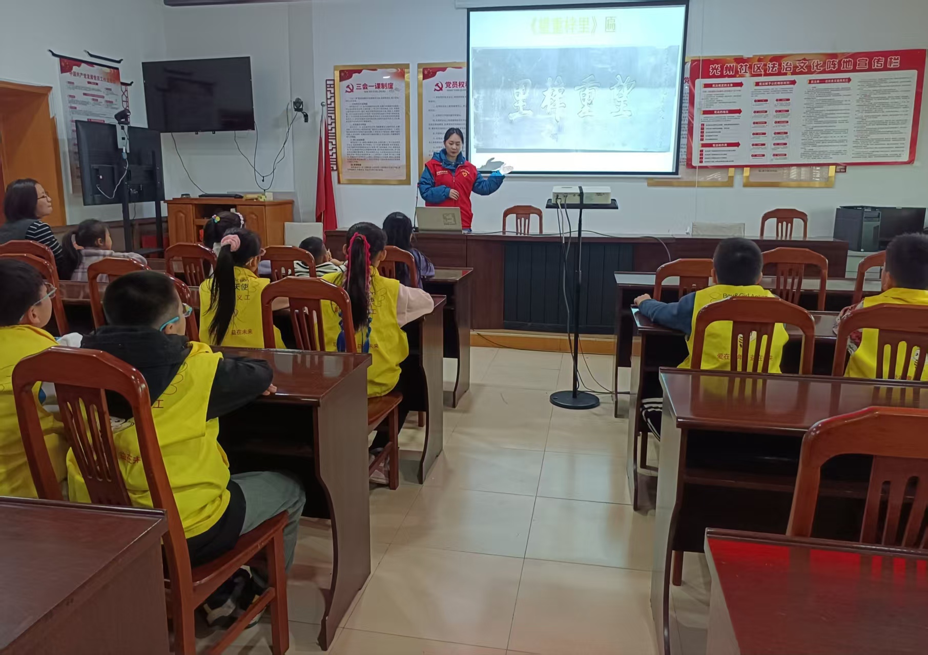 组织志愿者进社区开展志愿服务活动,根据分工做好相应的服务社区居民工作,为社区居民做革命文物故事宣讲,讲述文物背后的故事。