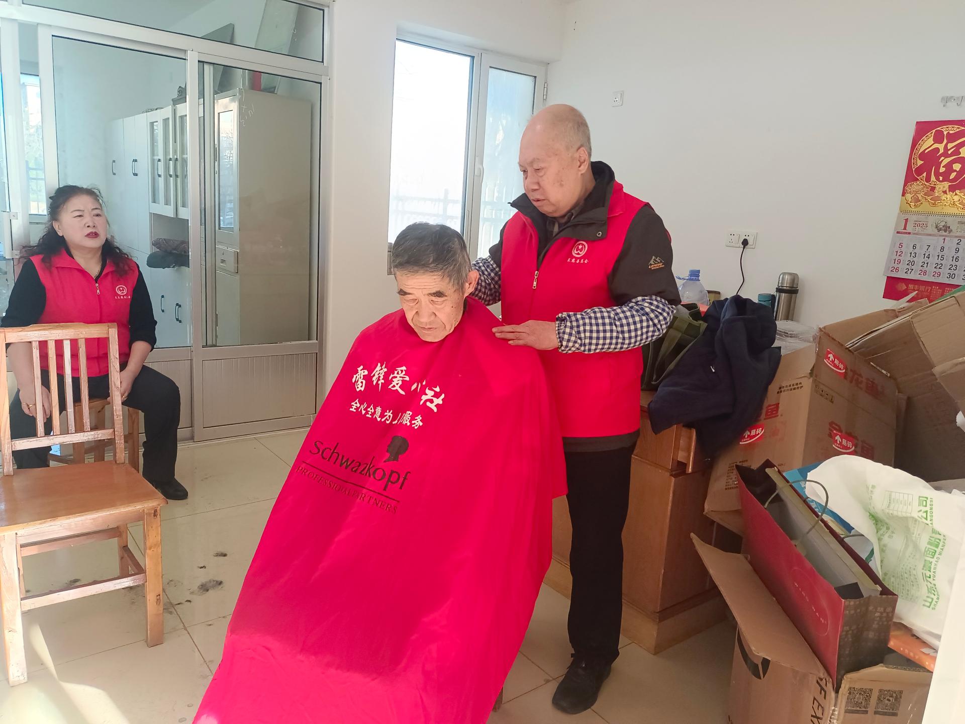 蓬莱区慈善总会雷锋社义工队的家人们为拦驾疃社区老人义剪活动