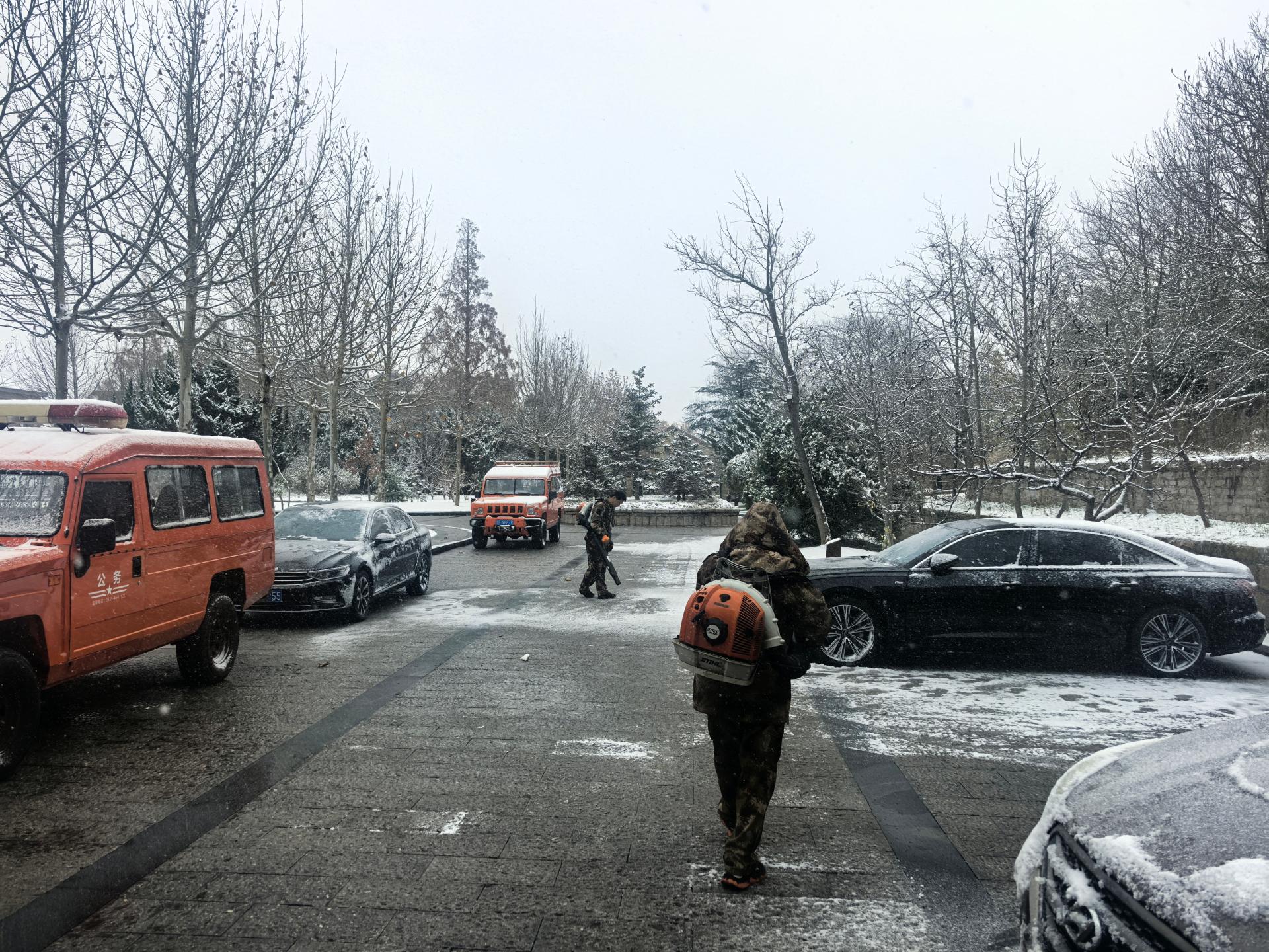 12月3日昆嵛山林场应急管理科进行积雪清扫志愿活动