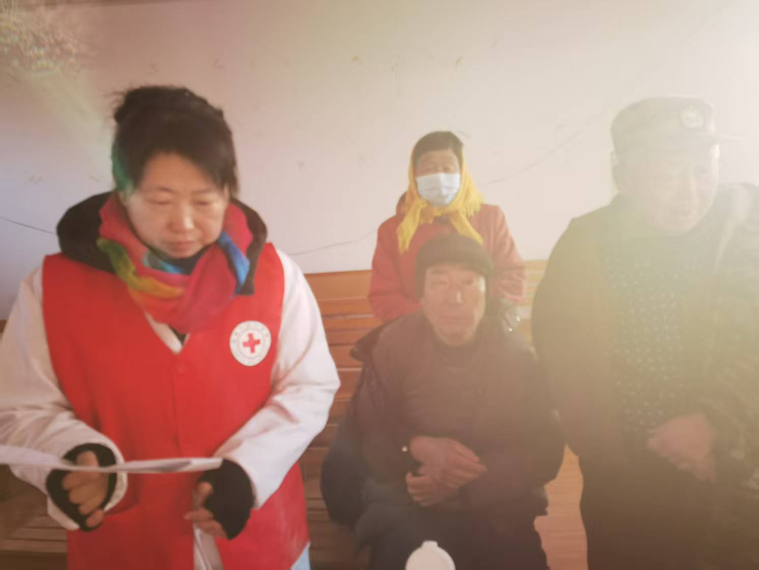 莱阳市沐浴店中心卫生院志愿者服务团队的志愿者们,到辖区村庄,为慢病群众进行慢病随访,讲解相关注意事项。
