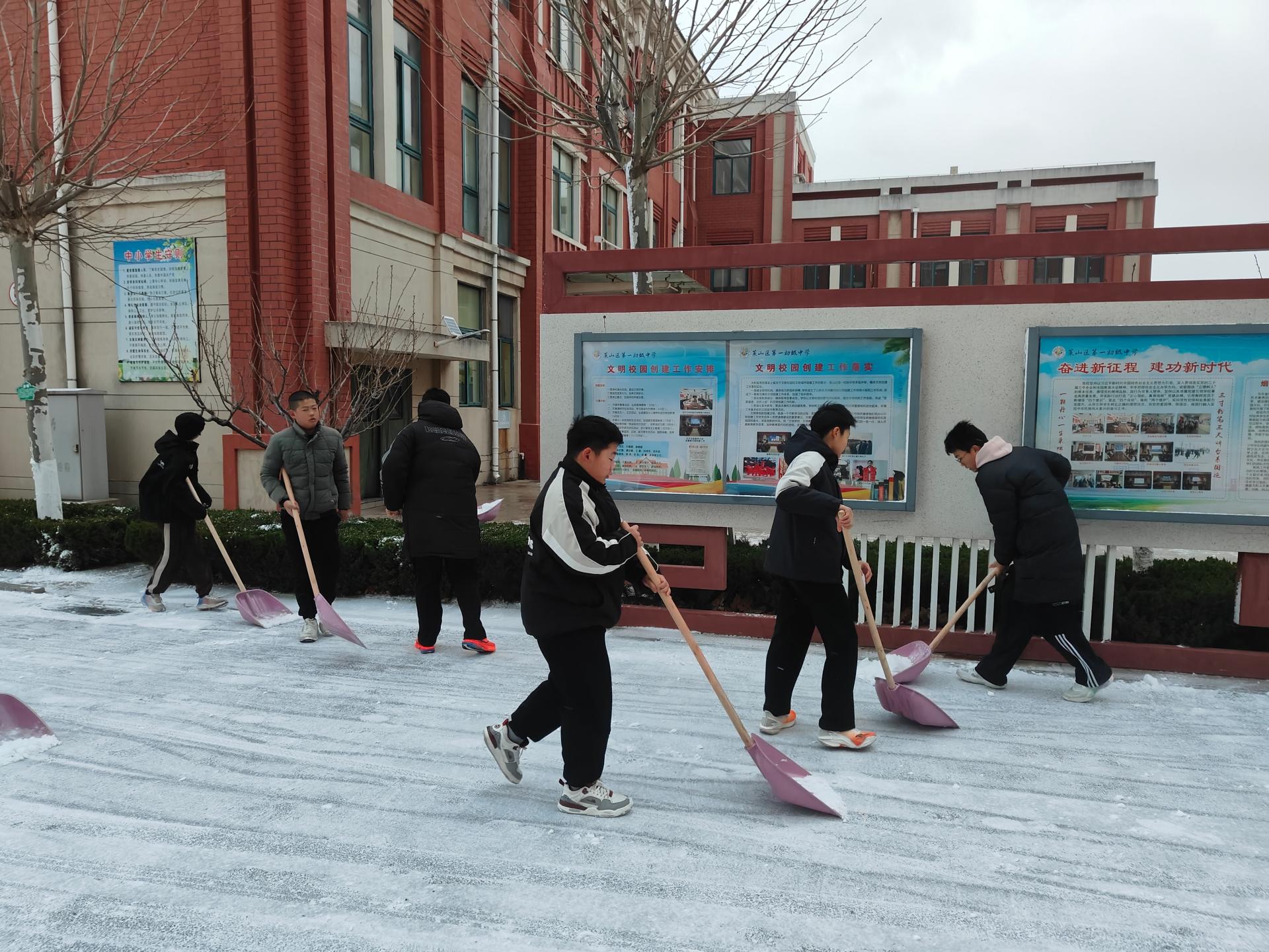 寒冬不寒,志愿有暖,莱山初中公益行动火热开启。同学们积极投身校园,有的认真清扫教室角落灰尘,有的齐心协力铲除道路积雪。大家不惧寒冷,干劲十足,用劳动让校园整洁有序,以志愿行动为冬日校园增添融融暖意。