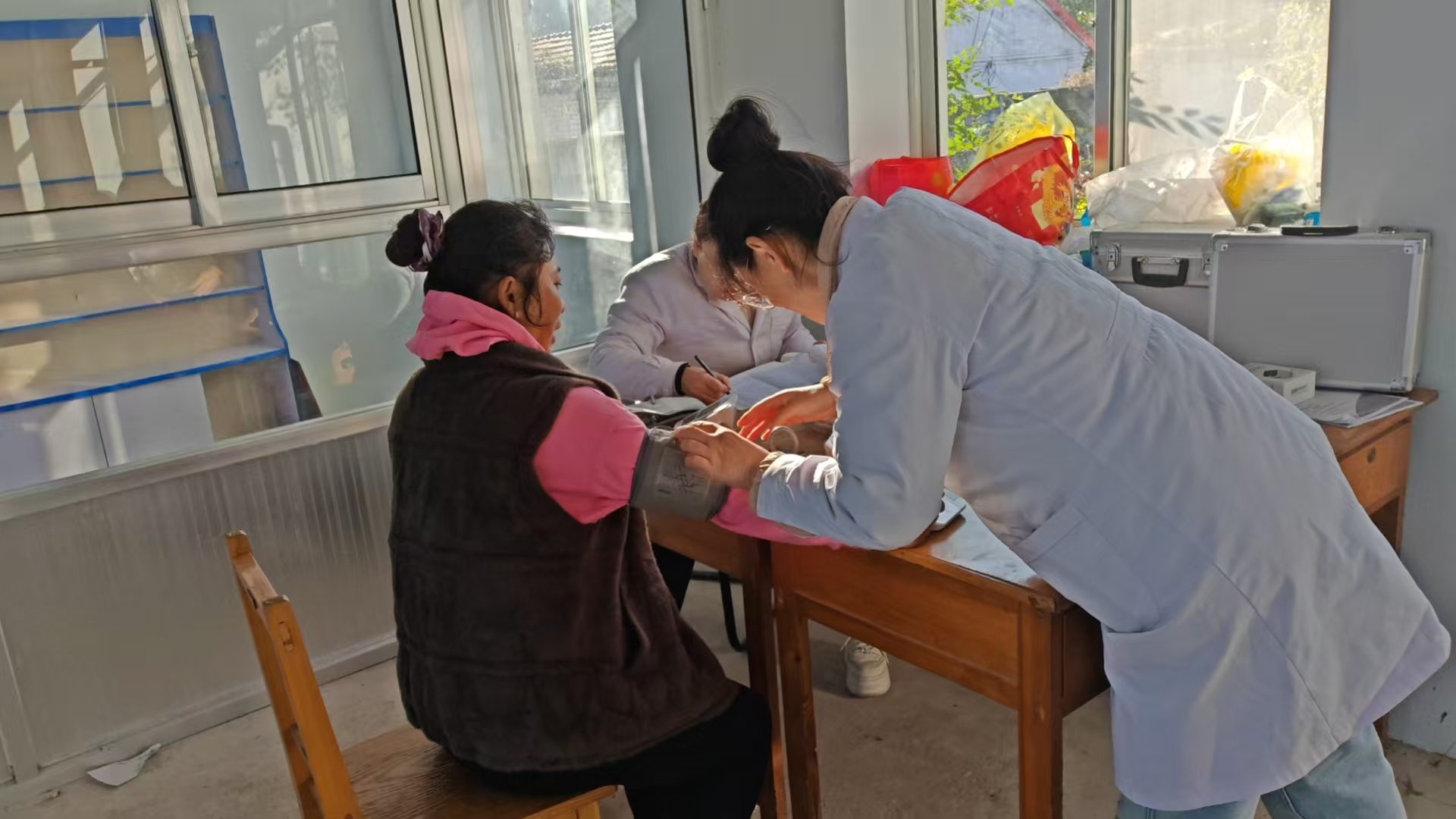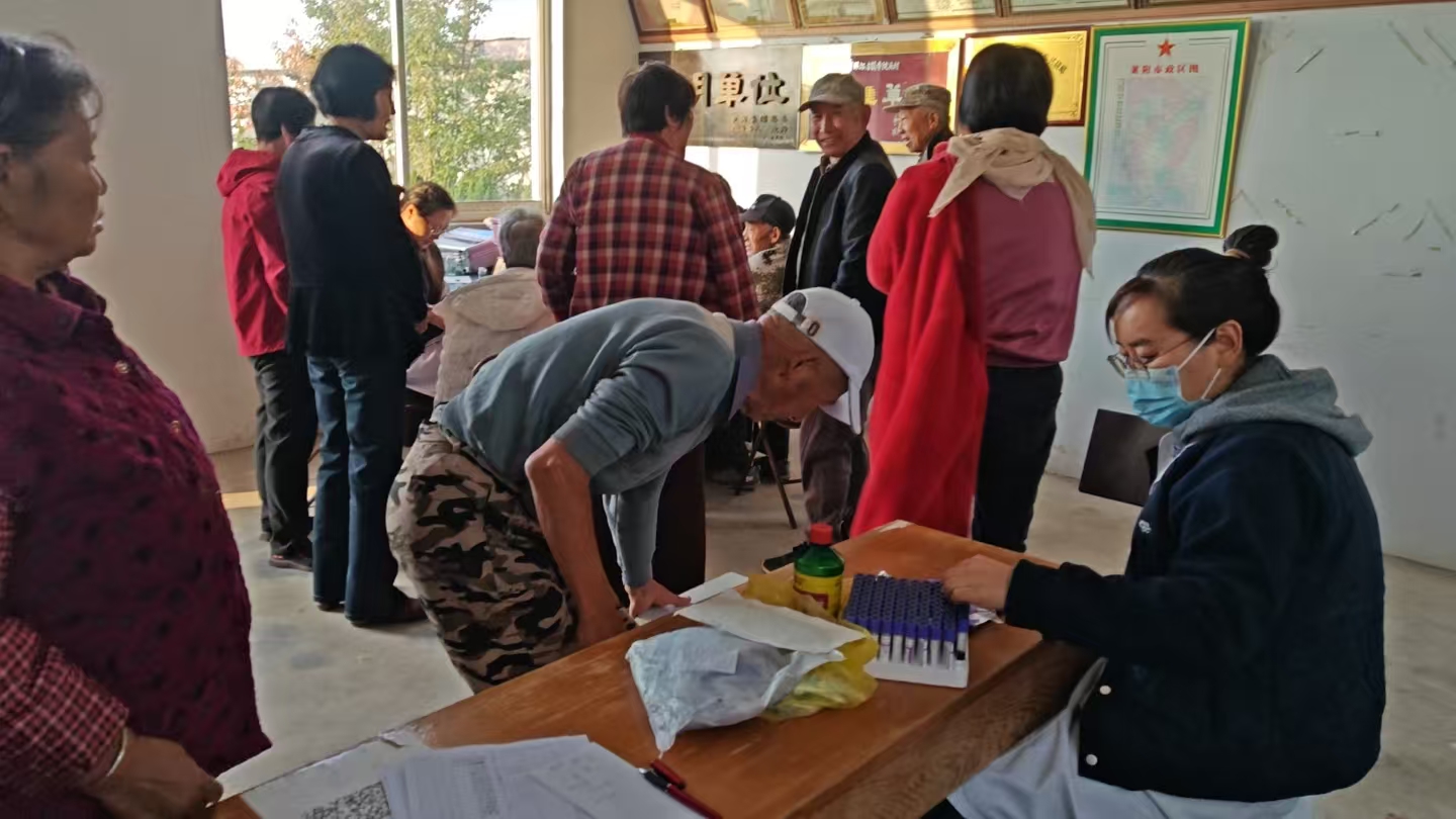 莱阳市沐浴店中心卫生院志愿者服务团队的医务志愿者们,到辖区村庄,为老年人进行健康查体和健康知识宣讲。