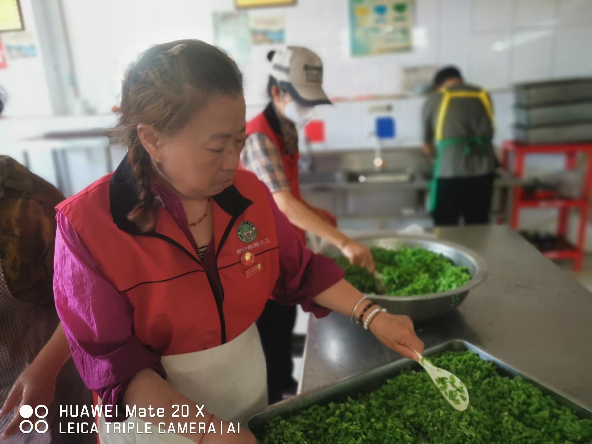 锦城社区春光爱心家园志愿服务队的志愿者们到老涞福老人公寓开展志愿服务活动,陪伴老年人,到厨房帮厨等。