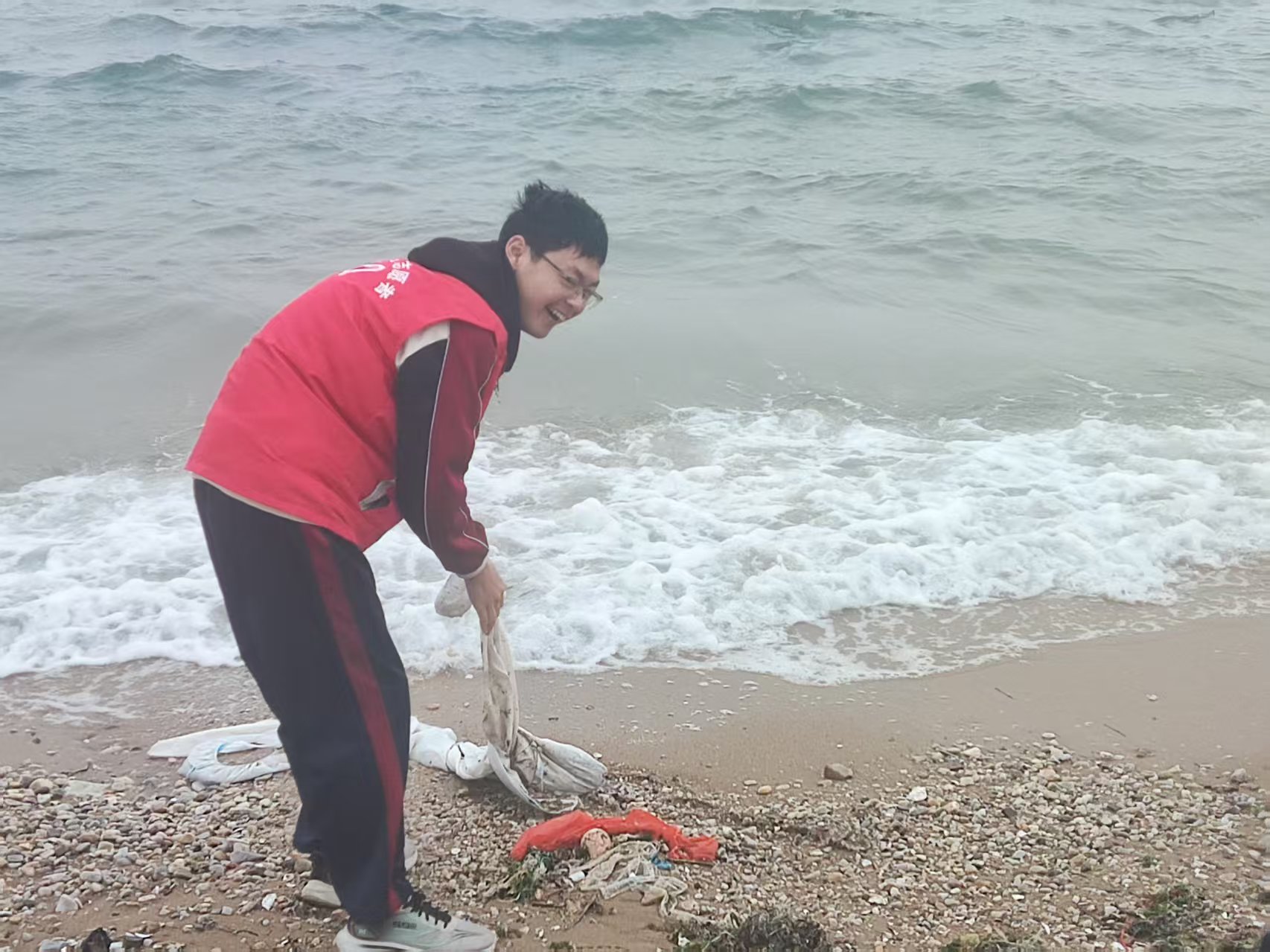 长岛职专学生志愿者利用周末休息时间,到海边开展净滩活动,切实保护生态环境,让青春在环保实践中绽放光芒