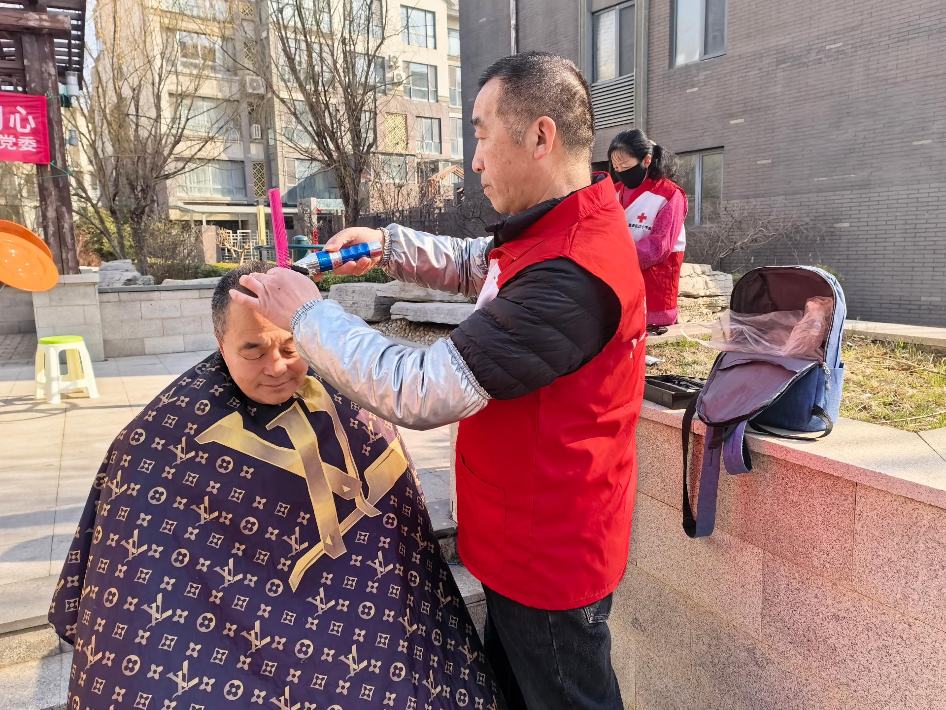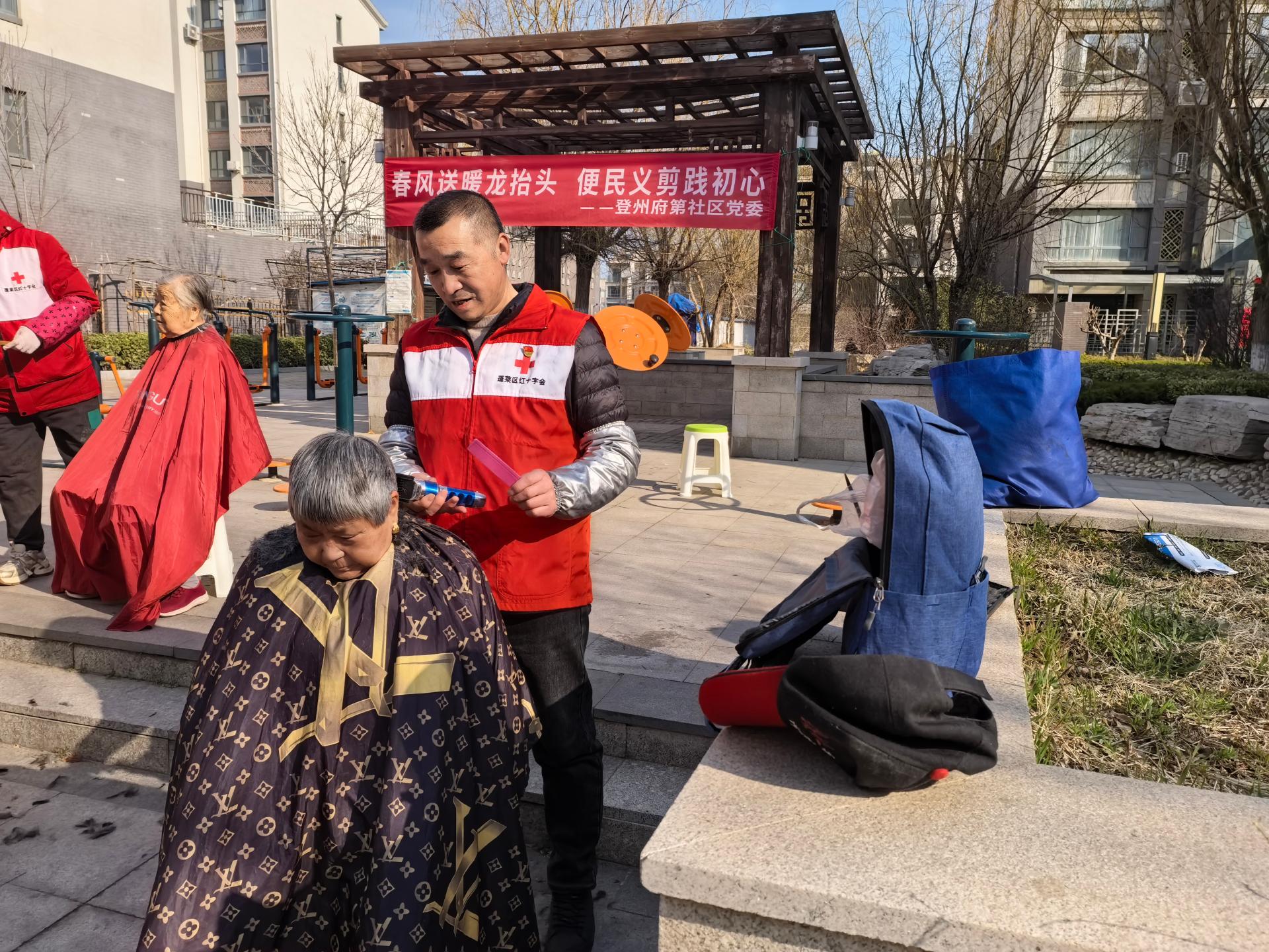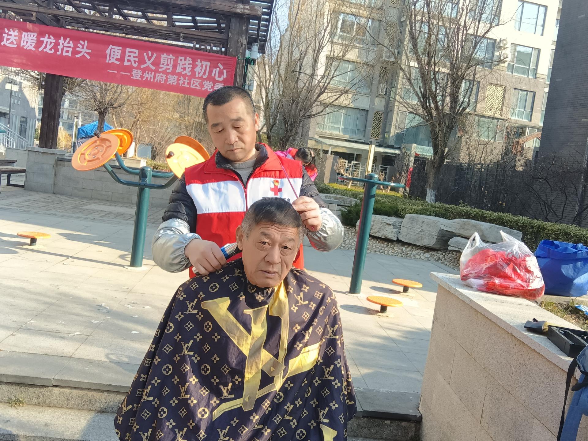 慈善总会九久义工队,应邀走进登洲府邸社区为六十岁以上老人及残疾人士义务理发活动。穿九久义工马甲,路上注意安全。