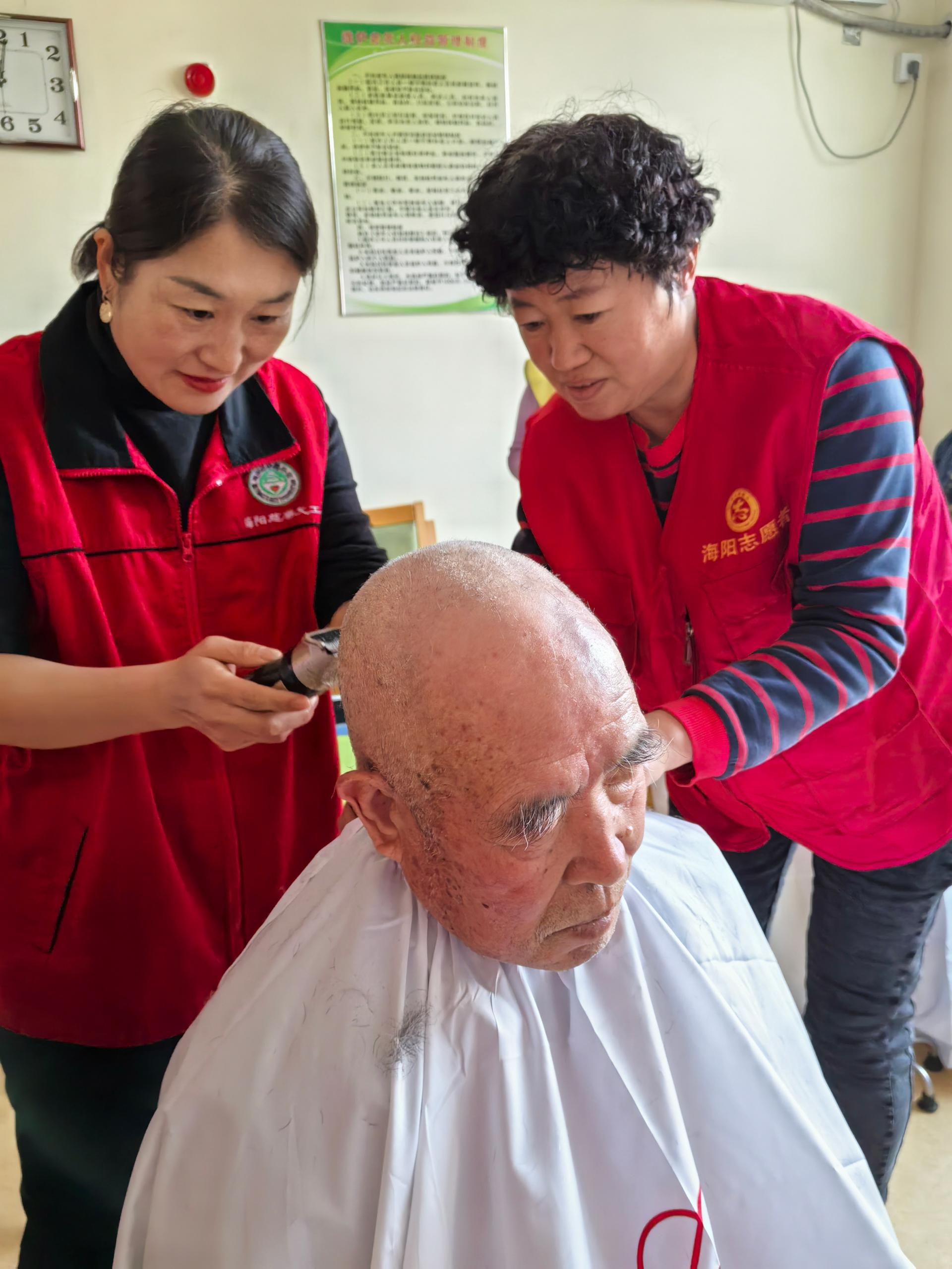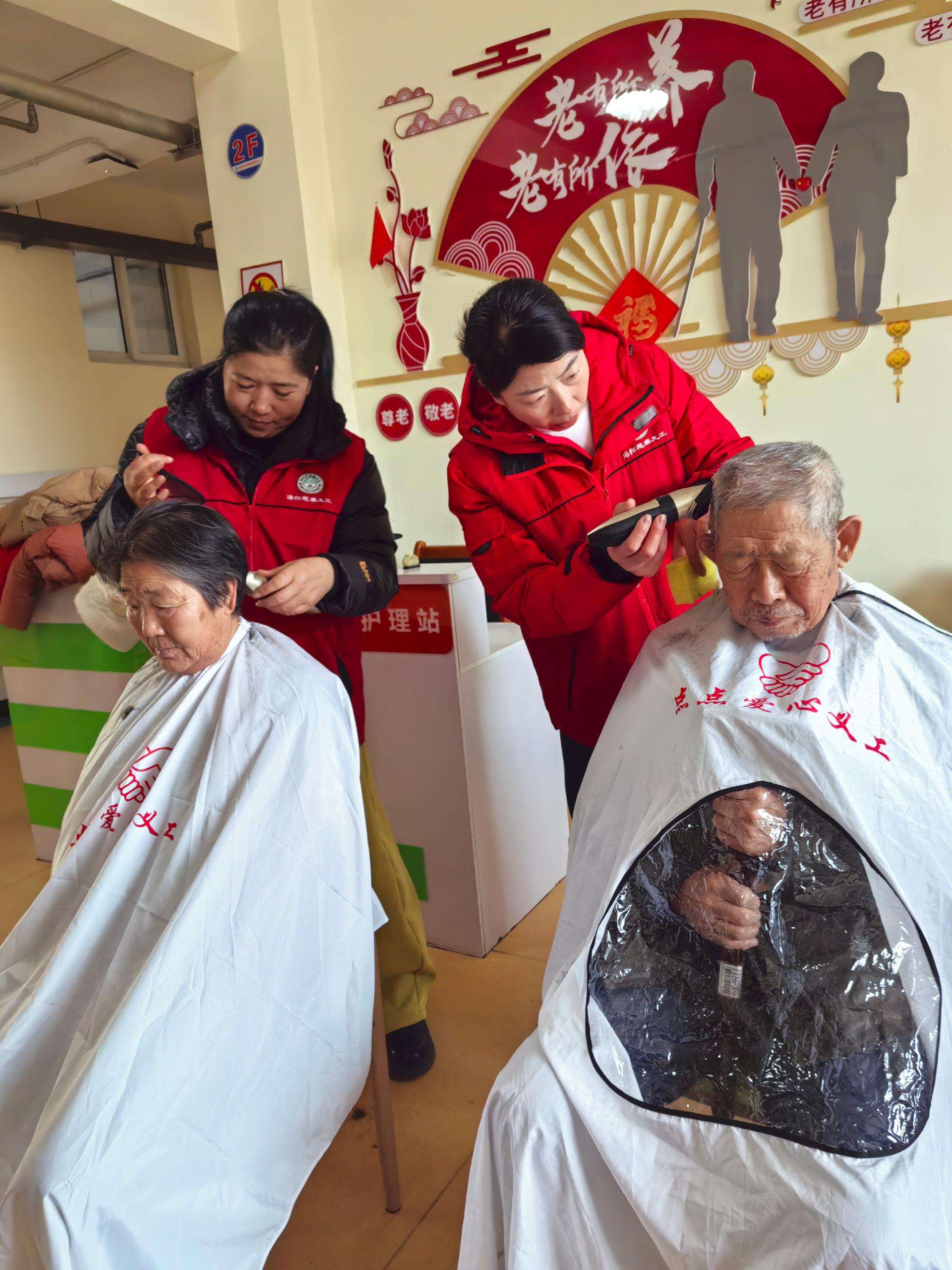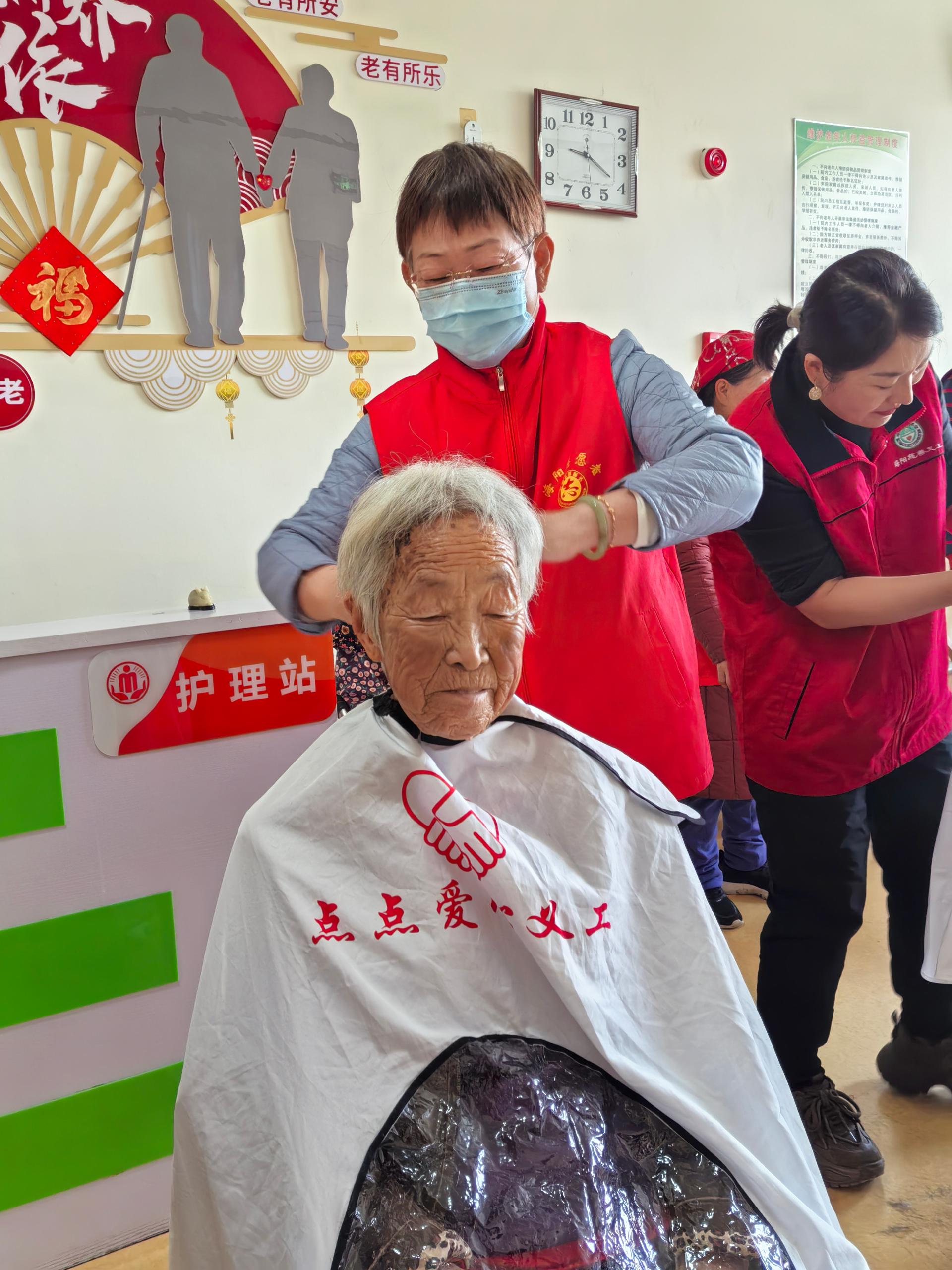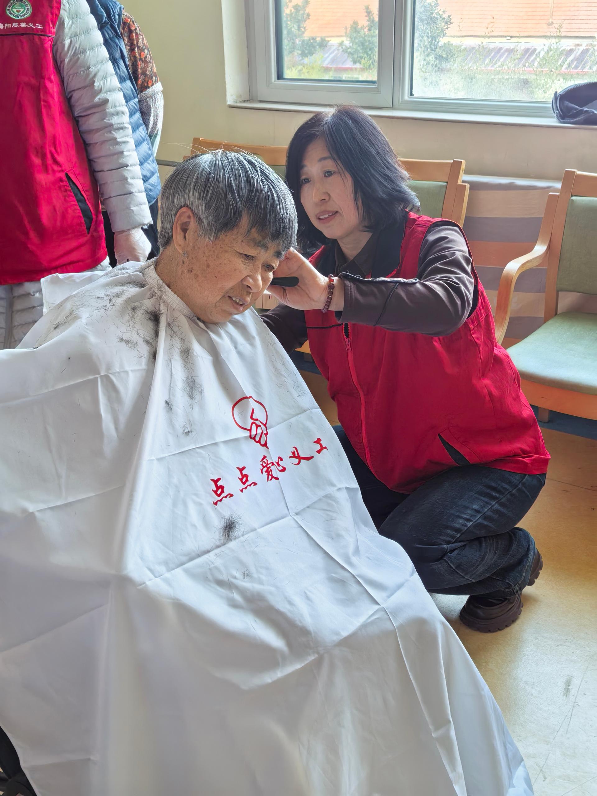 元旦到来之际,组织有理发特长的队友到社会福利中心给老人们义务理发,以良好精神面貌迎接新的一年,同时,送去水果。