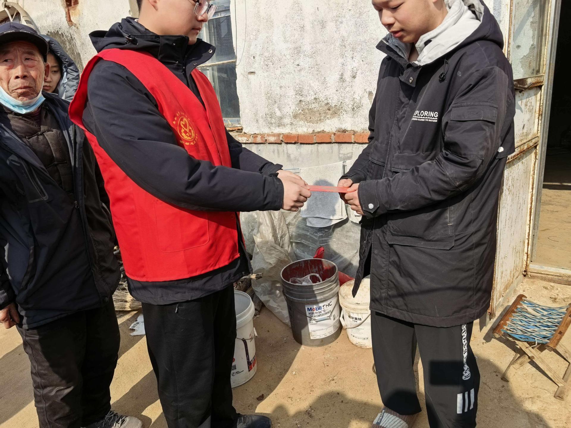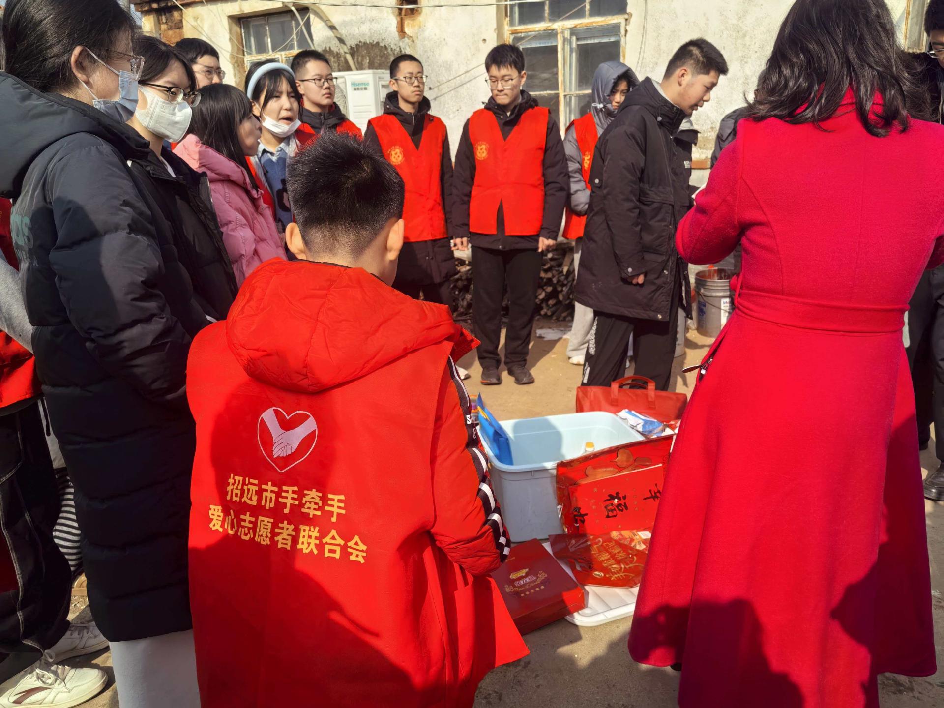 手牵手爱心志愿者联合会,带领团队成员前往毕郭镇某村,看望贫困生郭同学,为郭同学送去生活用品和慰问品。