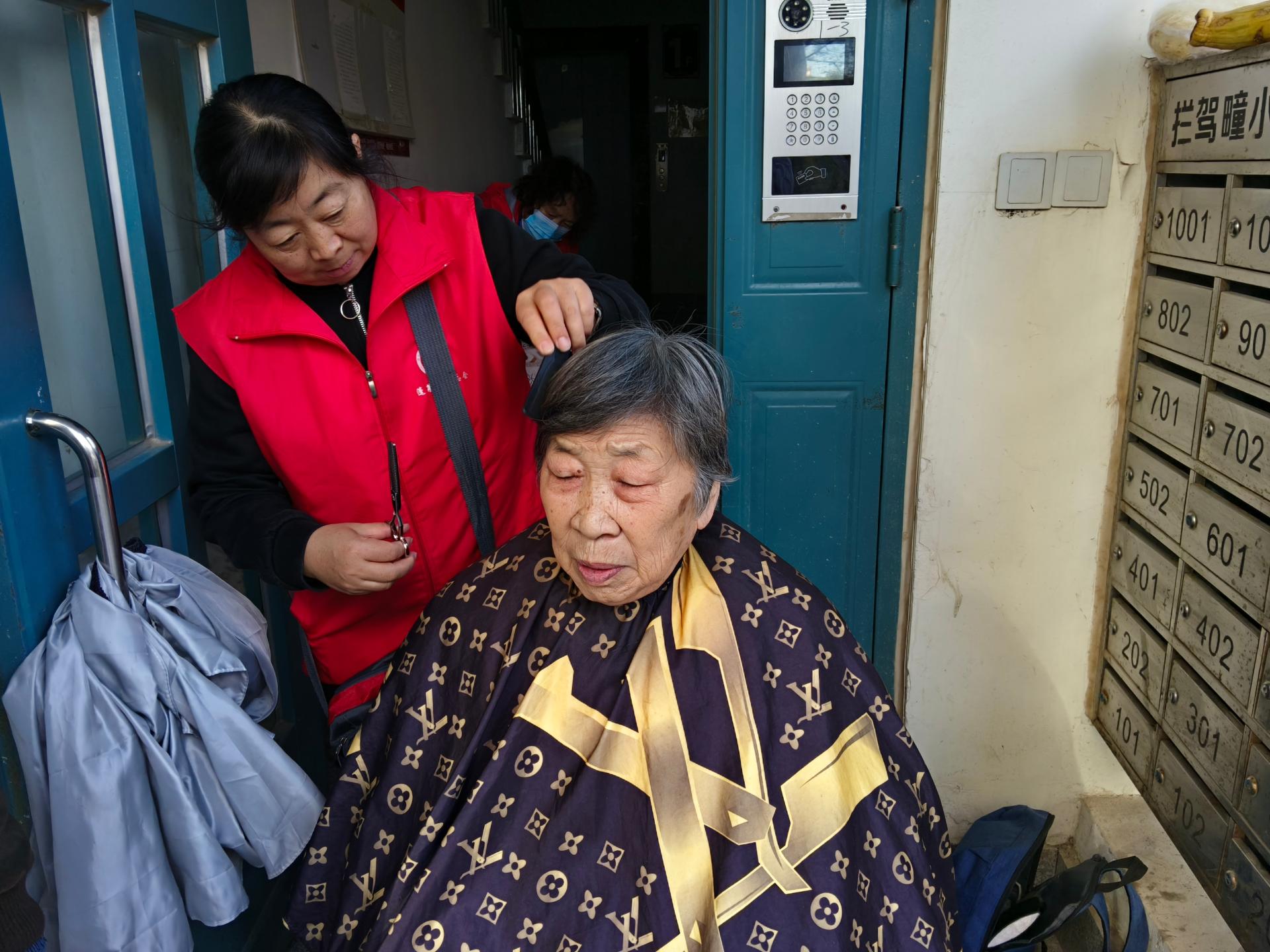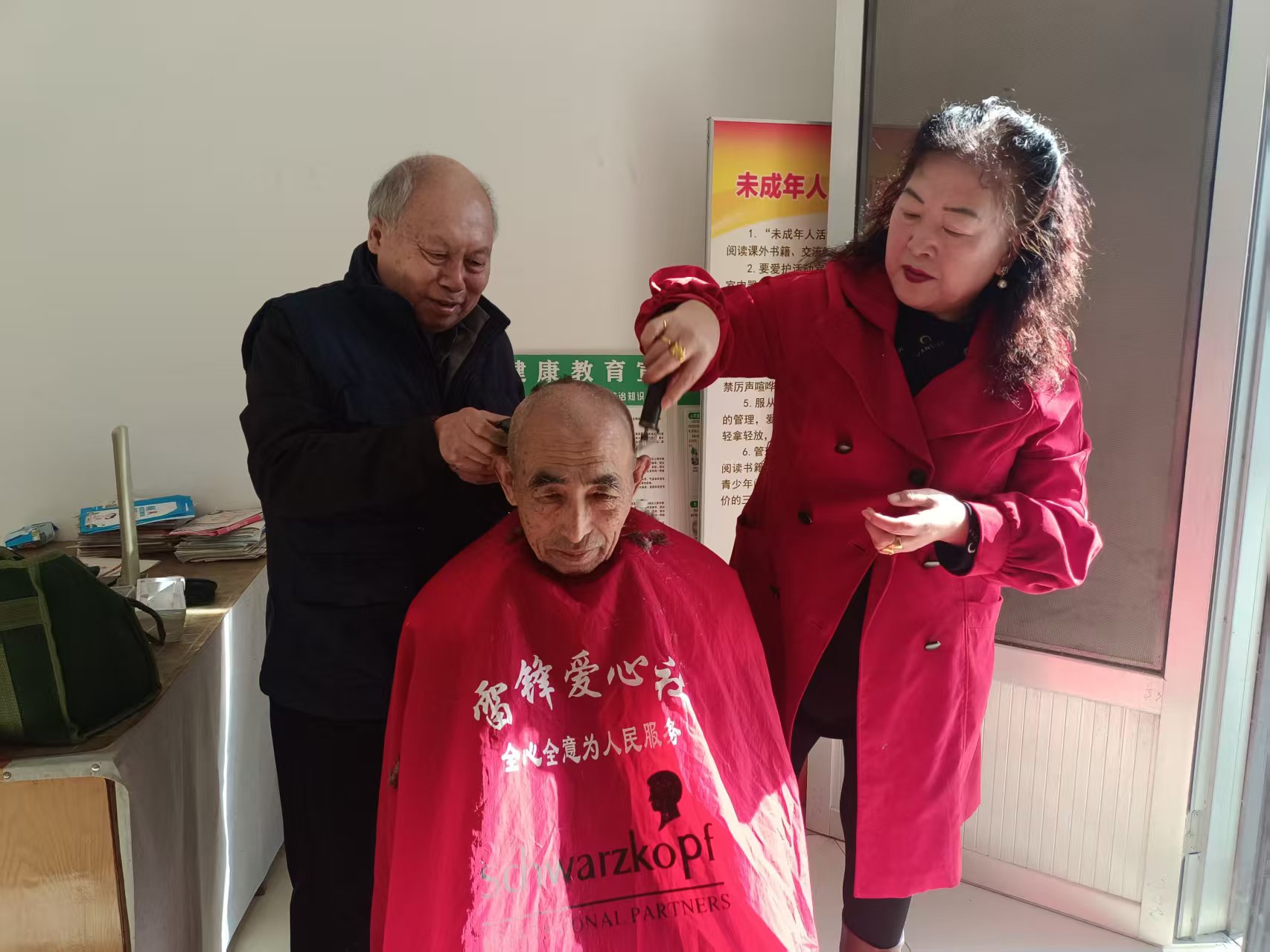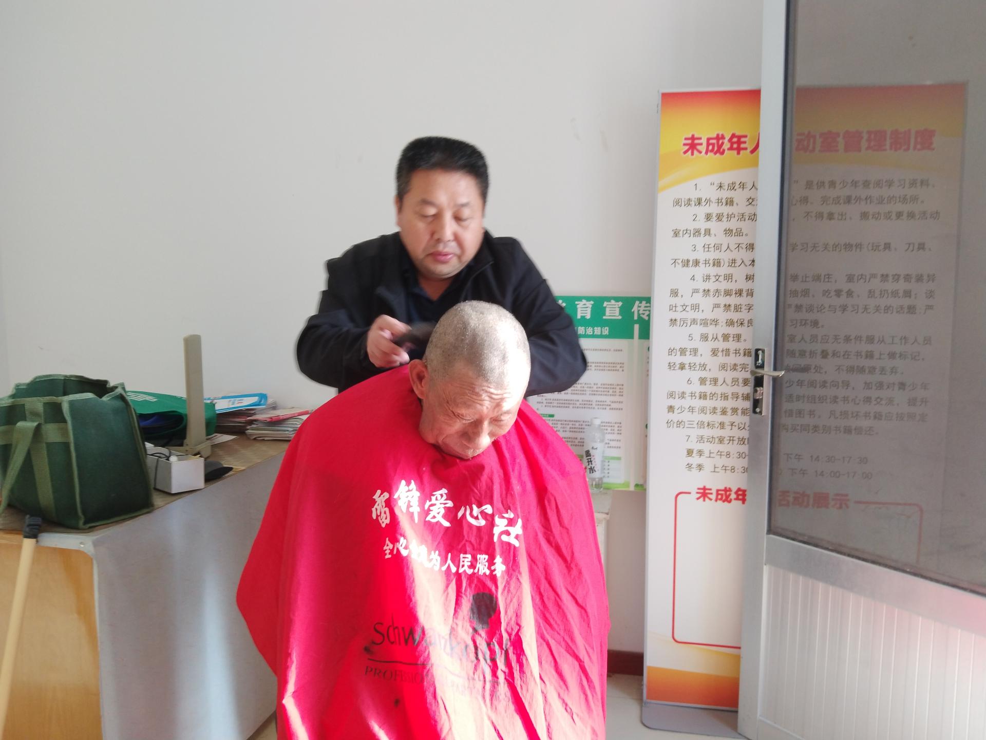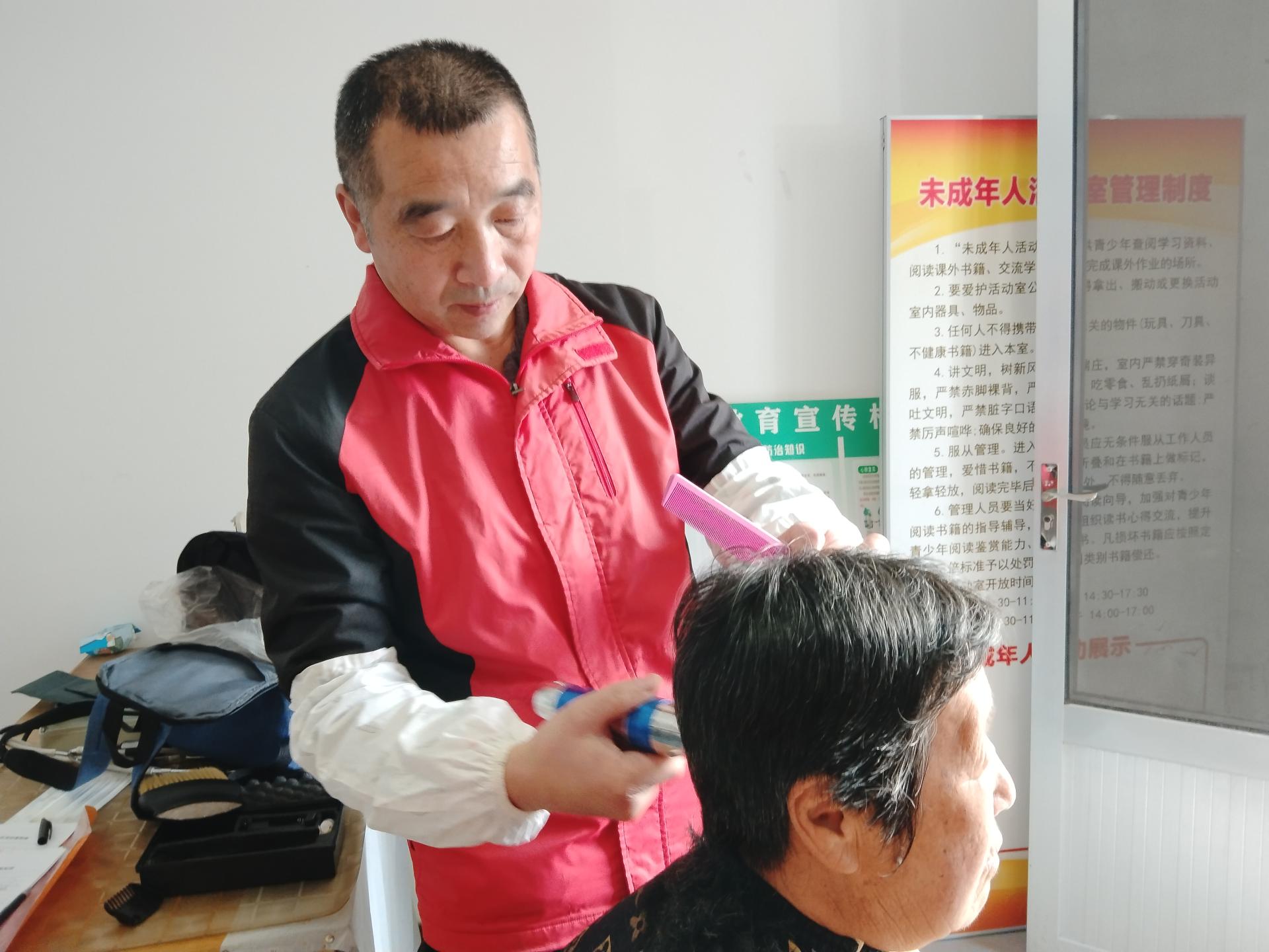 蓬莱区慈善总会雷锋社义工队的家人们到拦驾疃社区,为本社区70岁以上老人免费理发,关心老年人关爱特殊群体!