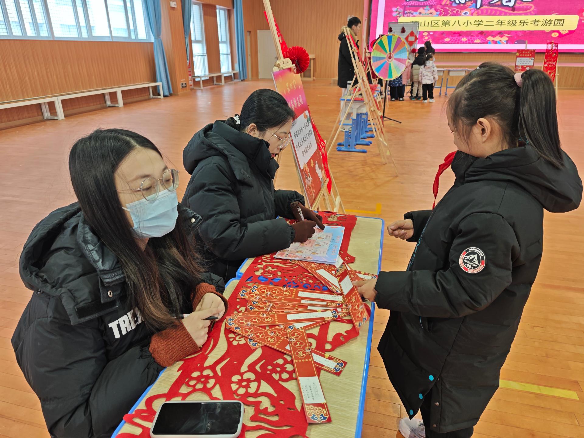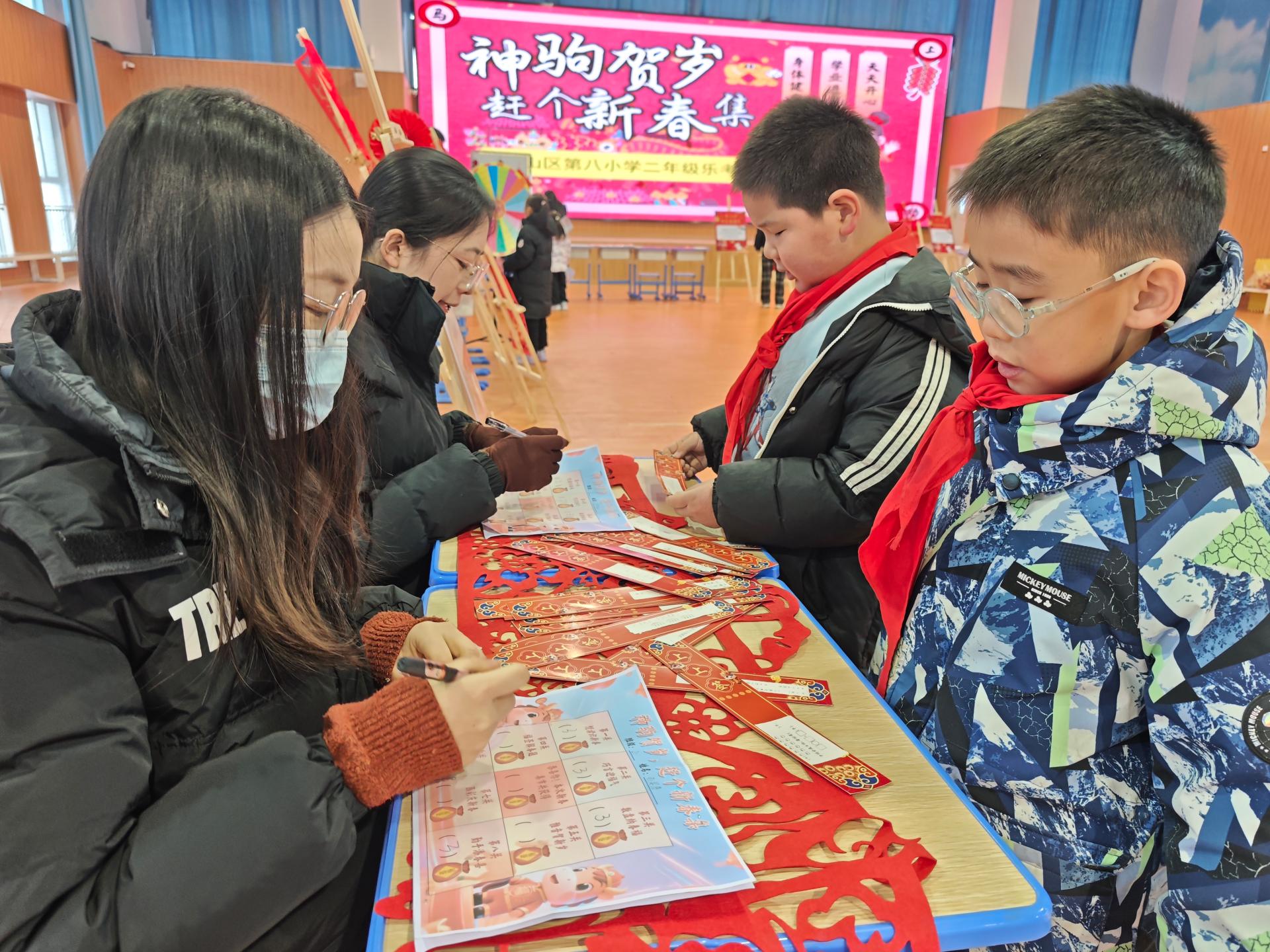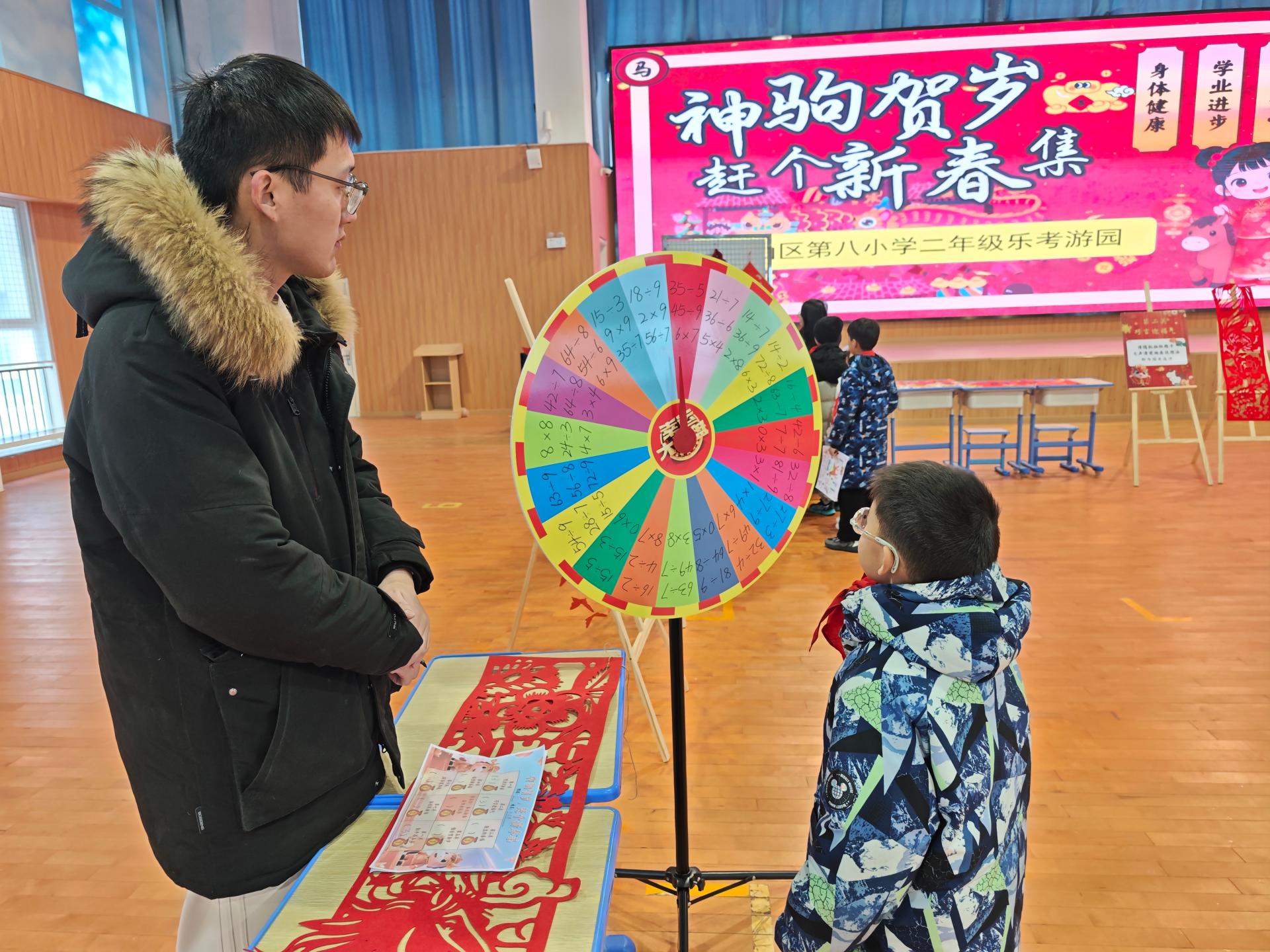 春临校园添喜气,乐考闯关启新篇。为让一二年级学子趣验成长、喜迎新春,莱山区第八小学举办“神驹贺岁·赶个新春集”乐考活动。本次乐考紧扣五育并举核心,匠心设计八大关卡,融知识、趣味、实践于一体,将学科知识与新春民俗深度融合;德育润心显素养,智育闯关趣无限,体育闯关活力满,美育创想绽芳华,劳动教育促成长,让萌娃们在沉浸式闯关里玩中学、乐中长,实现德智体美劳全面发展。