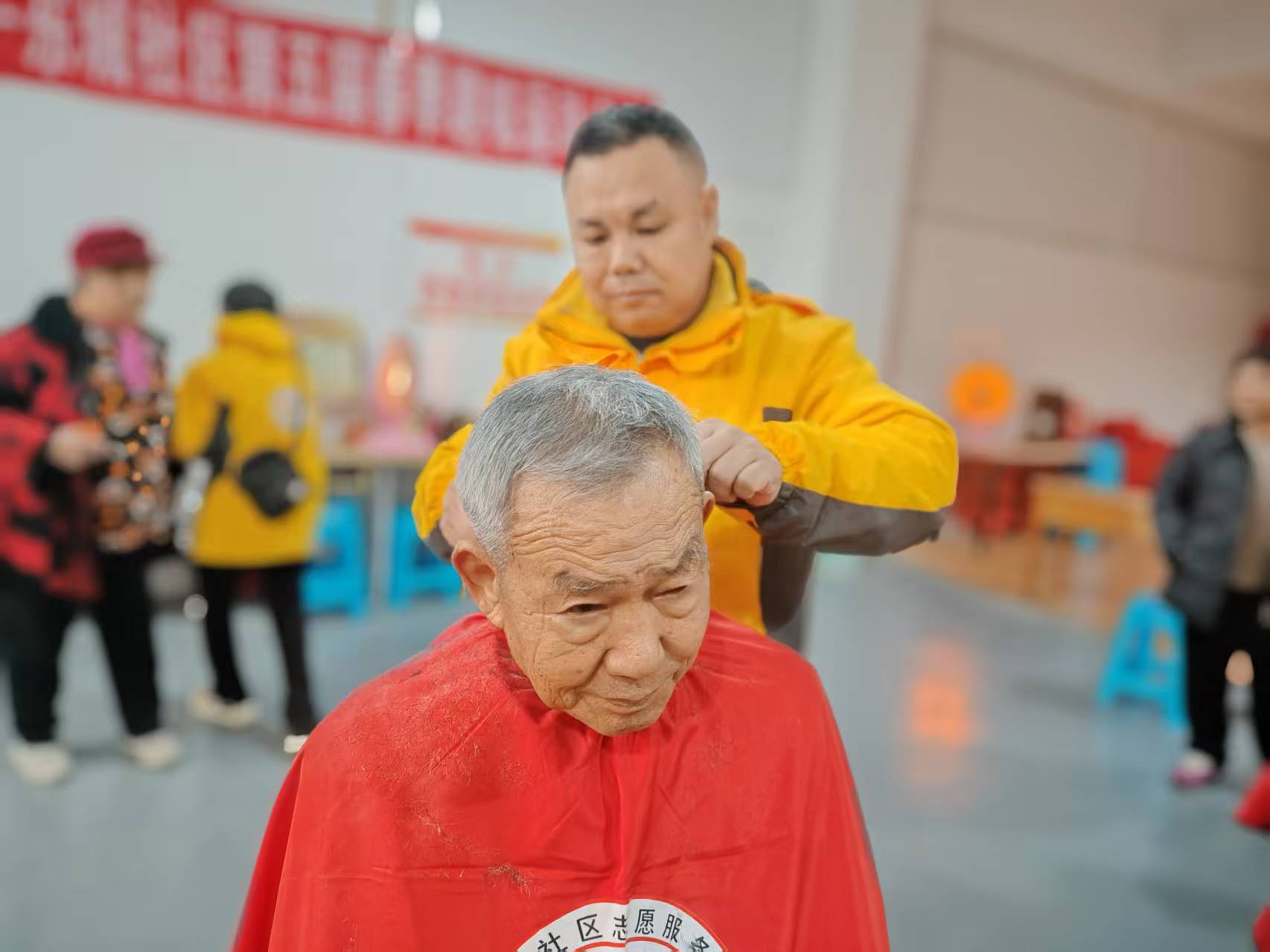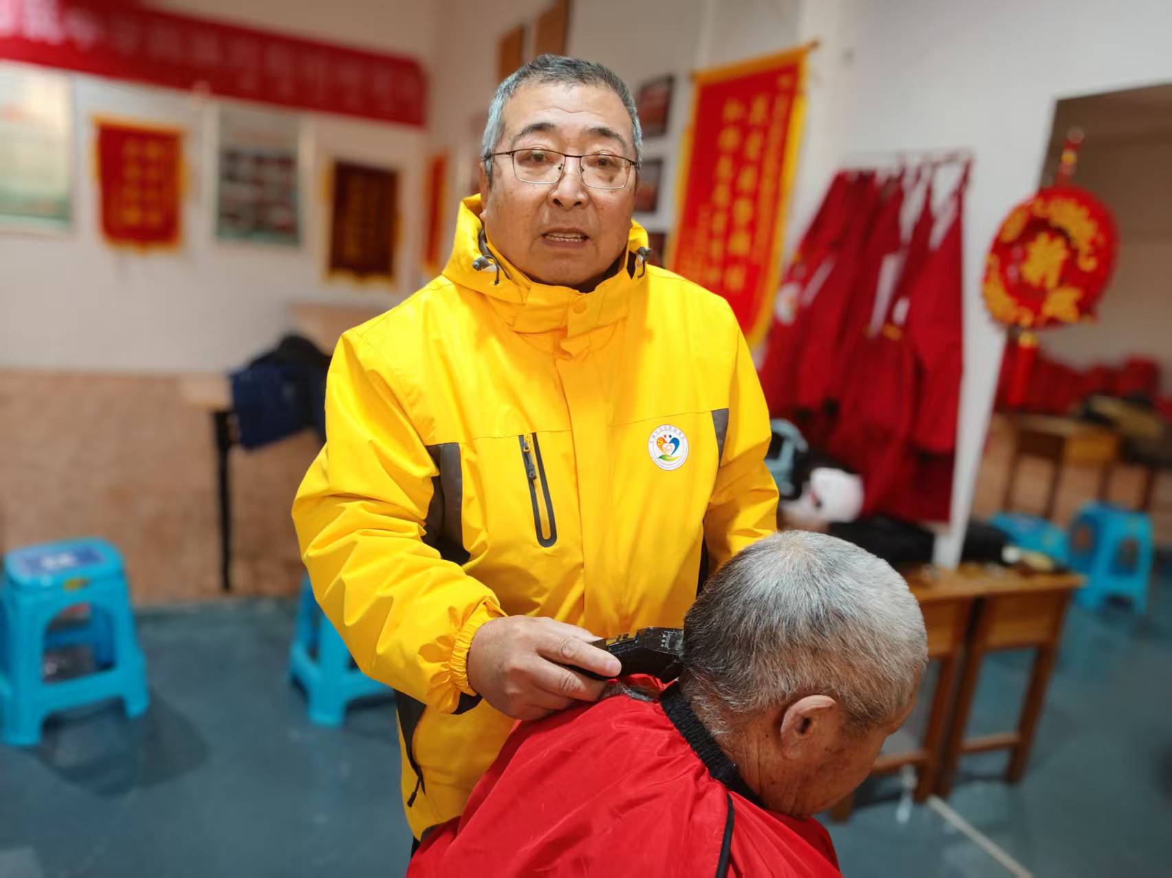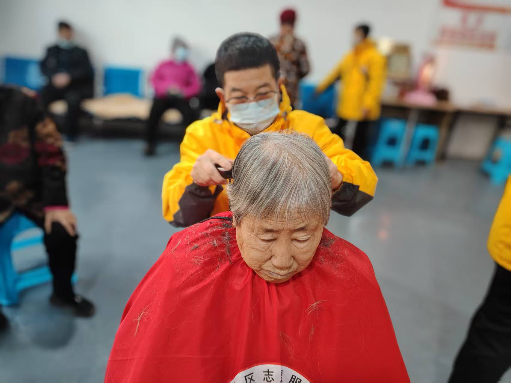 东城社区志愿服务队爱心义剪,每周二在社区新时代文明实践站为社区老人理发,并且为腿脚不方便的老人上门理服务