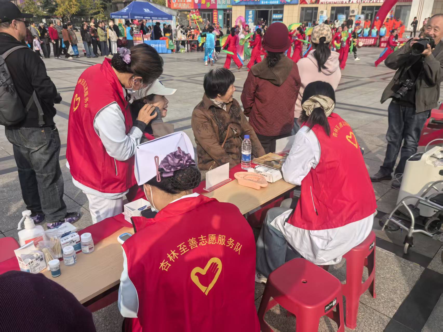 海阳市中医医院“杏林至善志愿服务队”,走进新元广场,开展健康知识咨询,测量血压,血糖,耳穴压豆等志愿服务活动。