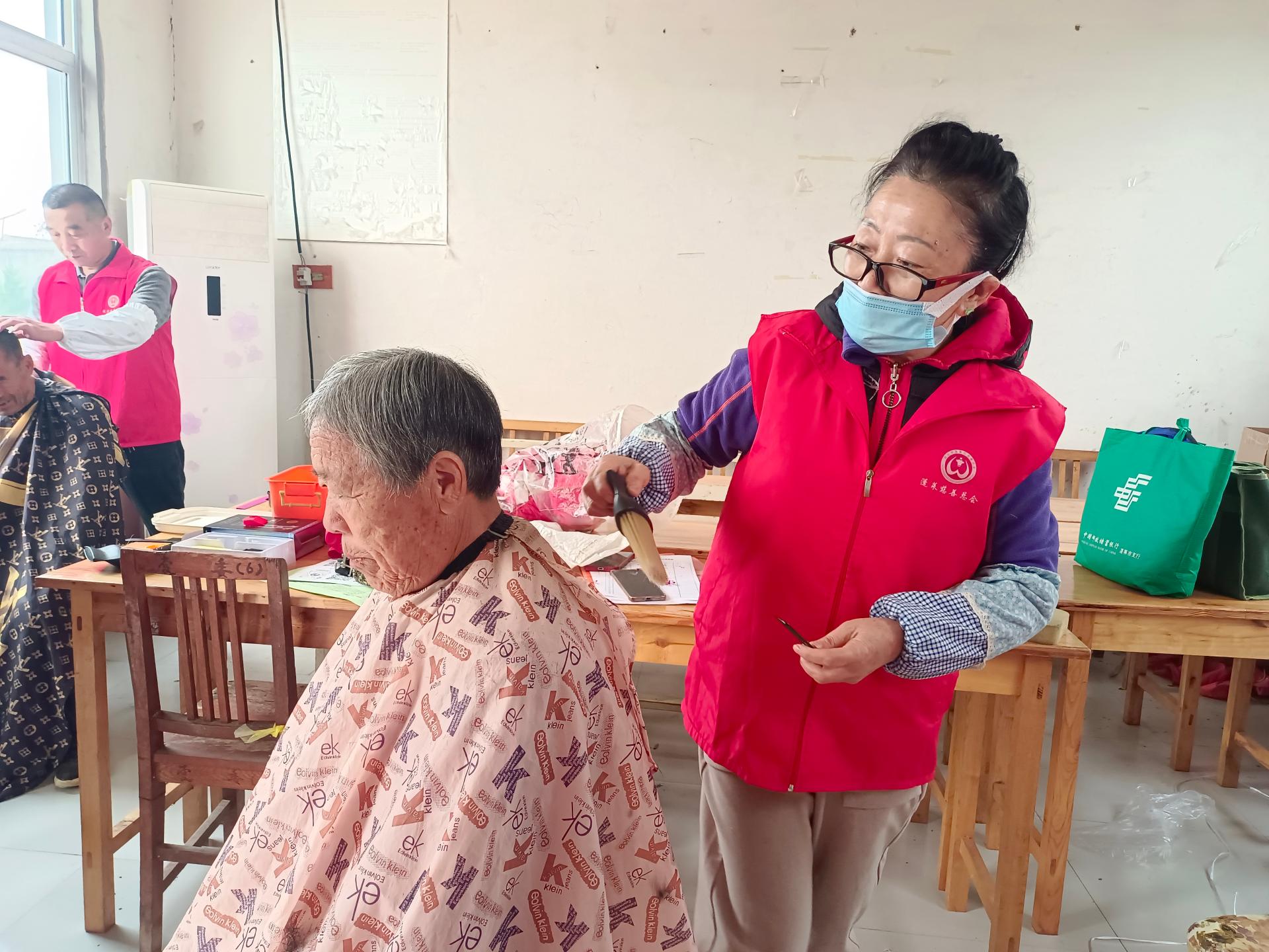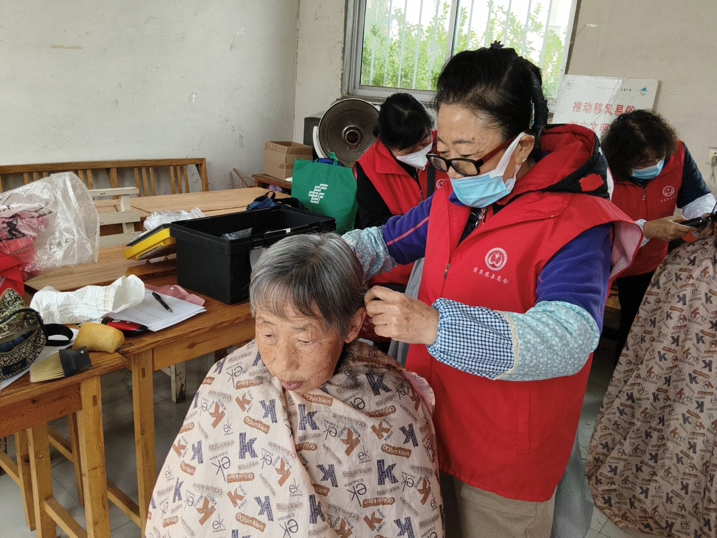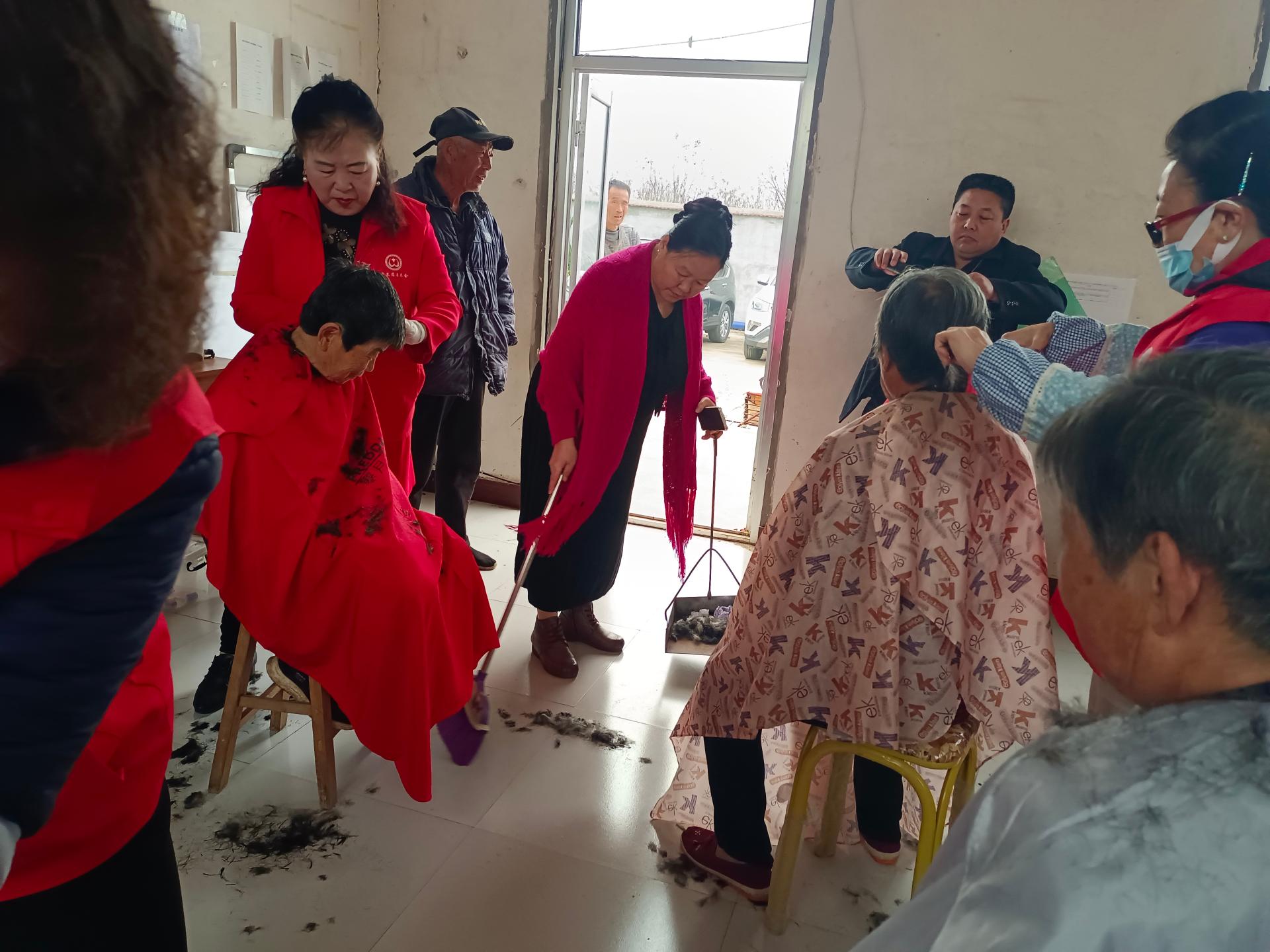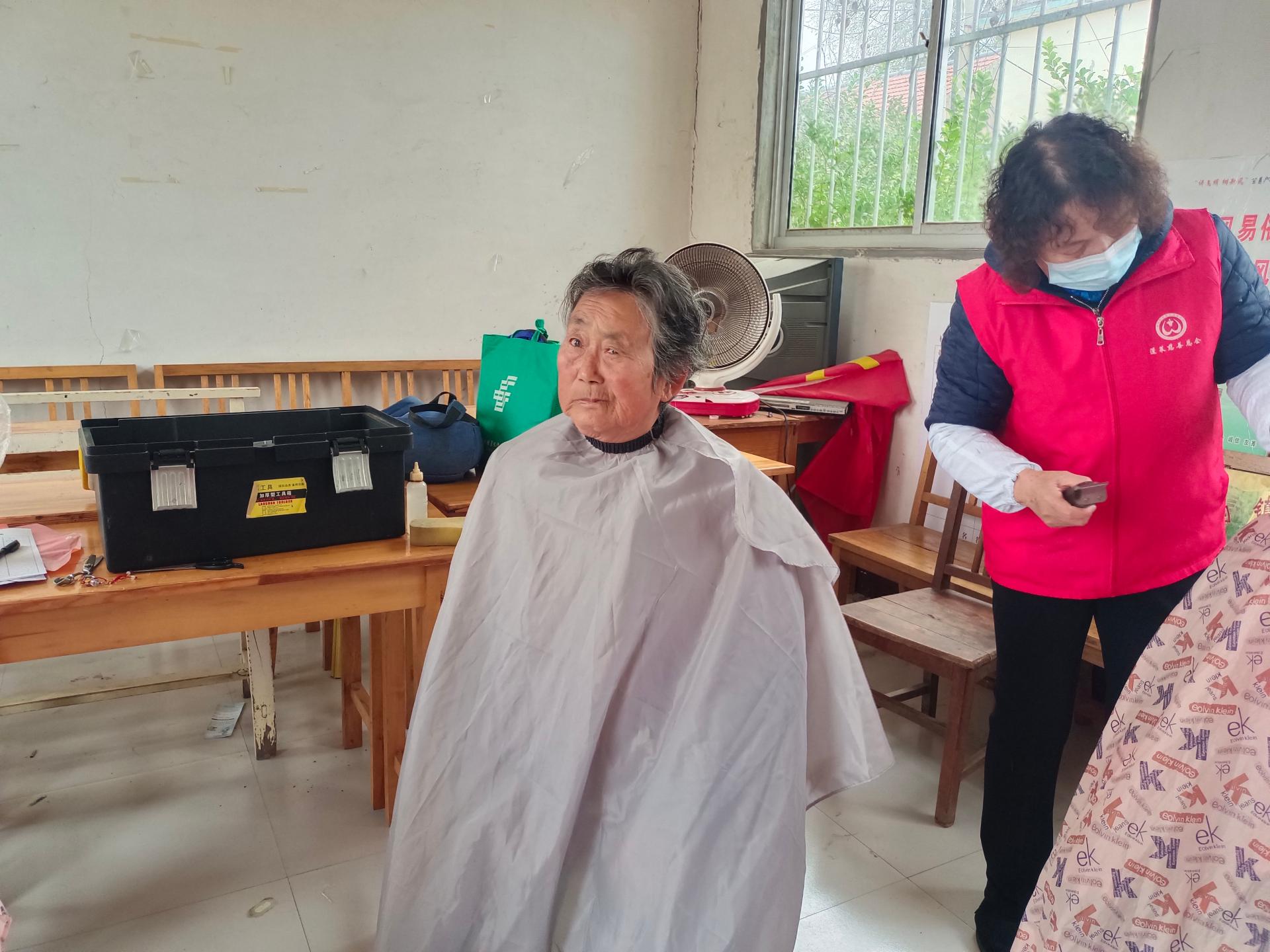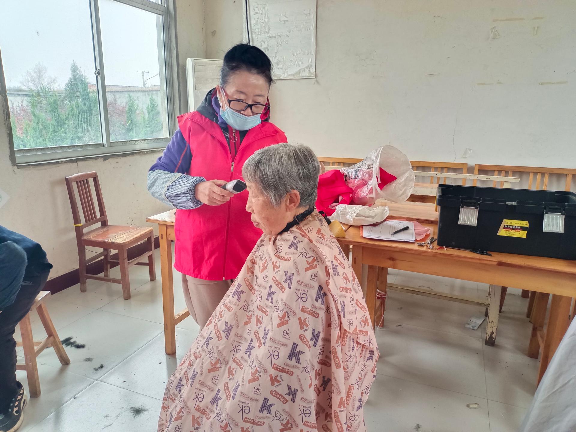 蓬莱区慈善总会雷锋社义工队的家人们为解家村老人义剪活动