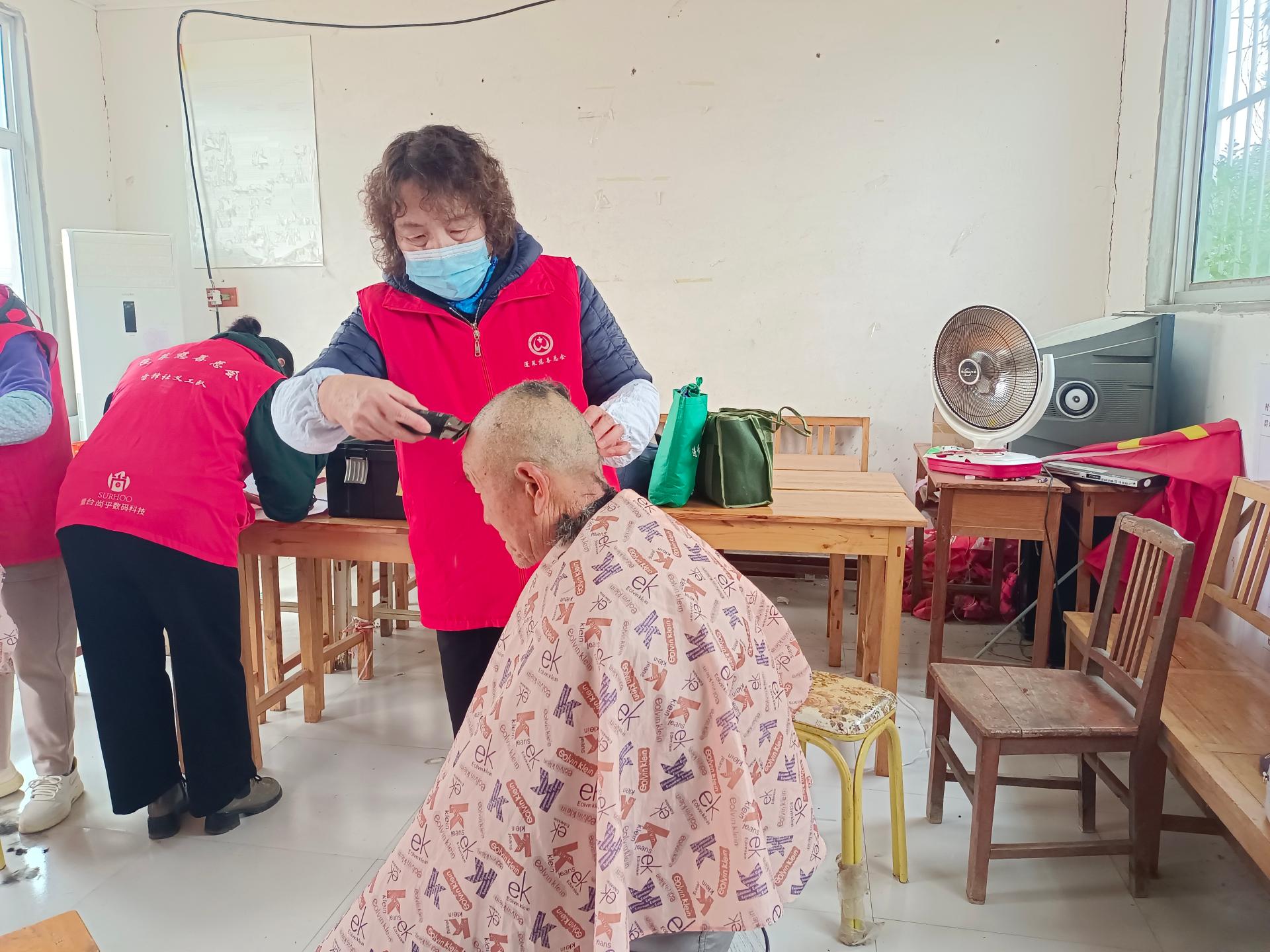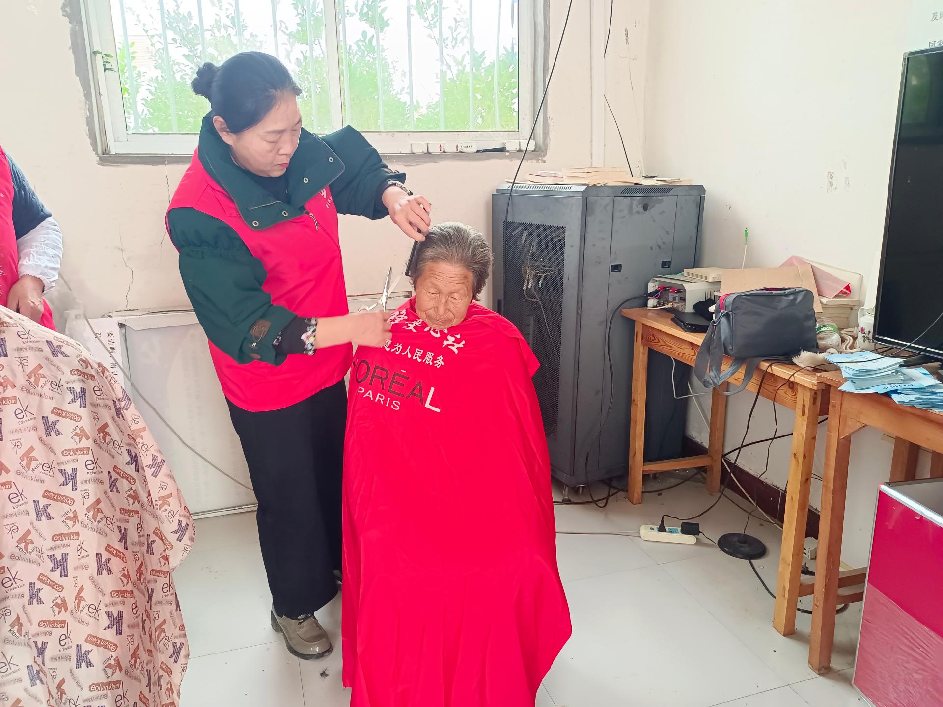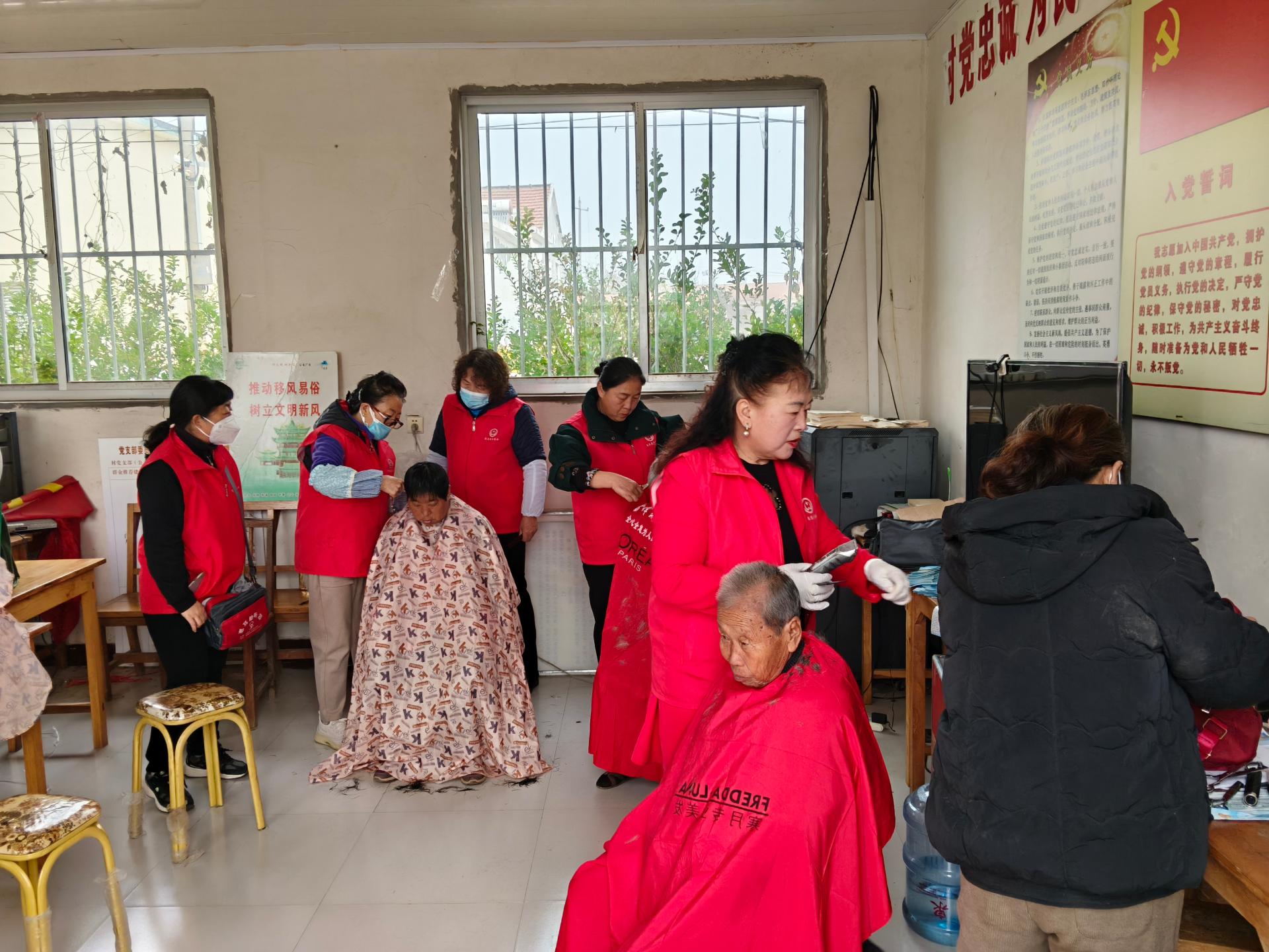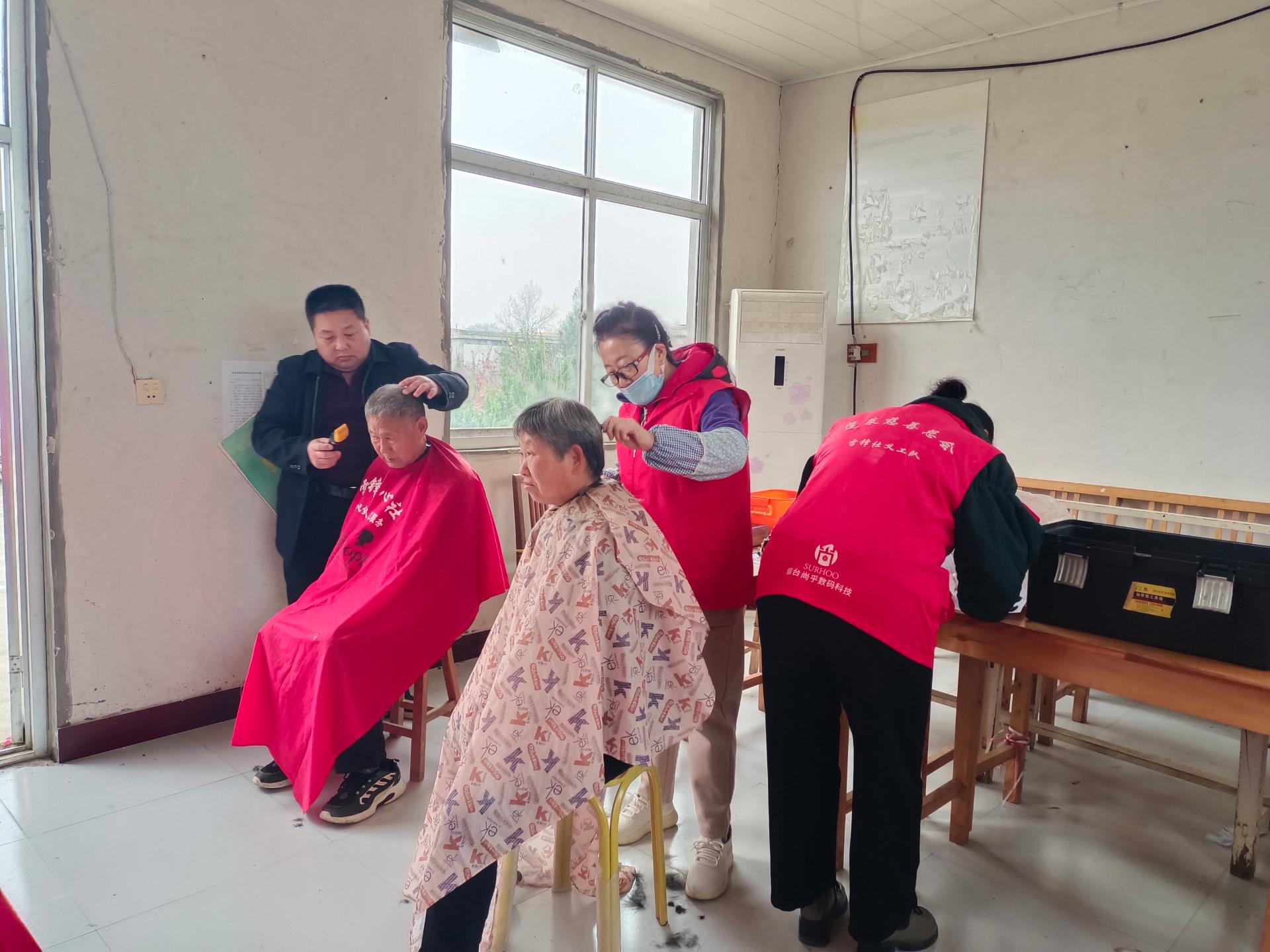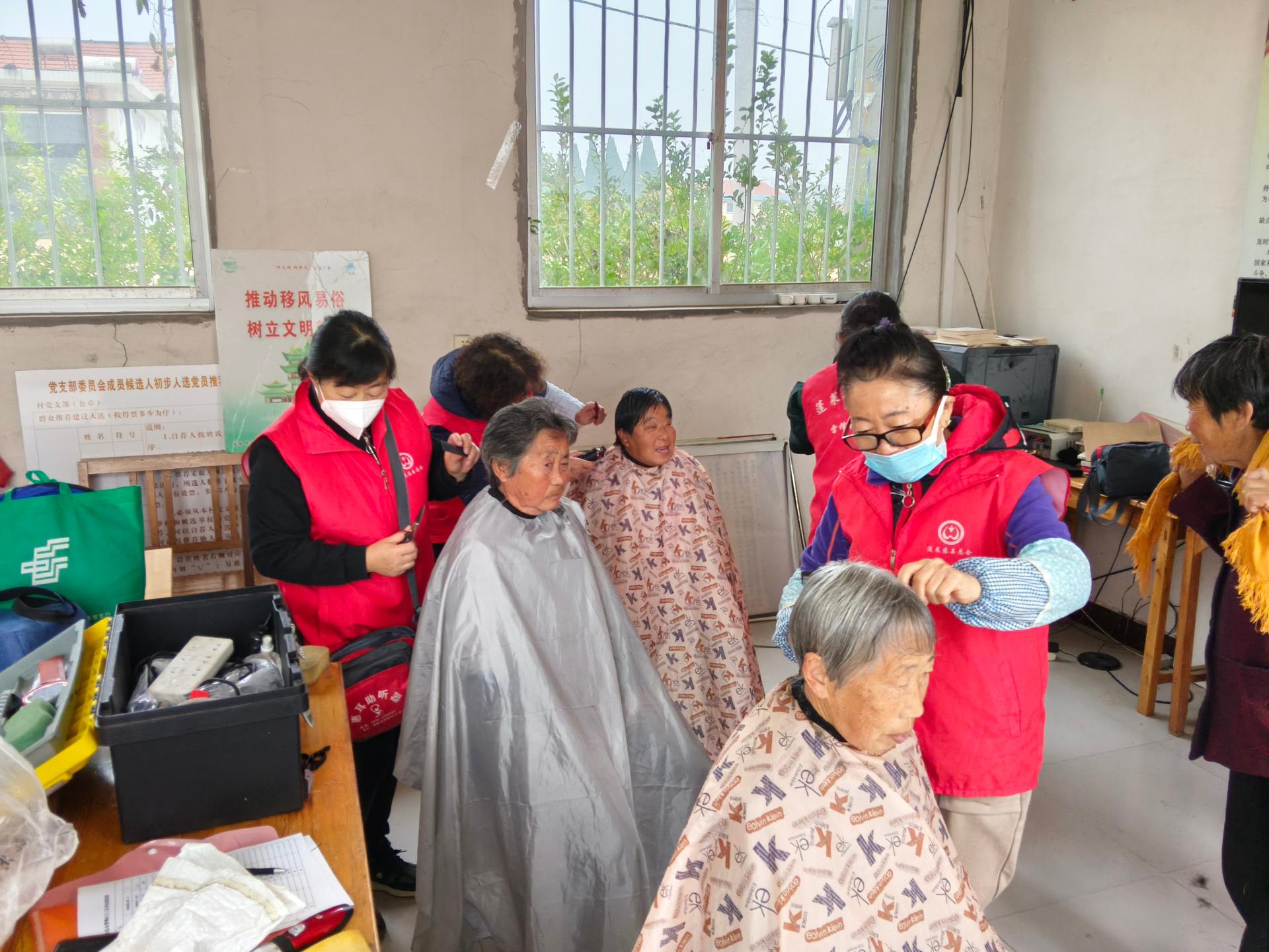 蓬莱区慈善总会雷锋社义工队的家人们为解家村老人义剪活动