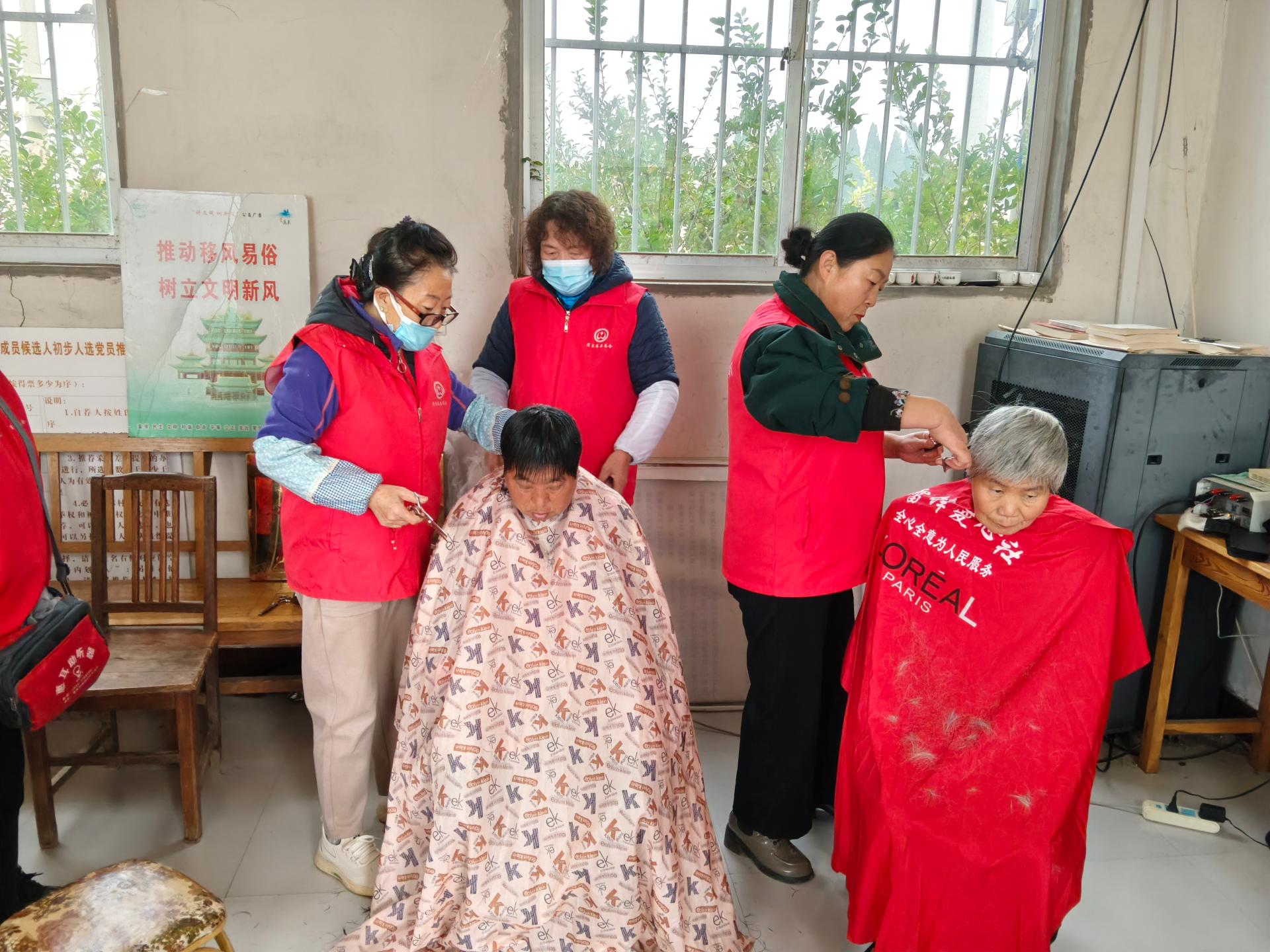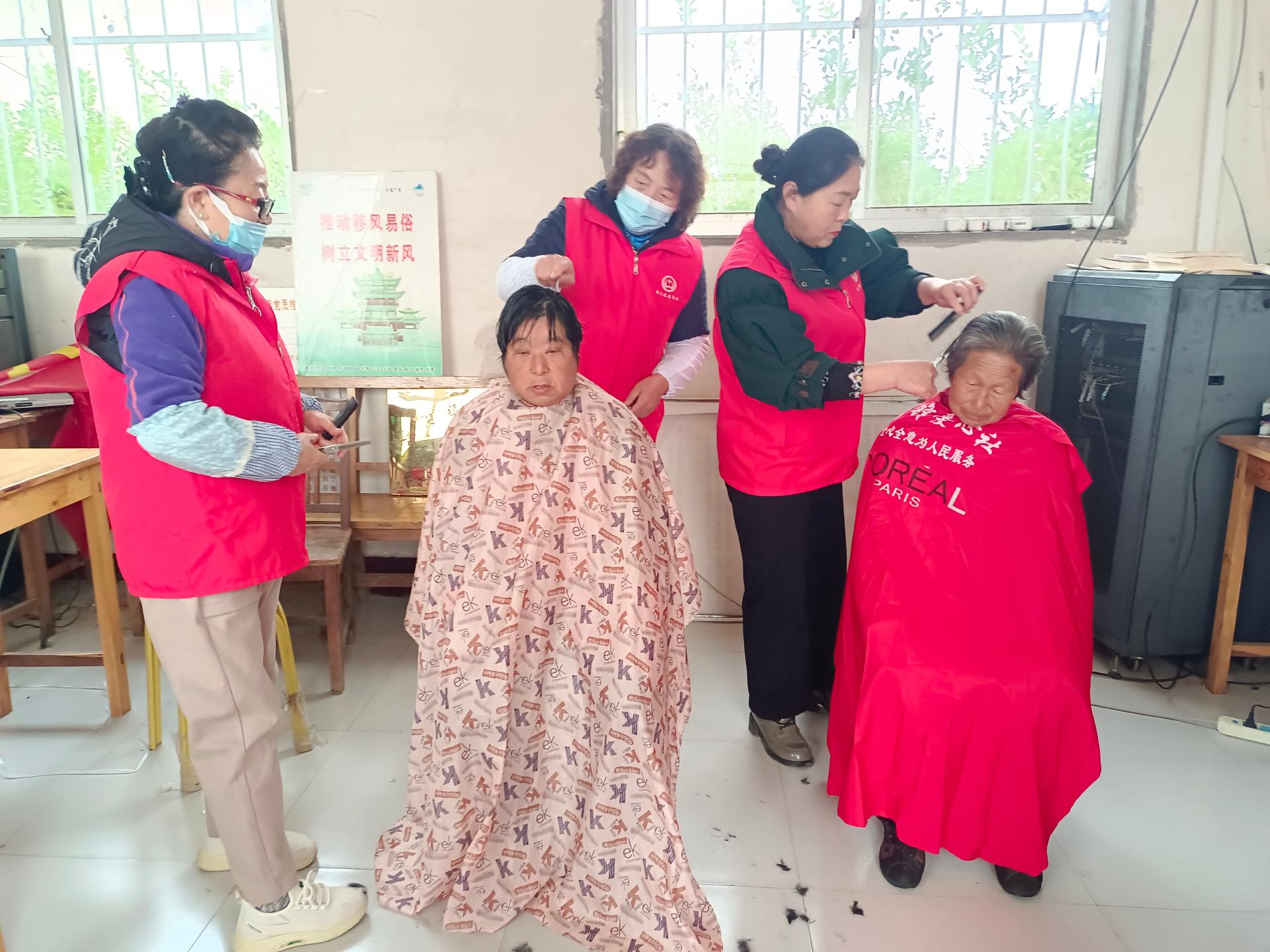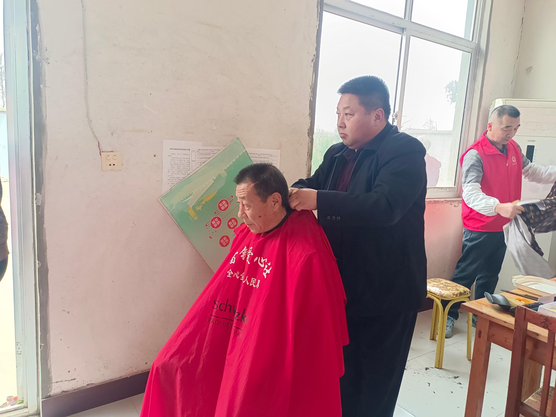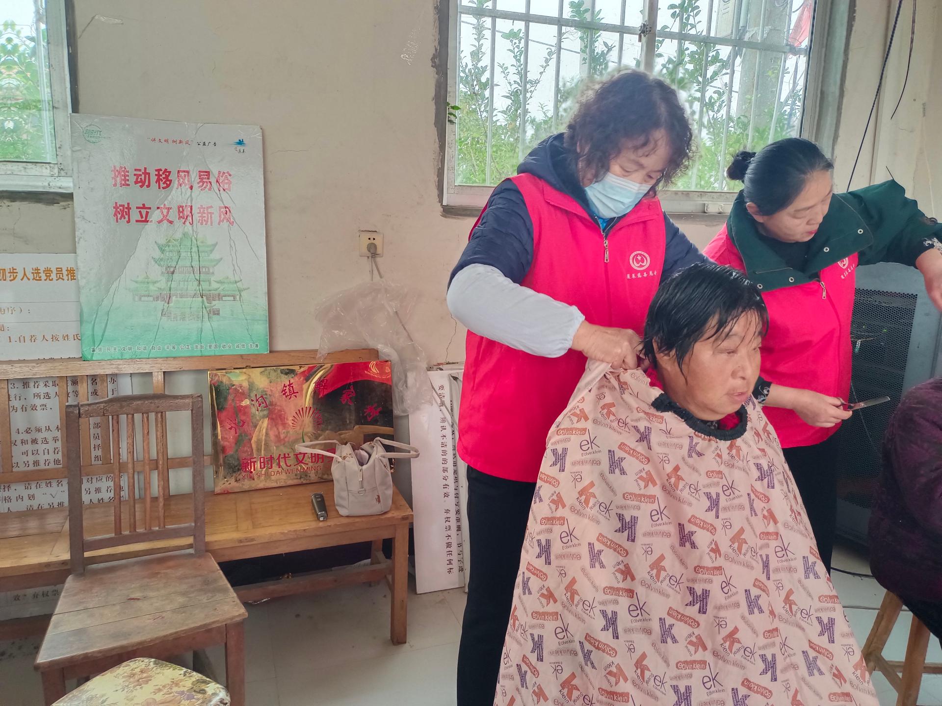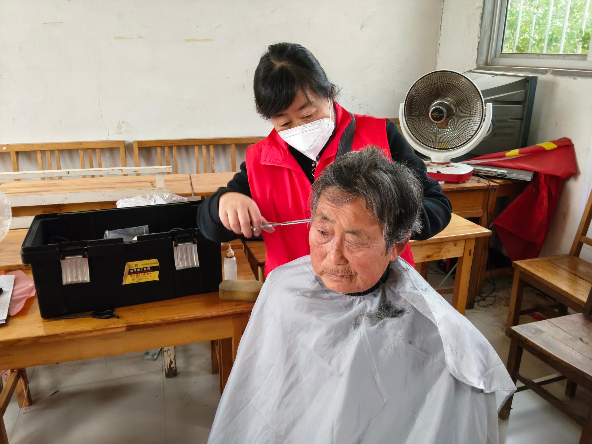 蓬莱区慈善总会雷锋社义工队的家人们为解家村老人义剪活动