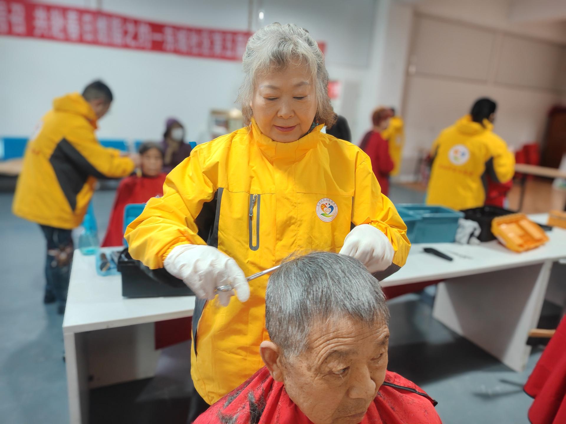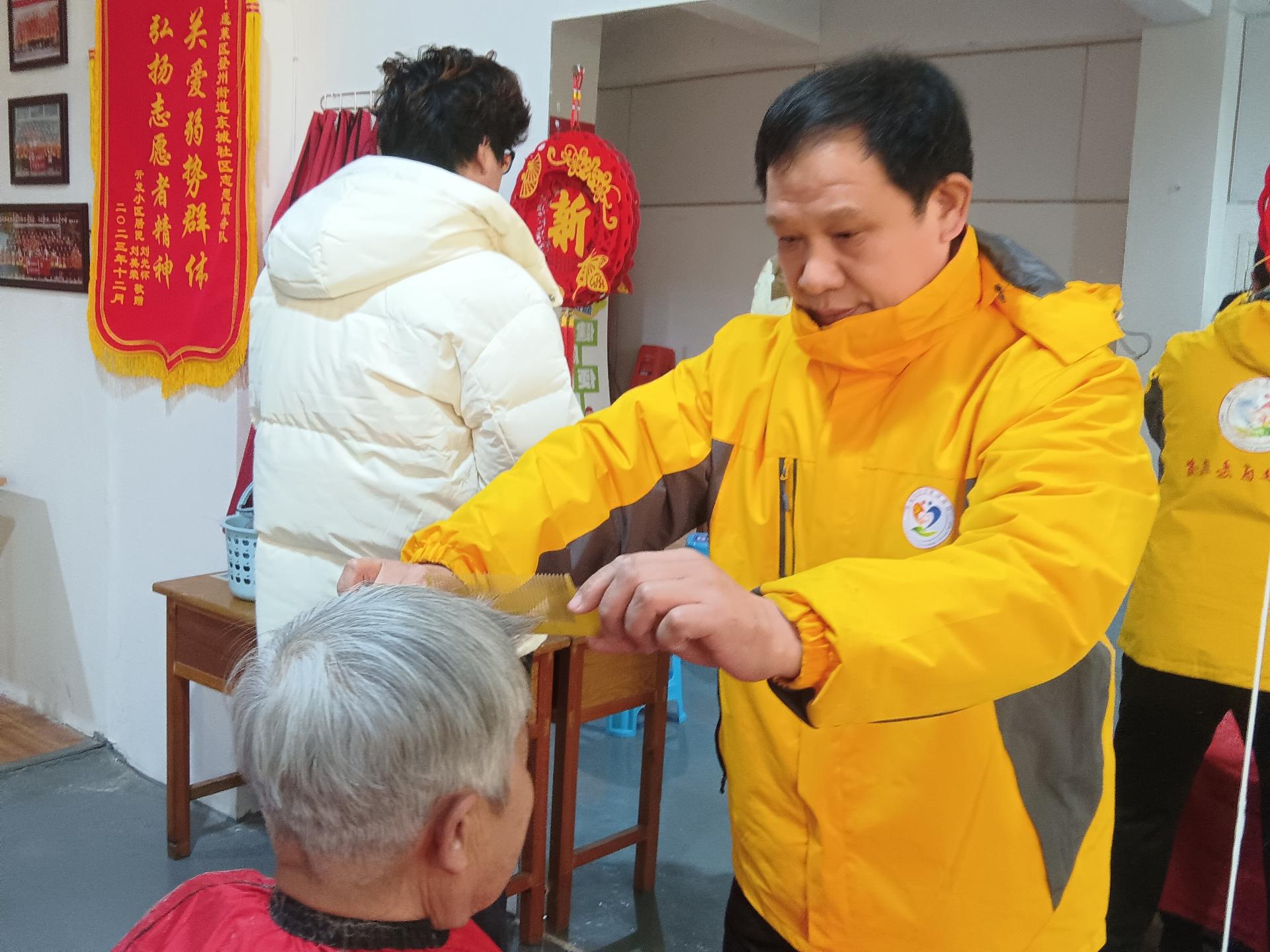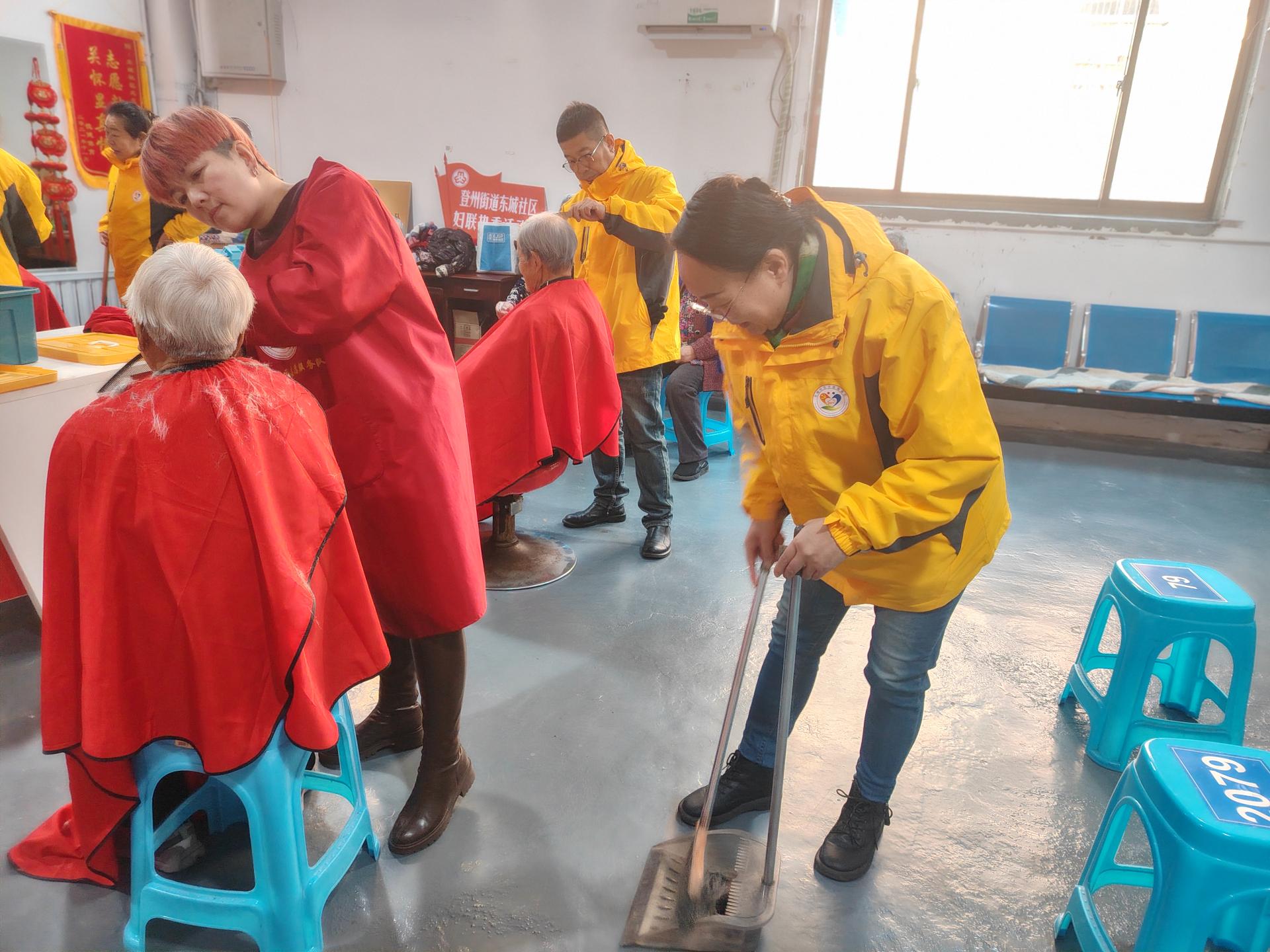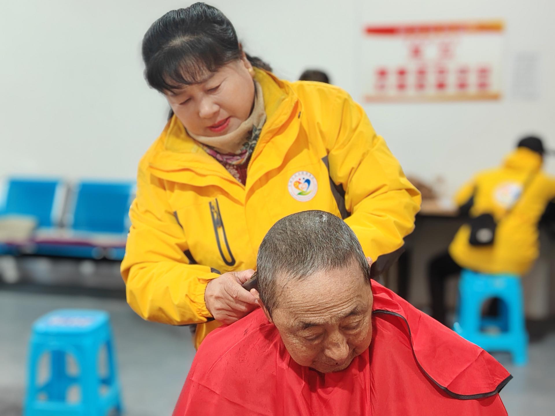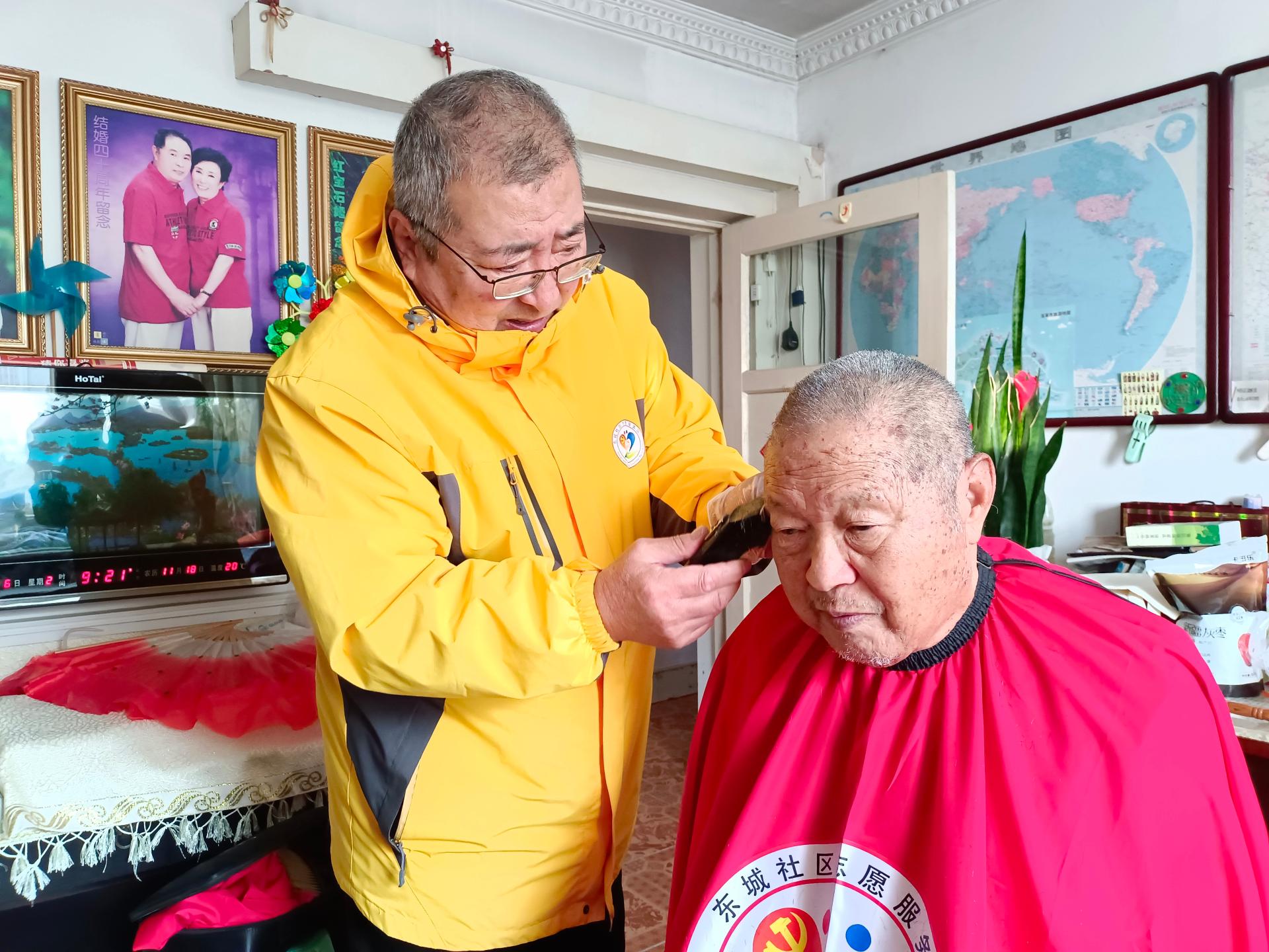 东城社区志愿服务队爱心义剪,每周二在社区新时代文明实践站为社区老人理发,并且为腿脚不方便的老人上门理服务