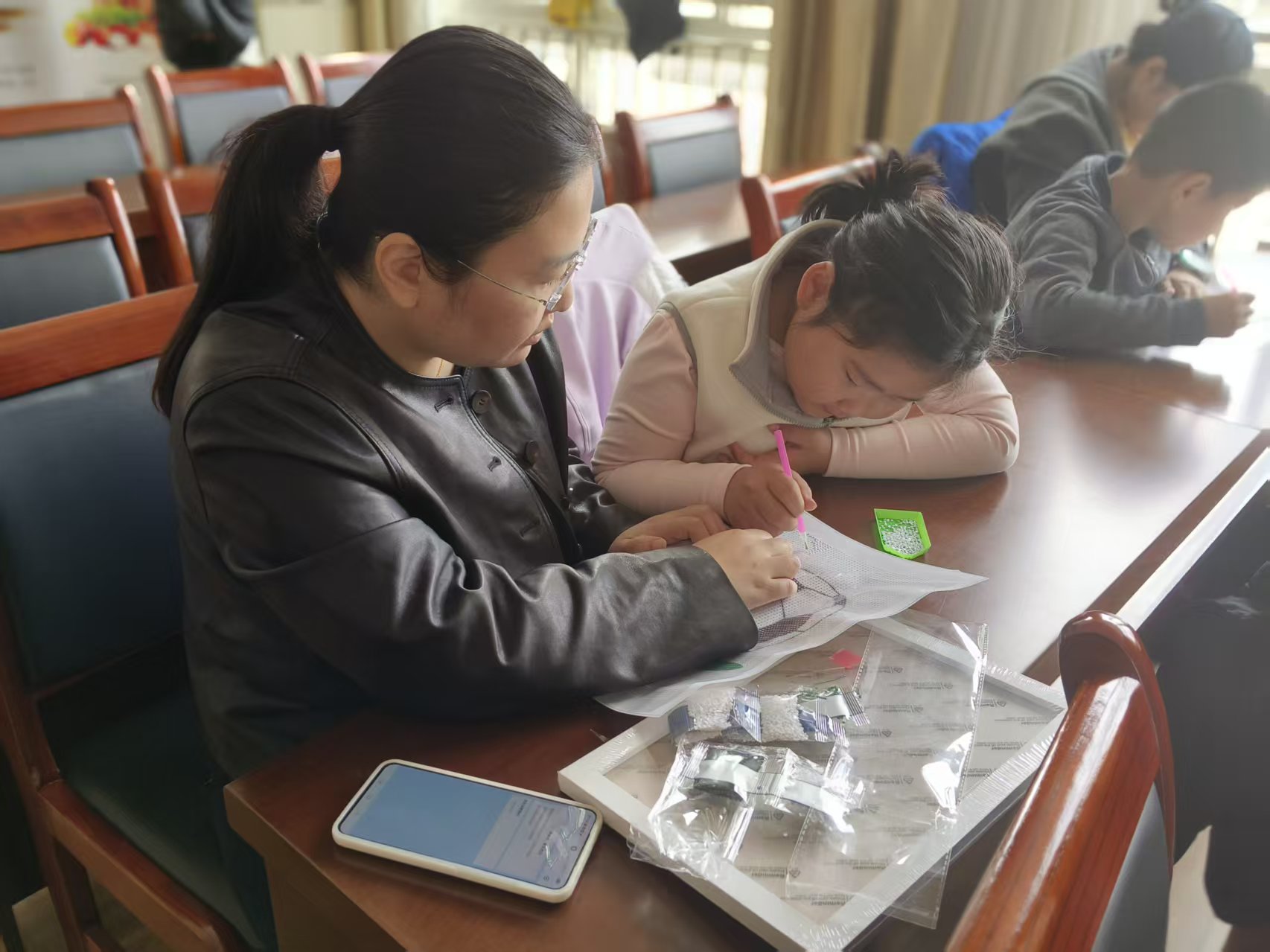 为了锻炼孩子协调动手能力,增进亲子关系,富甲社区组织辖区家长儿童在社区会议室开展DIY钻石画手工活动。