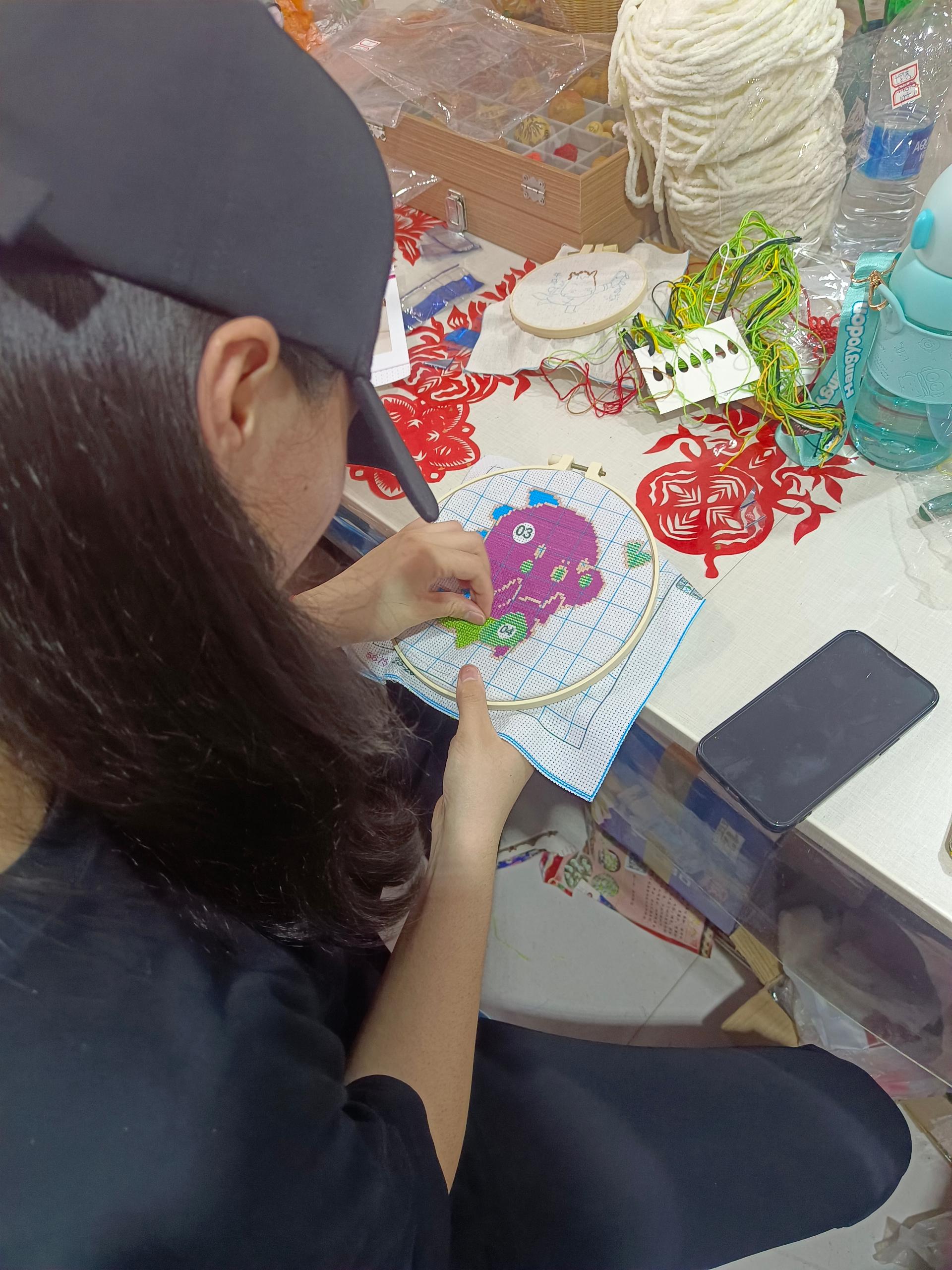 在北马允霞手工线编非遗文创工坊体验传授各种非遗线编珠编刺绣窗花剪纸各种非遗勾花十字绣中国结编织葫芦烙画等活动