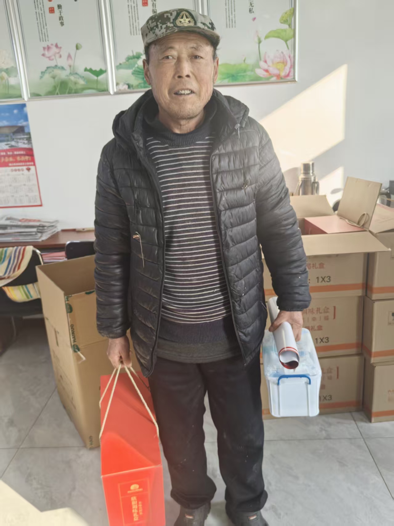 山上李家村开展春节走访慰问退伍军人礼品发放活动,需招募5人,分别清点发放物品,搀扶上岁数退伍军人,等
