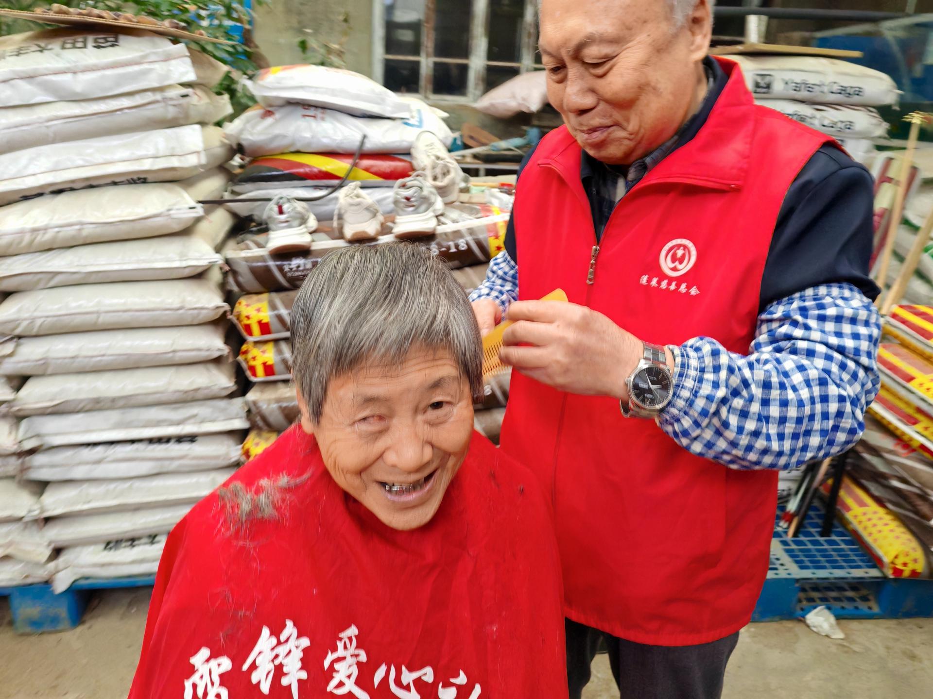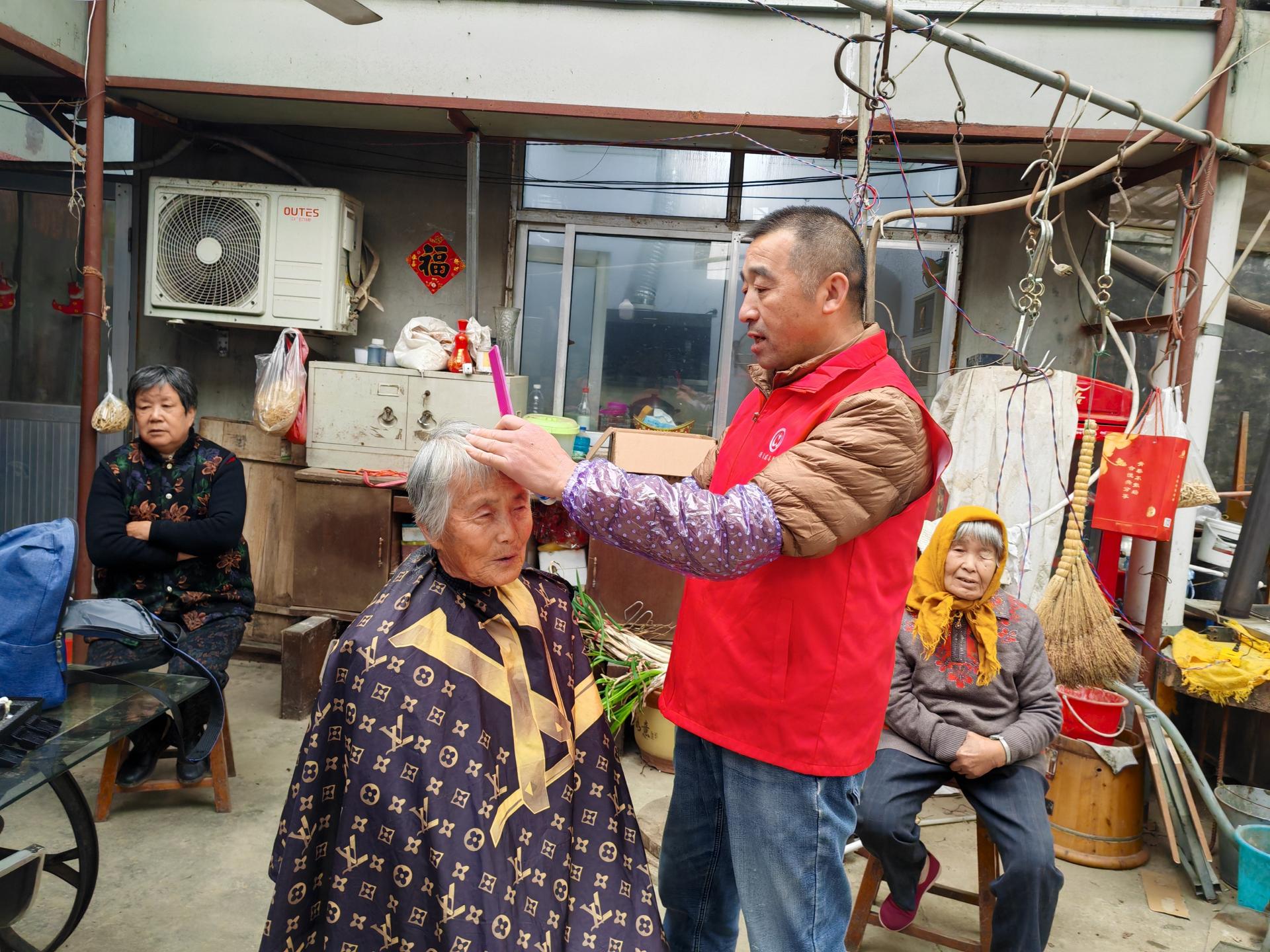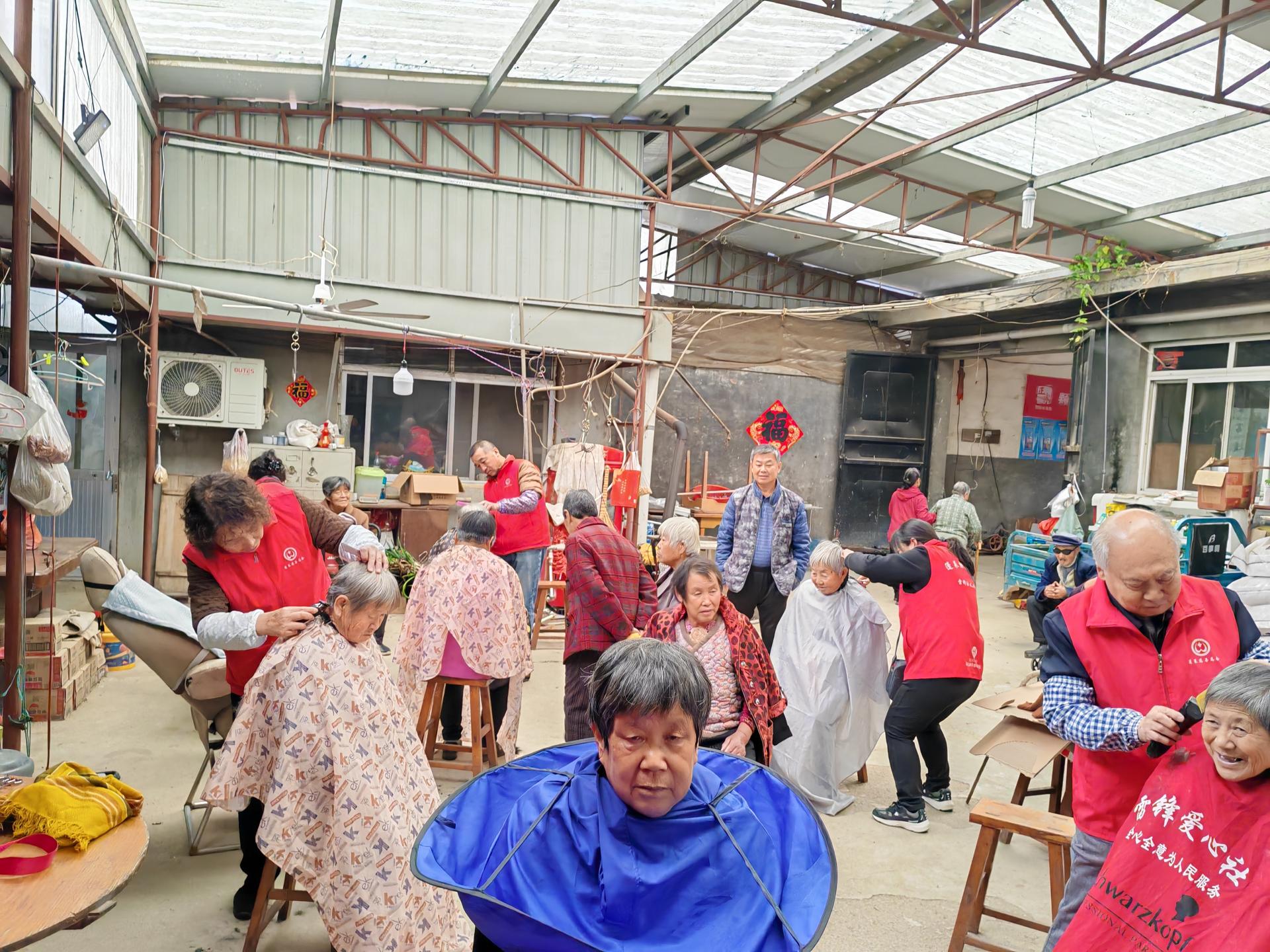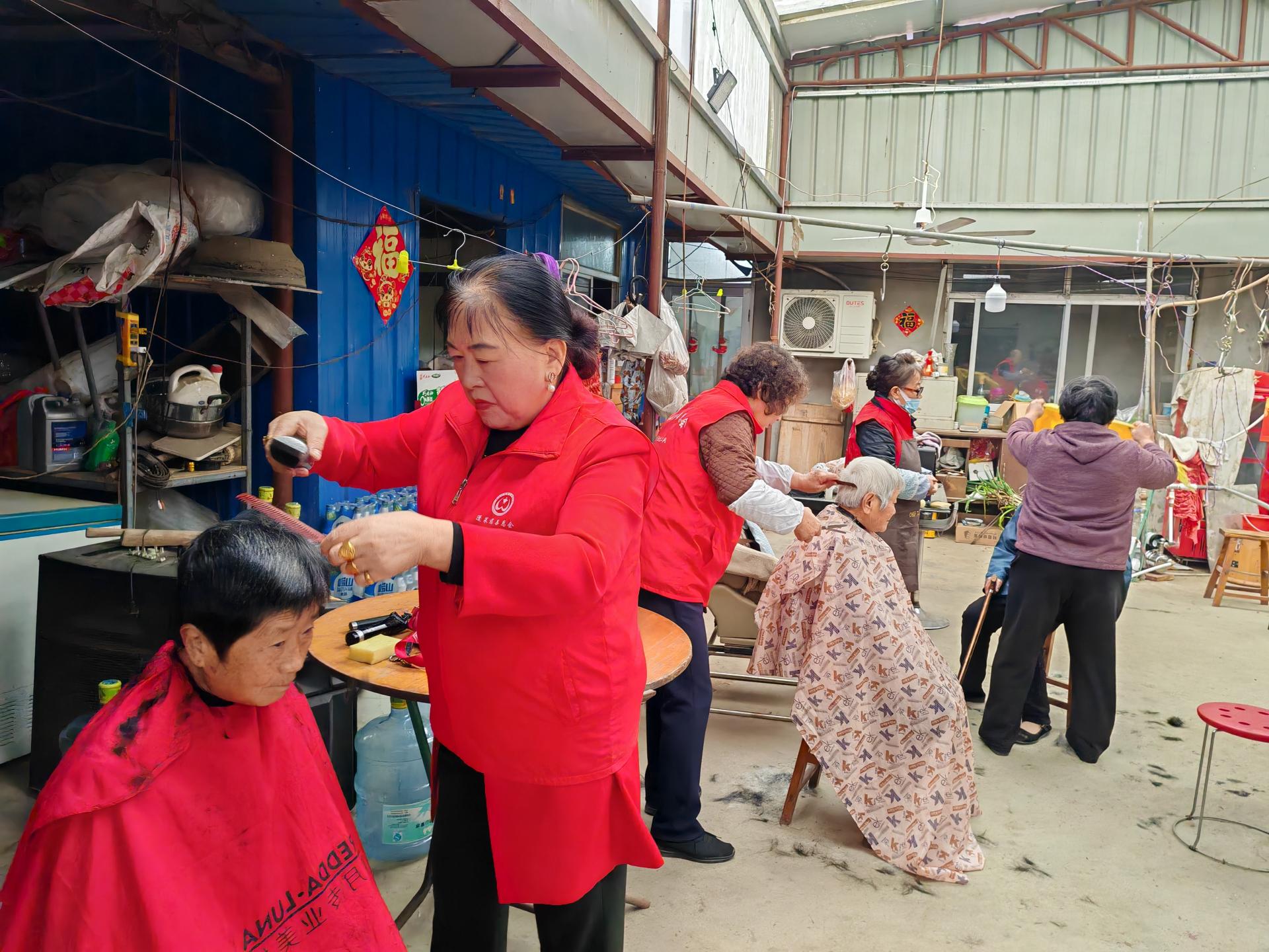 蓬莱区慈善总会雷锋社义工队的家人们为荆魏村老人义剪活动