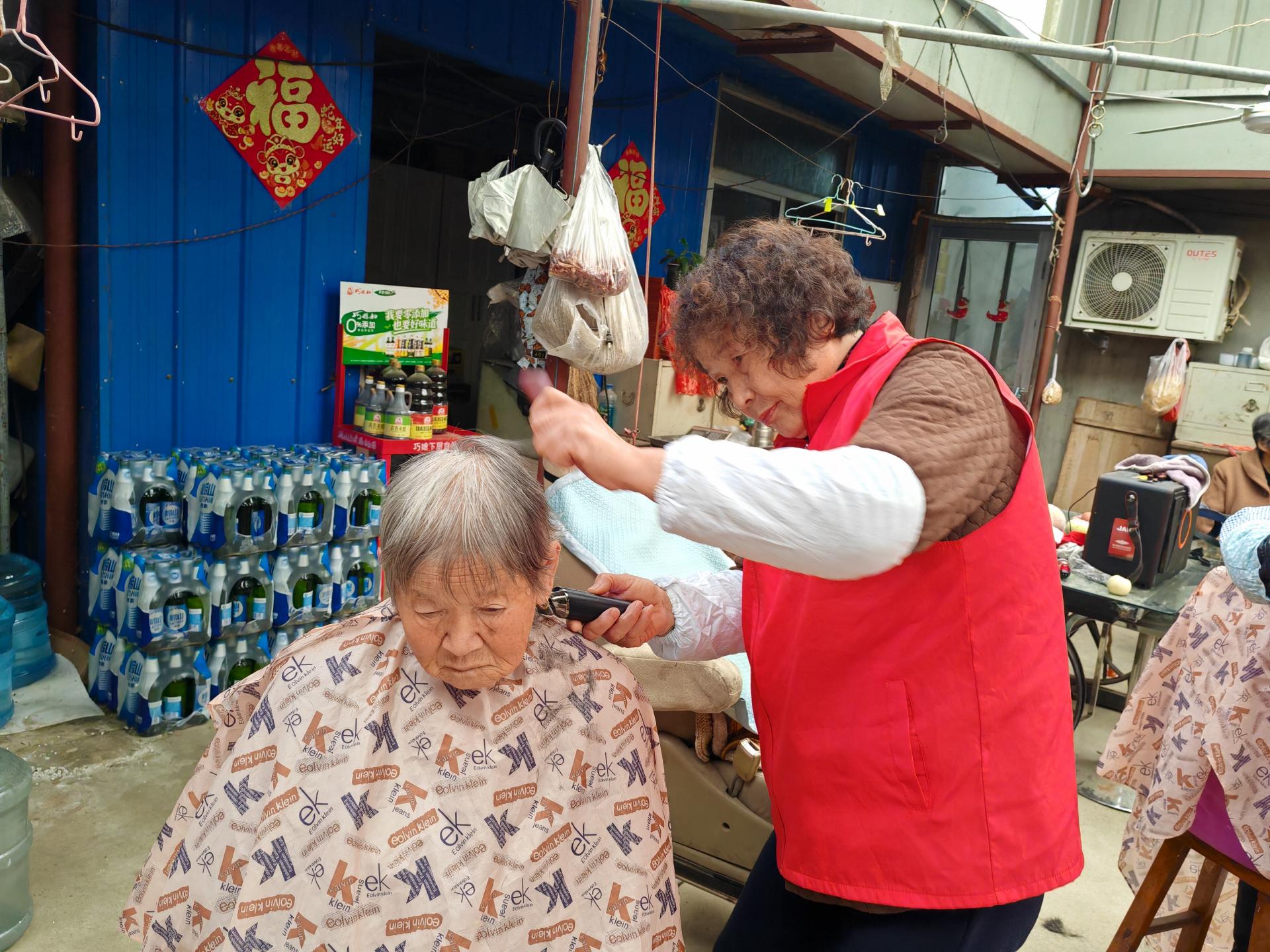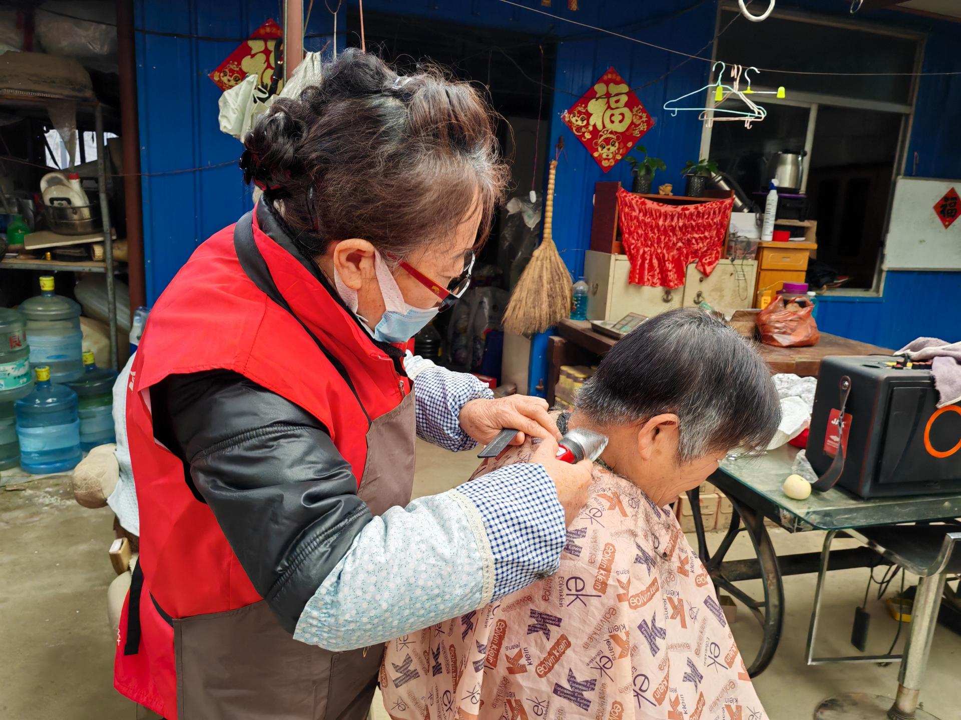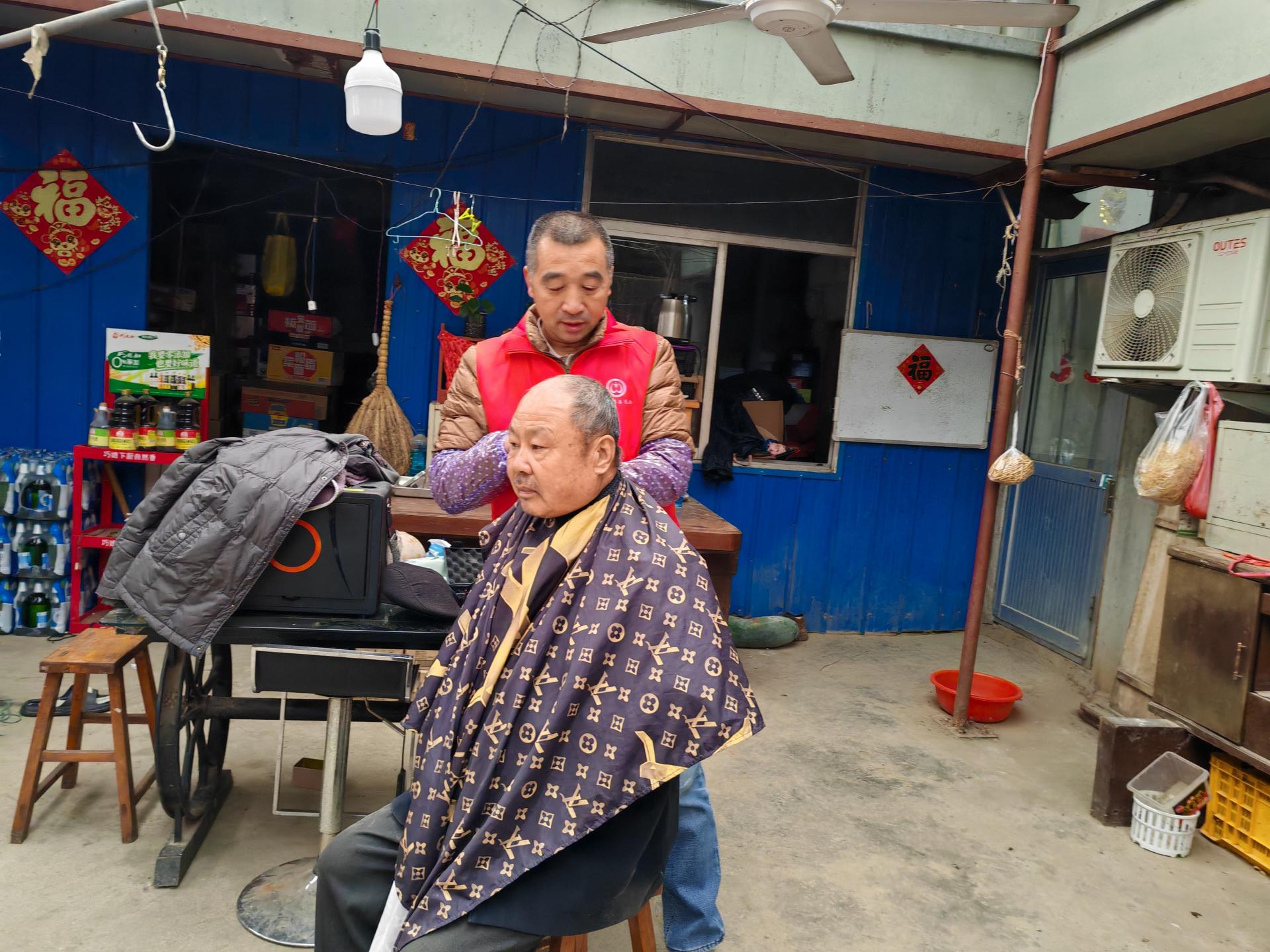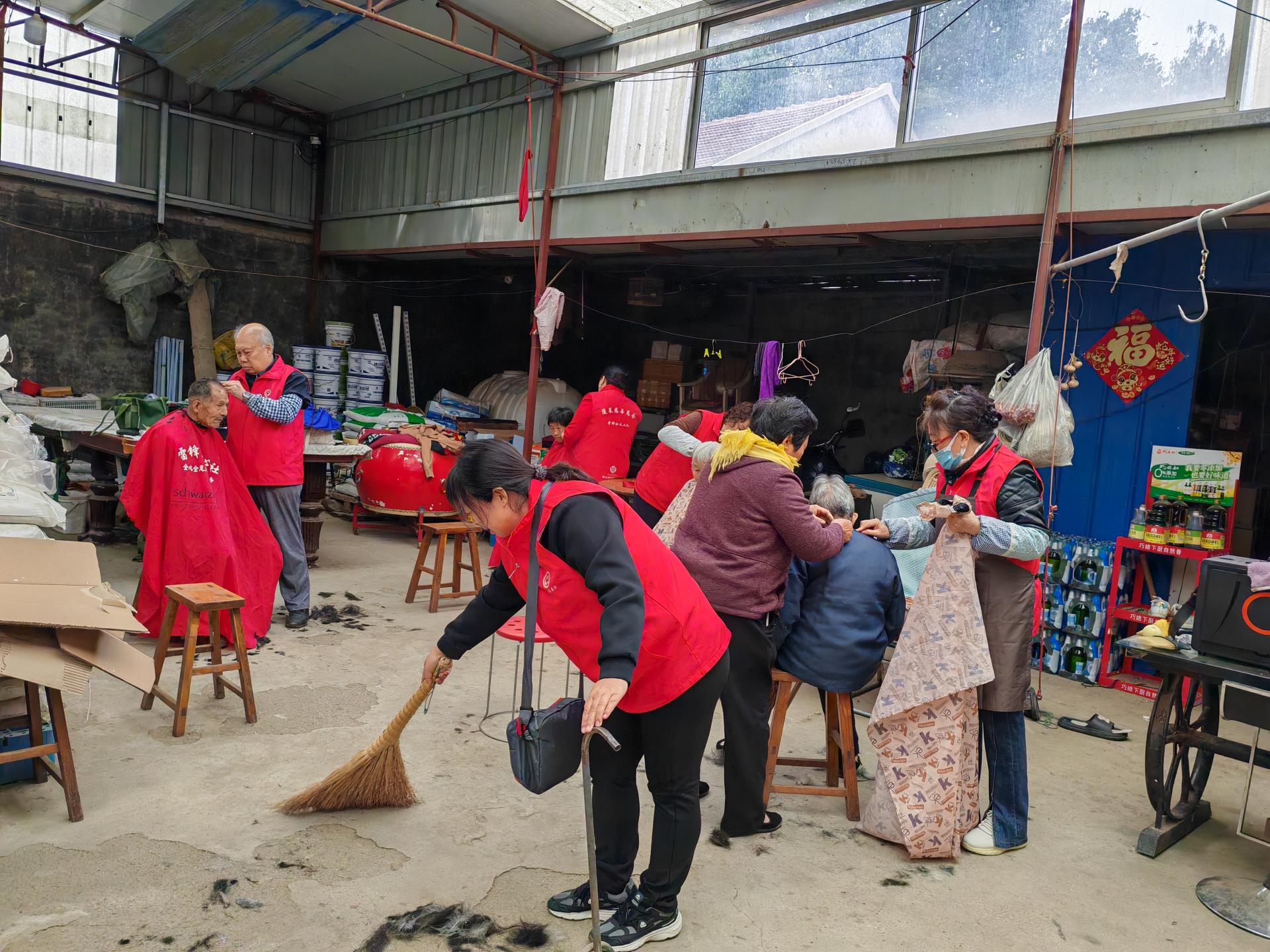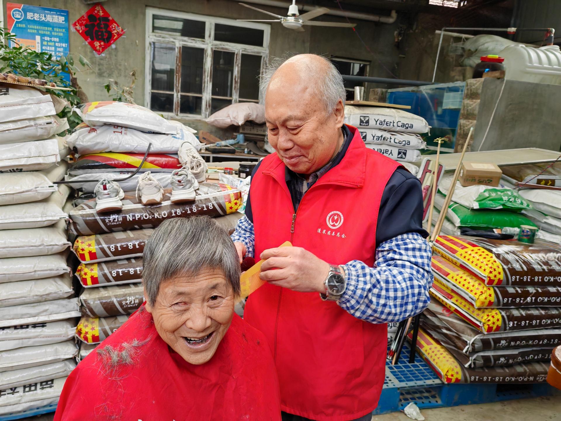 蓬莱区慈善总会雷锋社义工队的家人们为荆魏村老人义剪活动