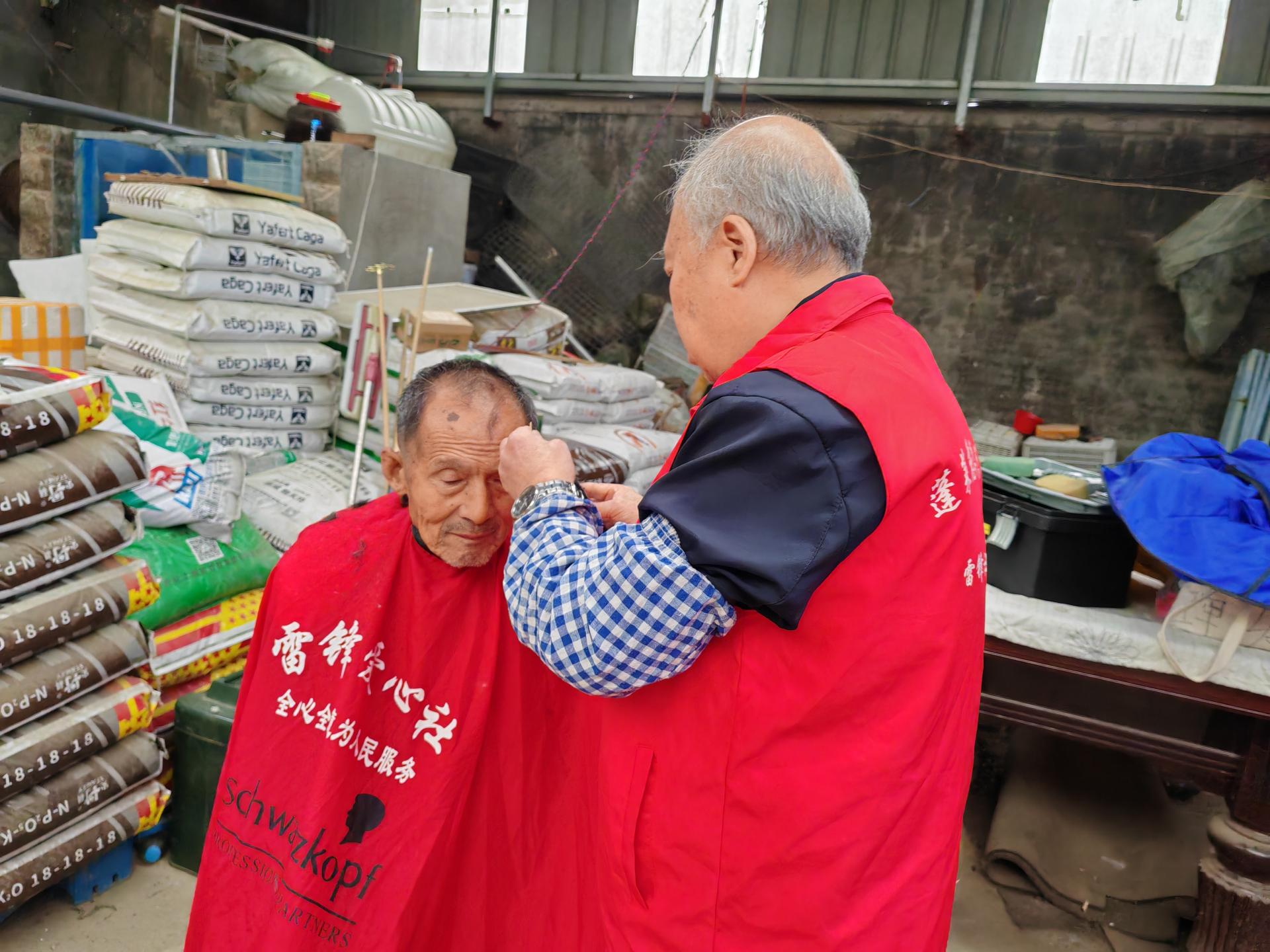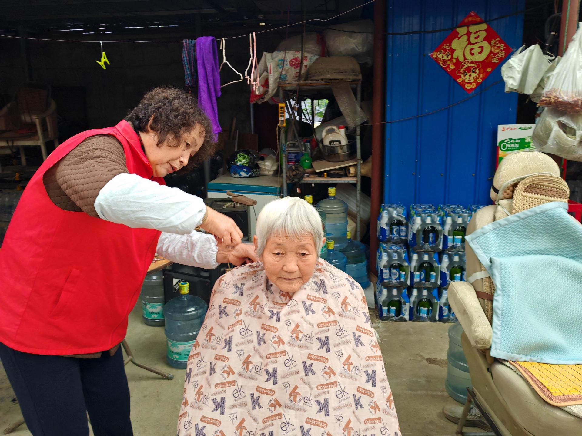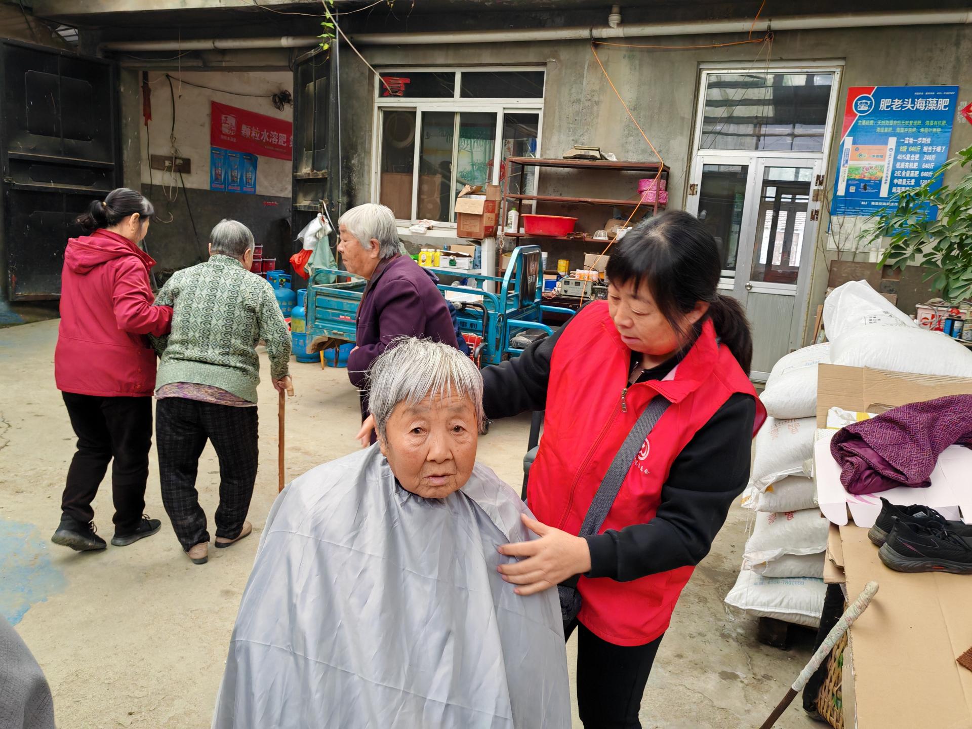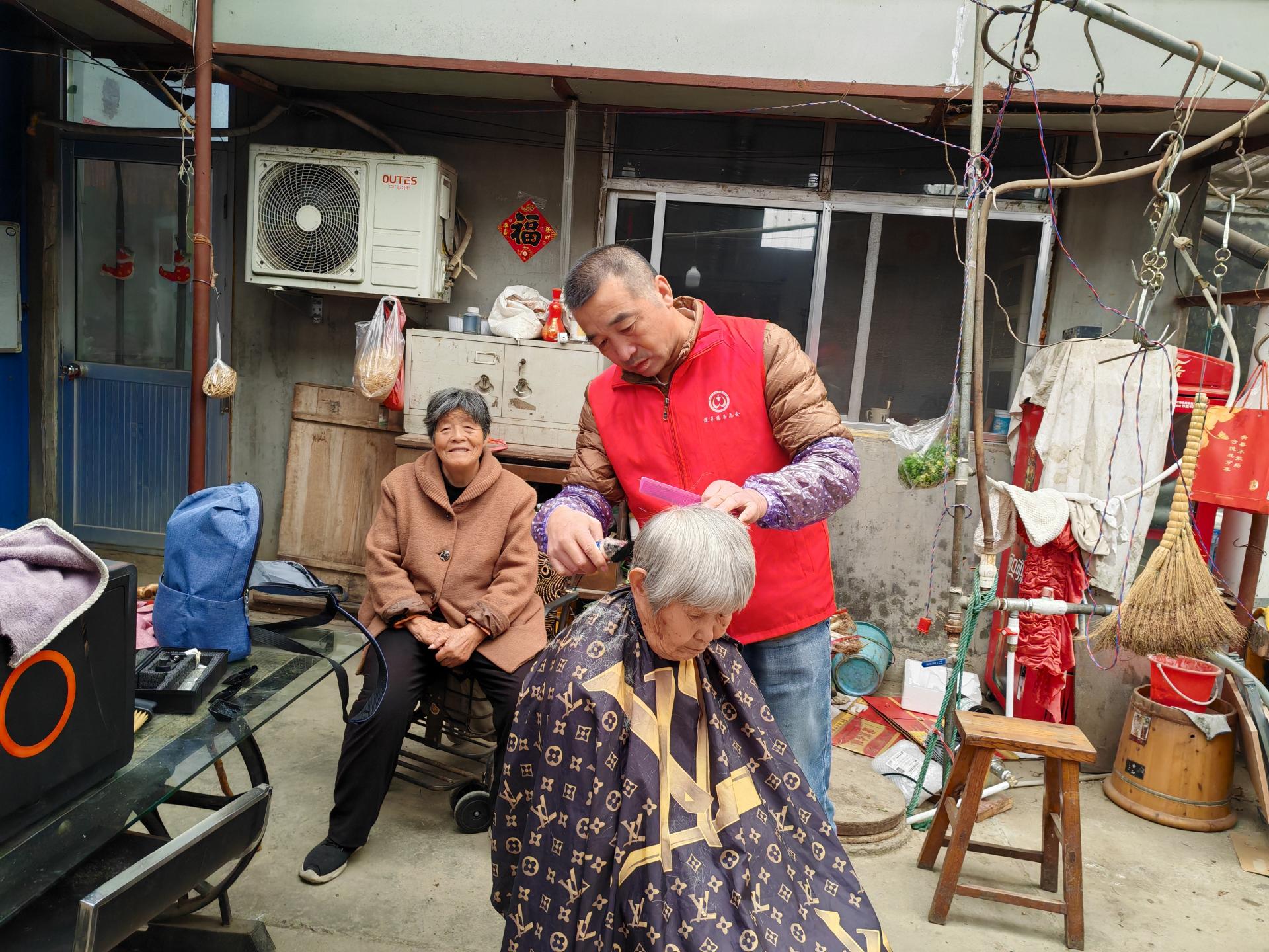 蓬莱区慈善总会雷锋社义工队的家人们为荆魏村老人义剪活动