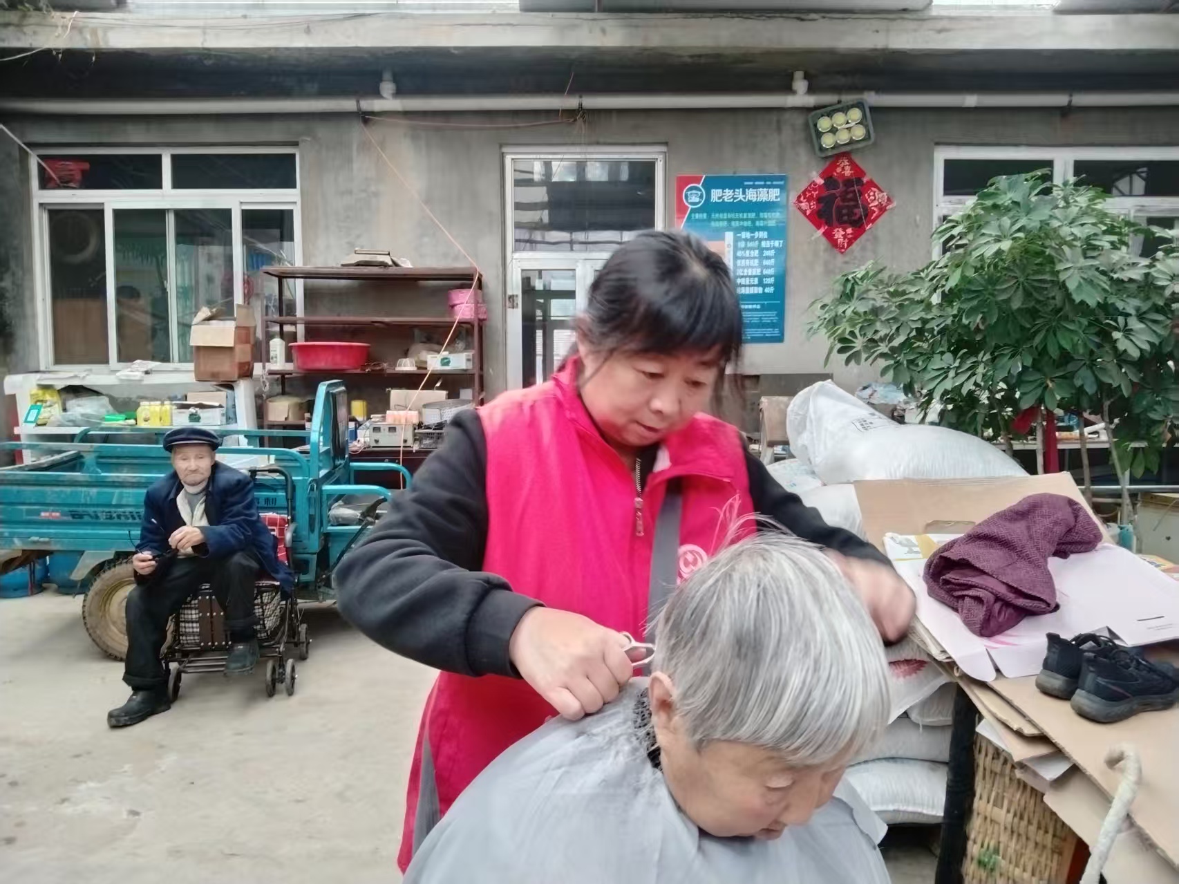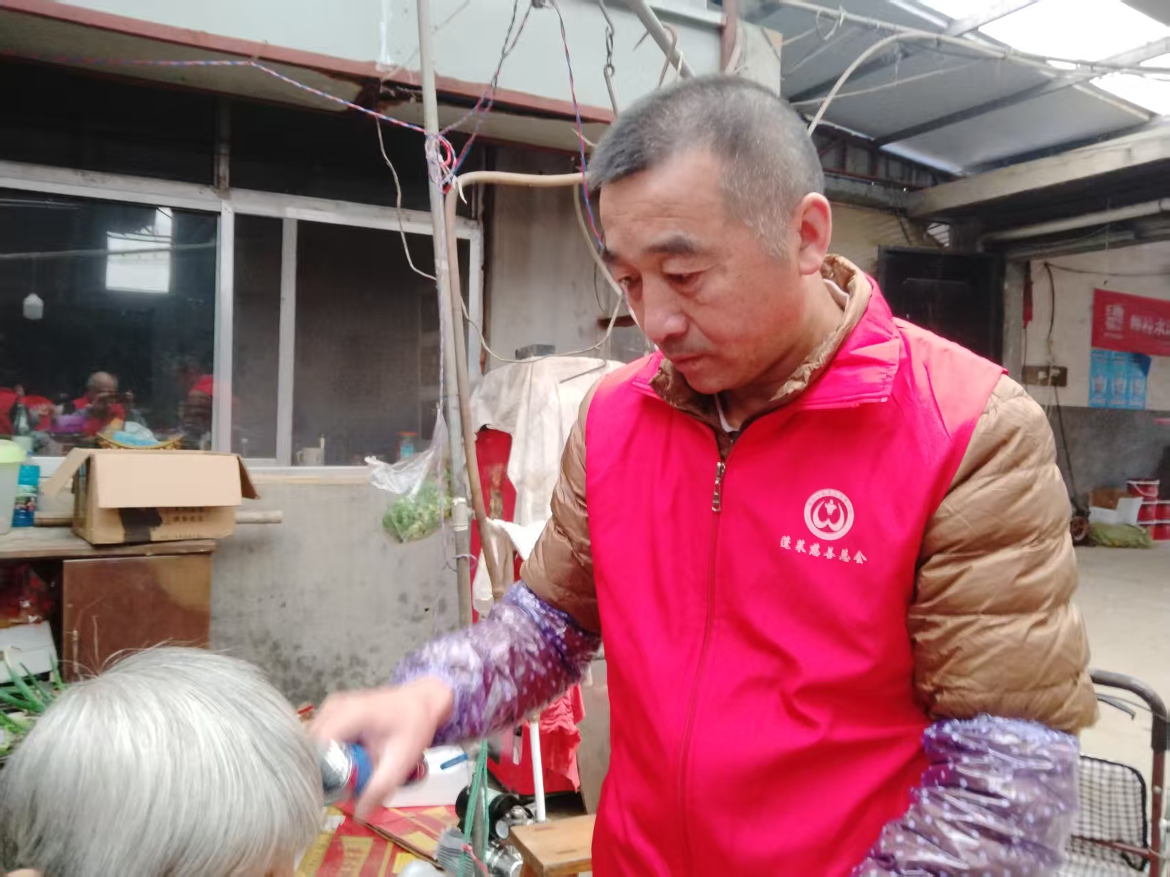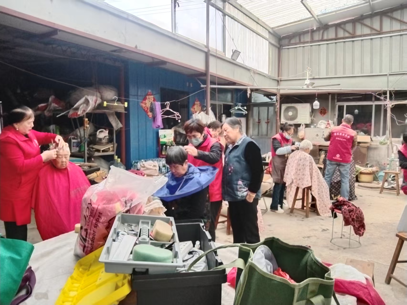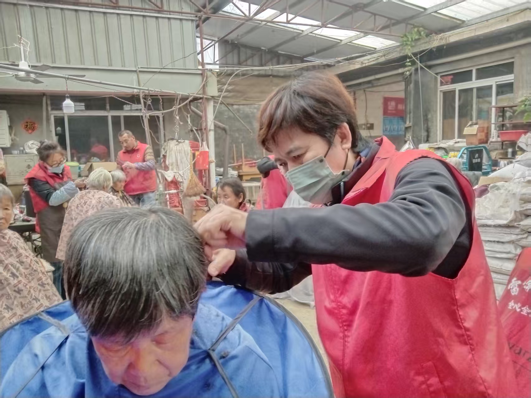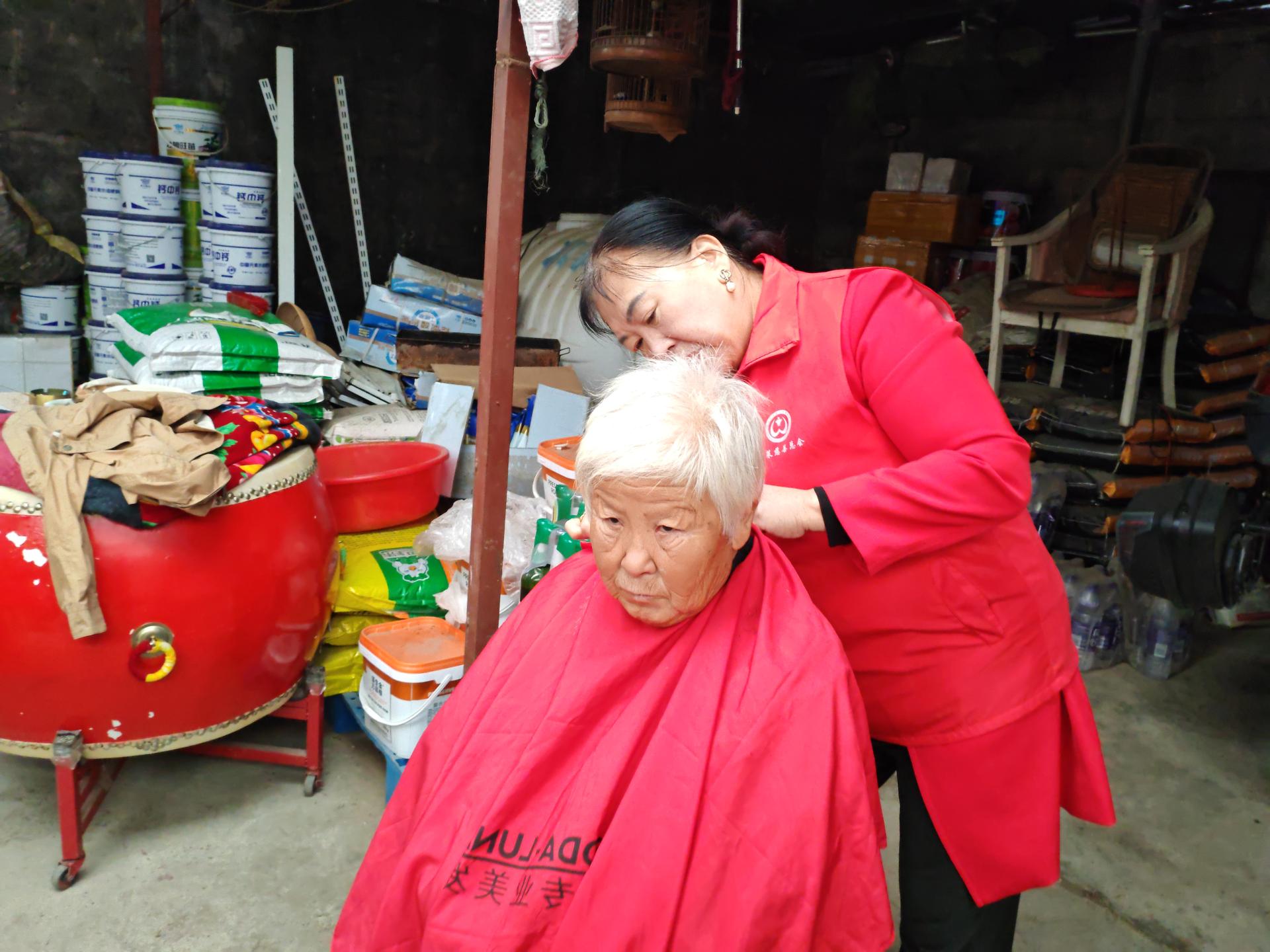 蓬莱区慈善总会雷锋社义工队的家人们为荆魏村老人义剪活动