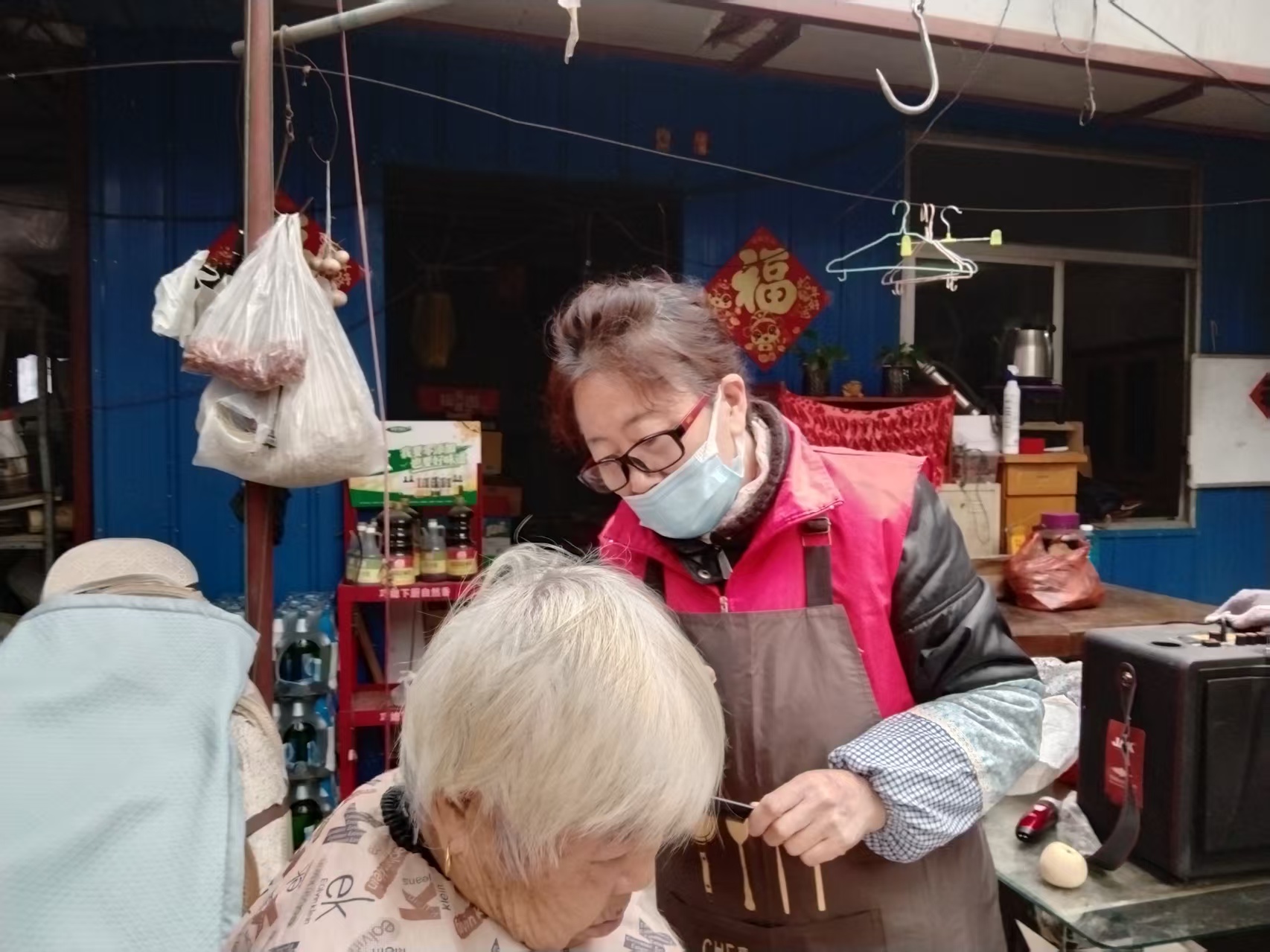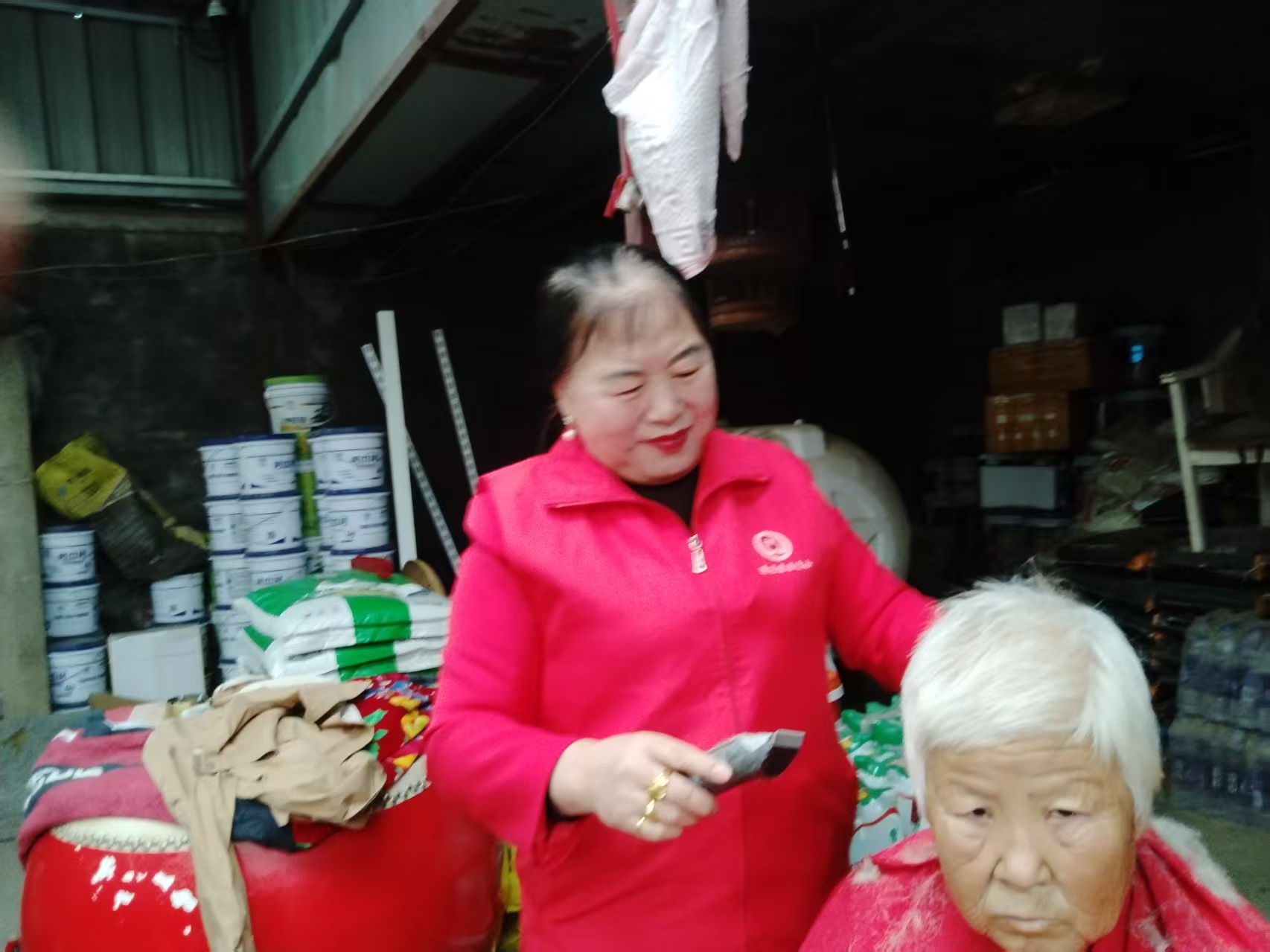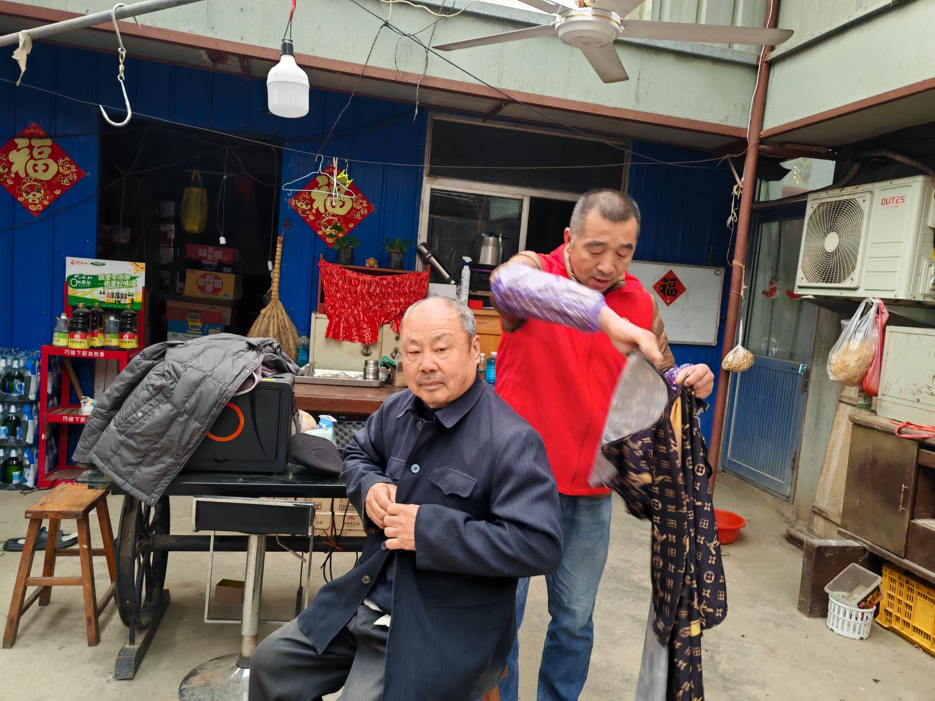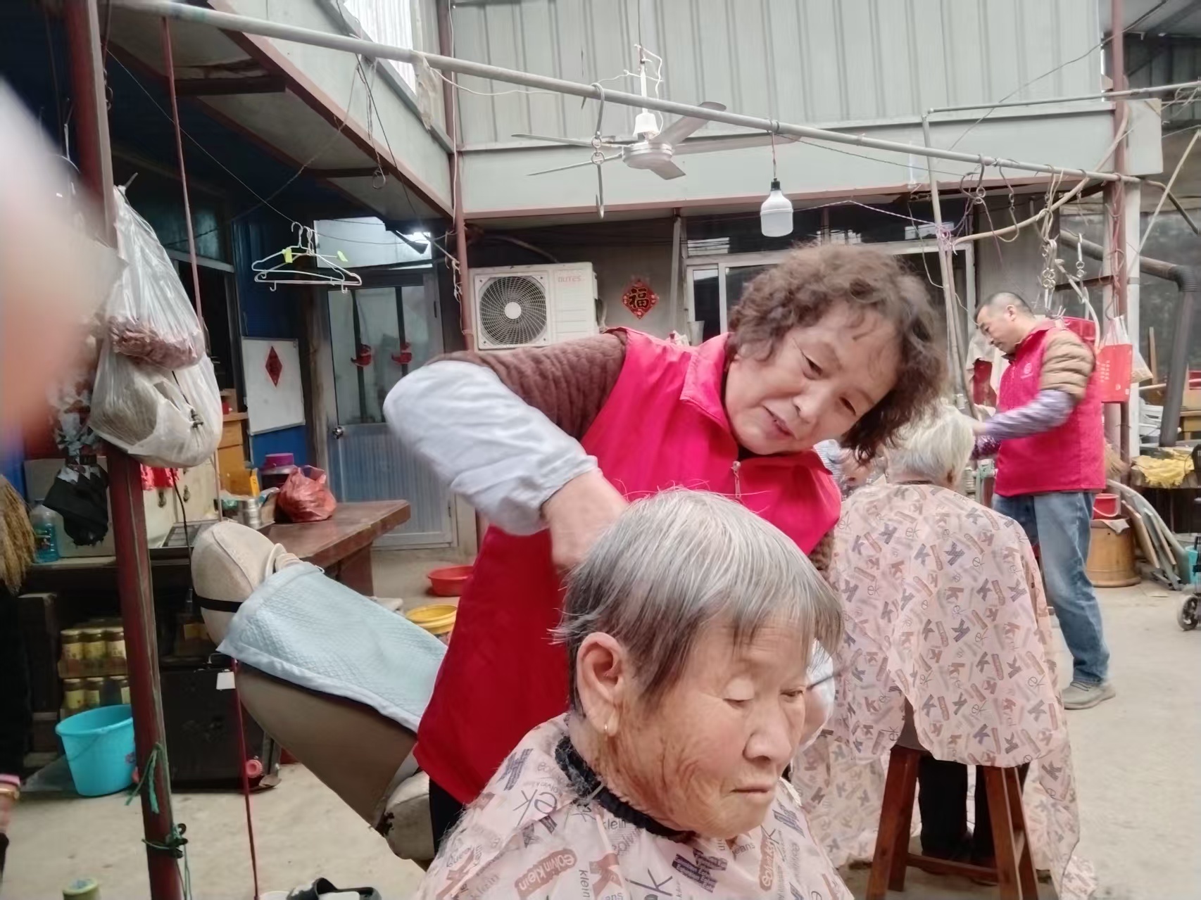 蓬莱区慈善总会雷锋社义工队的家人们为荆魏村老人义剪活动