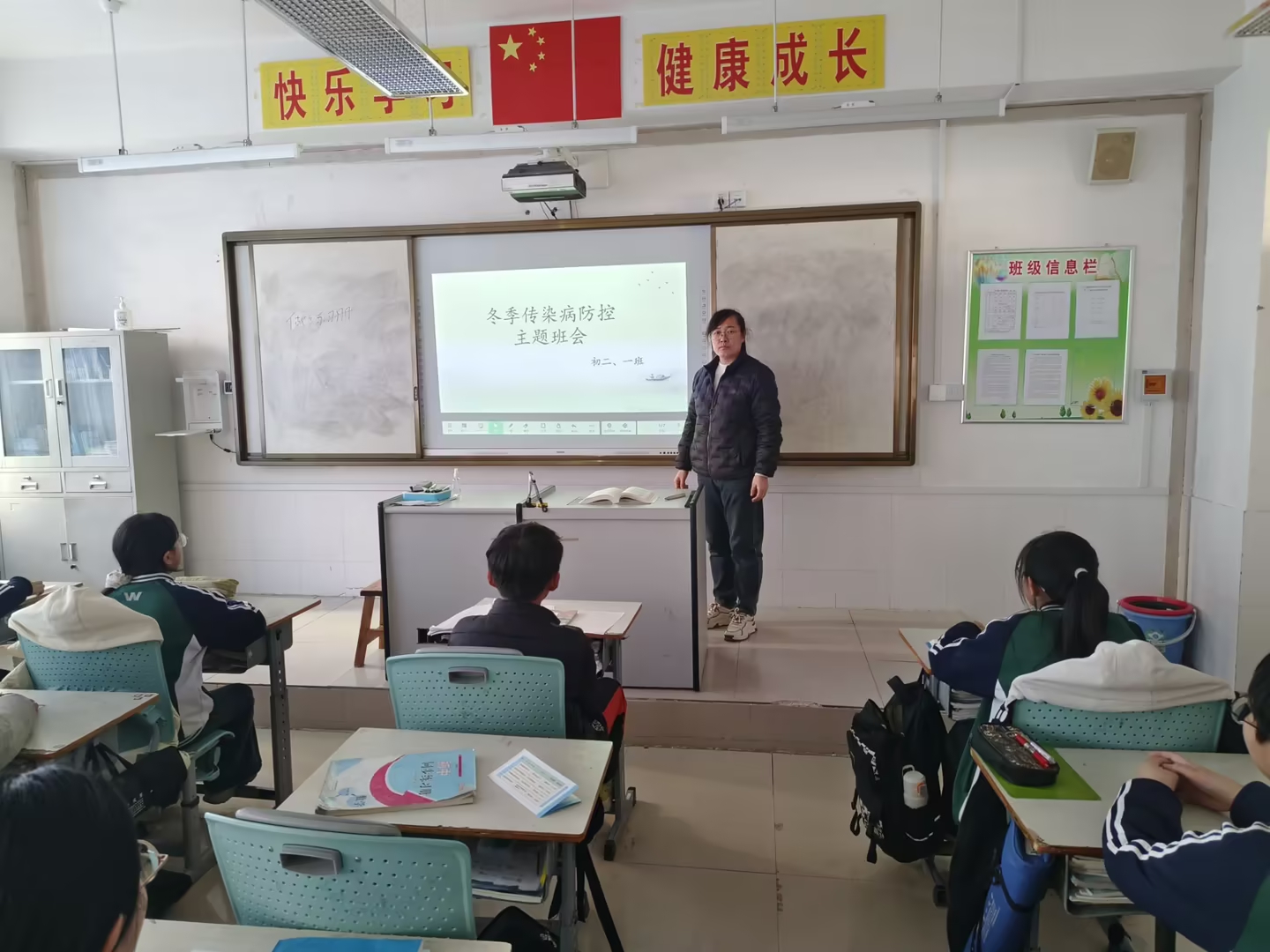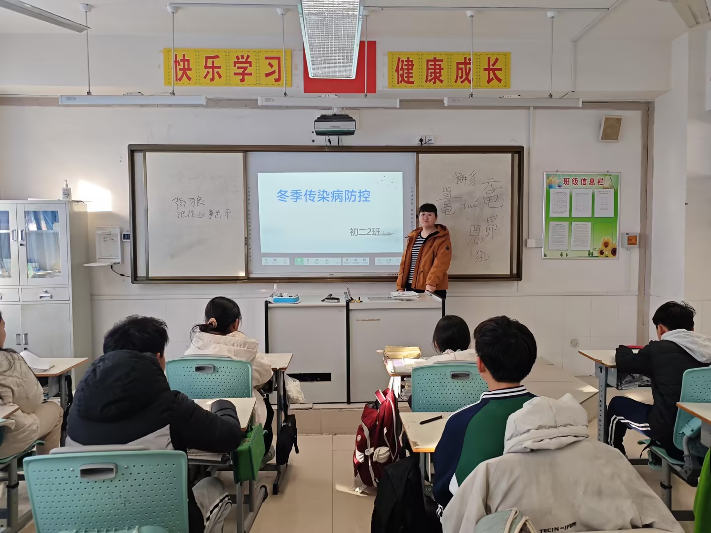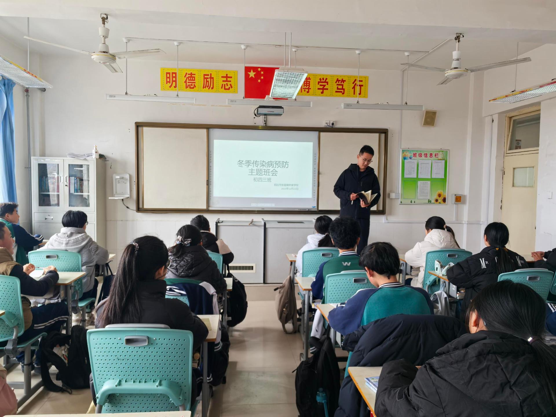针对冬季流感等传染病较多发,学生生病请假较多的情况,学校发动老师们对学生进行有关传染病等相关防控知识宣传教育,使学生掌握疾病的知识。