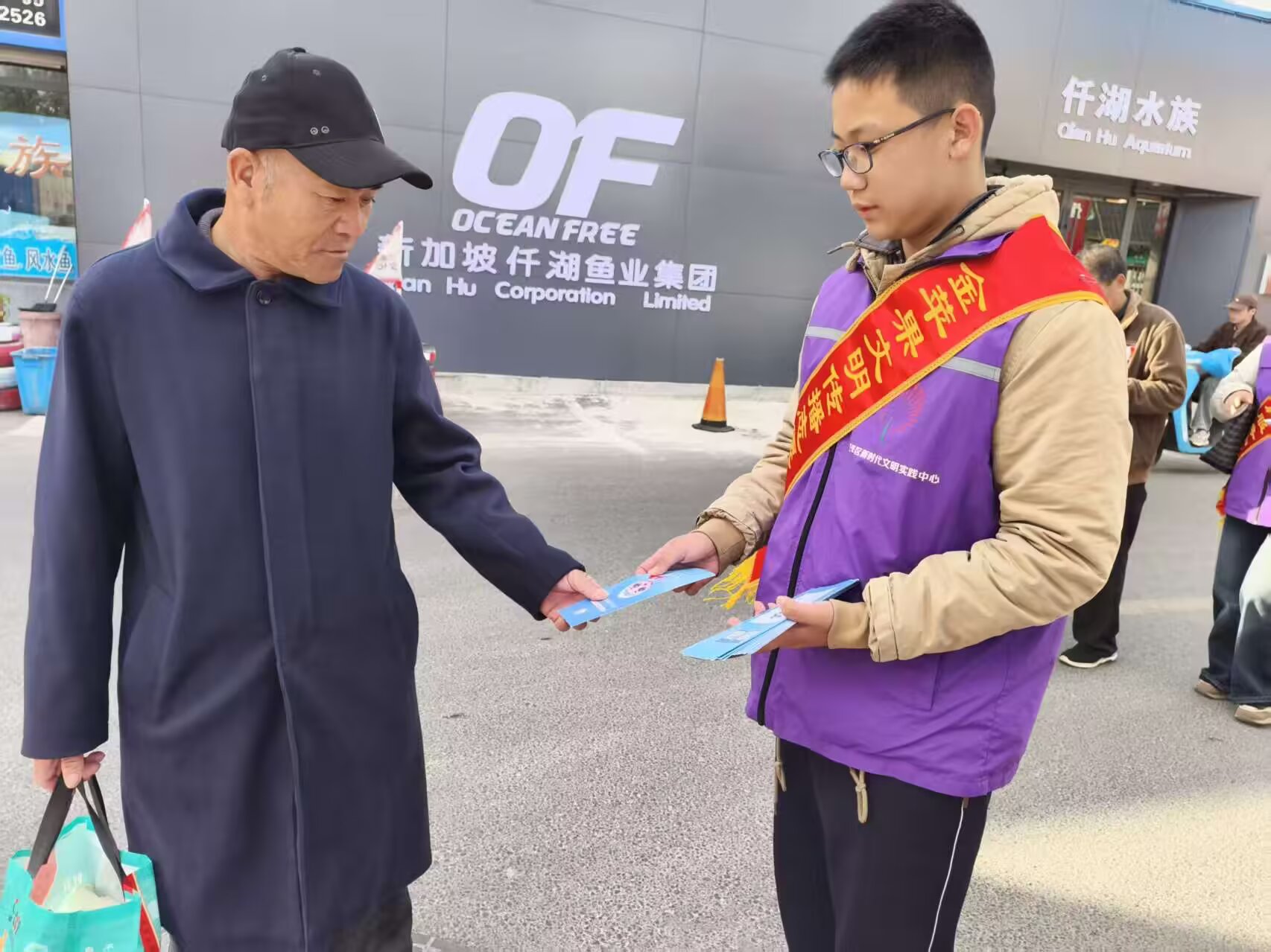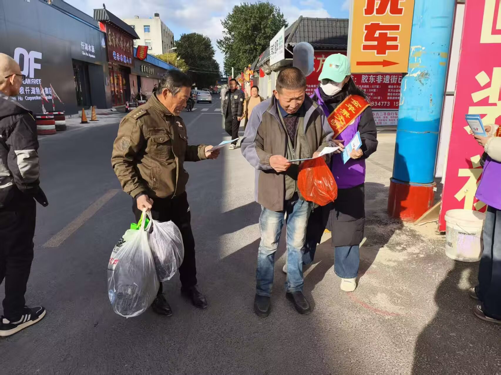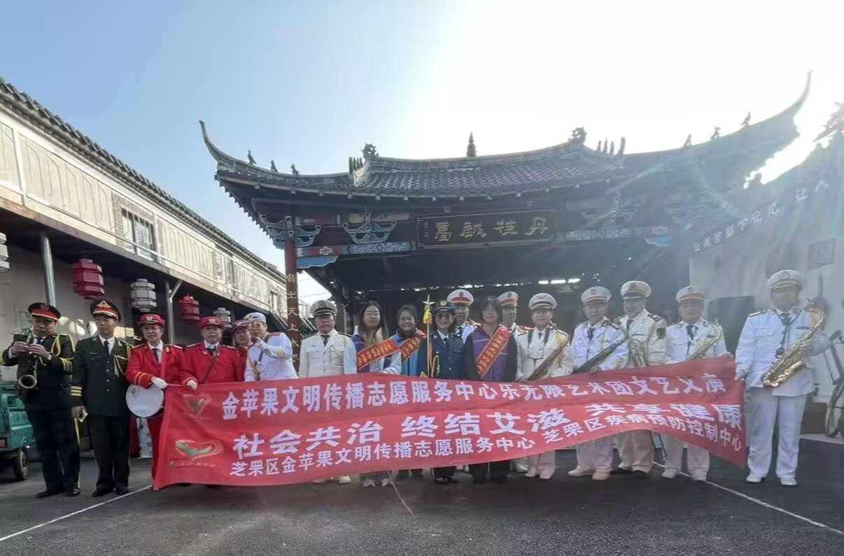 芝罘区金苹果文明传播志愿服务中心—乐无限艺术团和支农里分队,2025年11月2日上午7:30时至11:30时在东方市场大舞台歌舞义务演出,维持秩序和发宣传艾滋病相关知识的彩页传单。