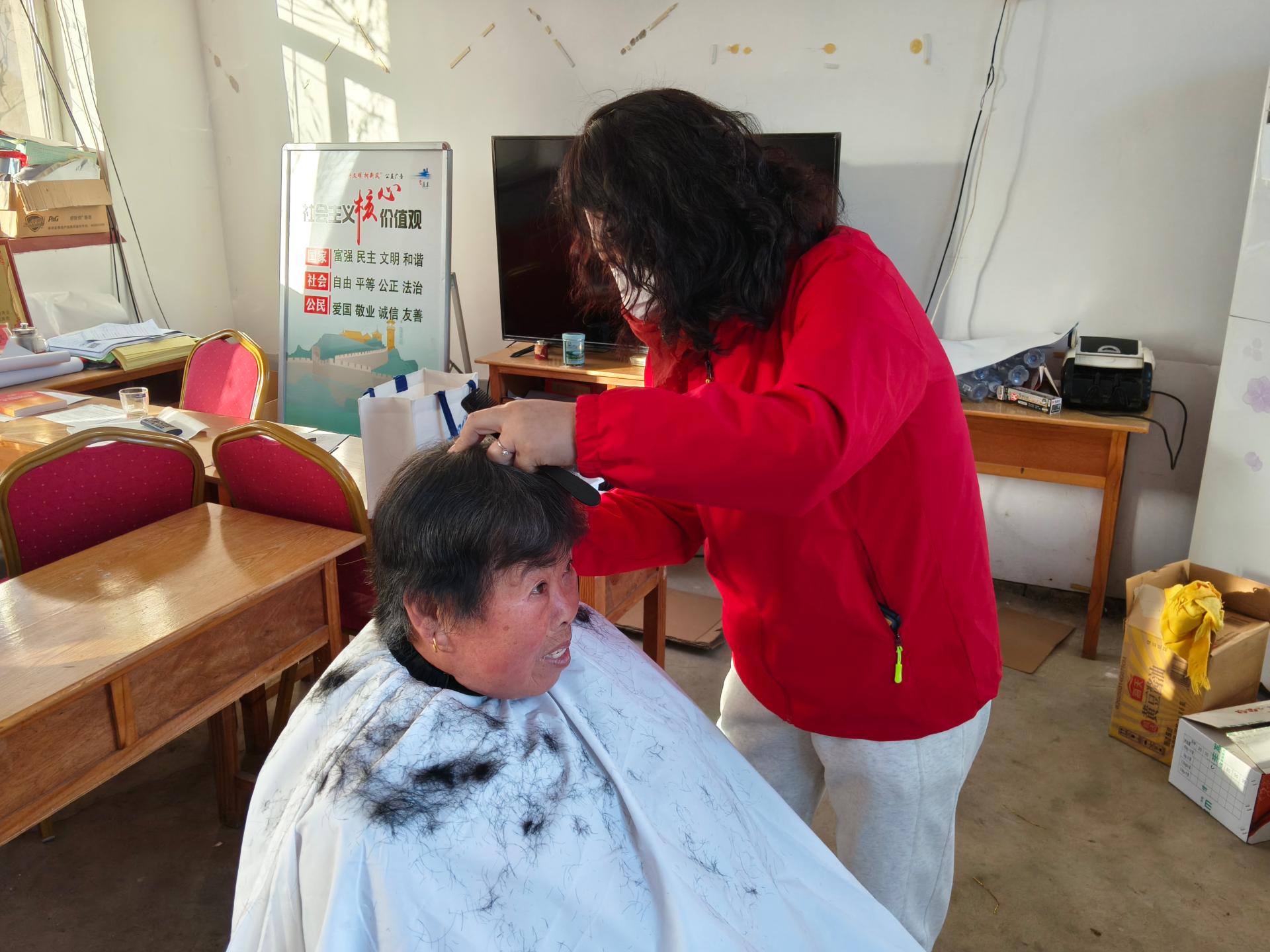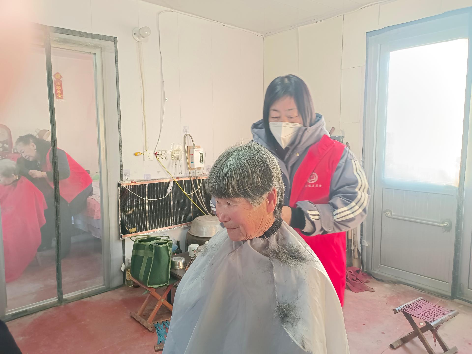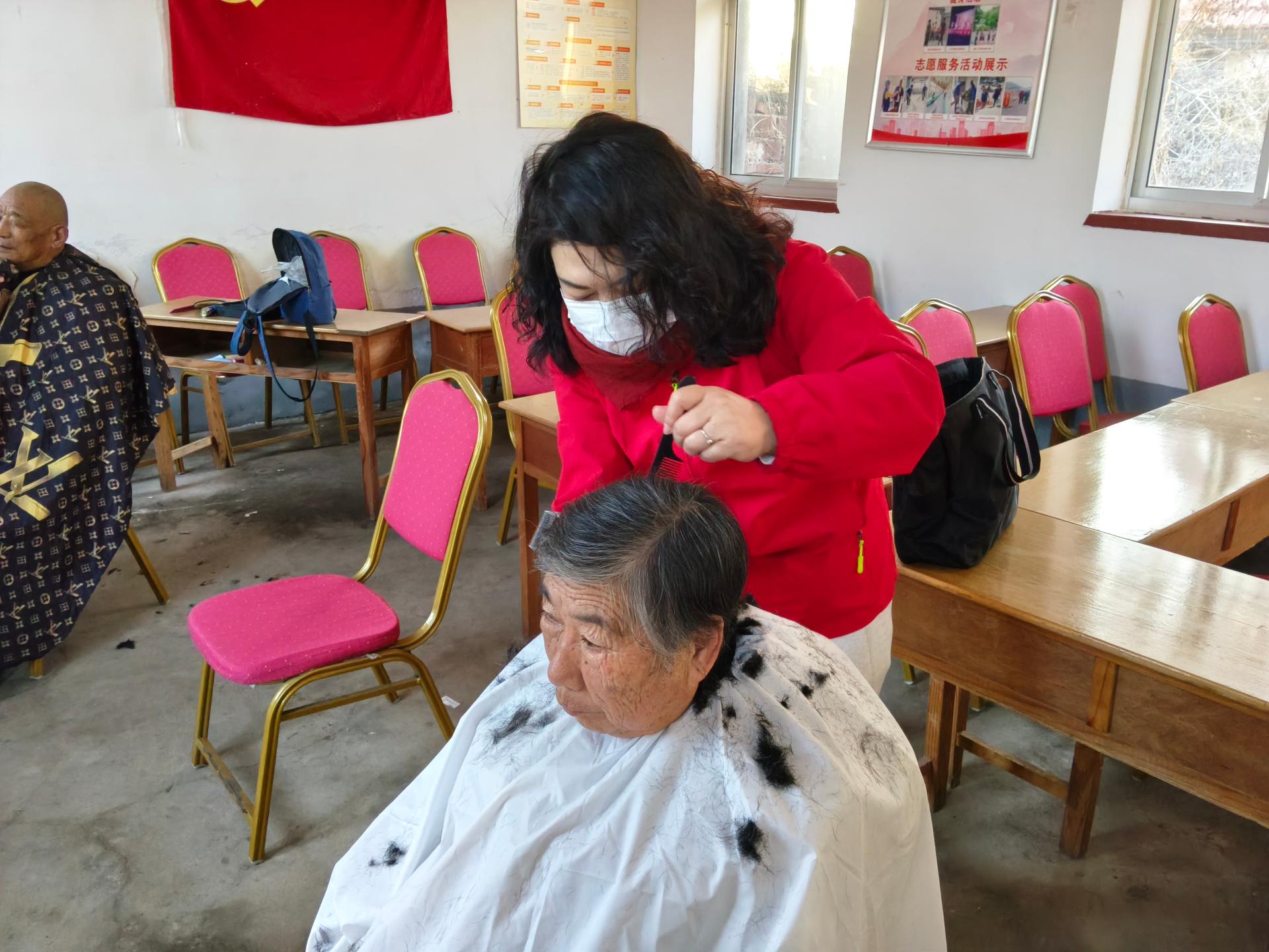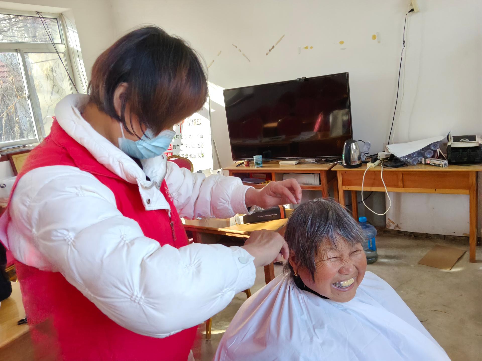 蓬莱区慈善总会雷锋社义工队的家人们为大丁家村老人义剪活动