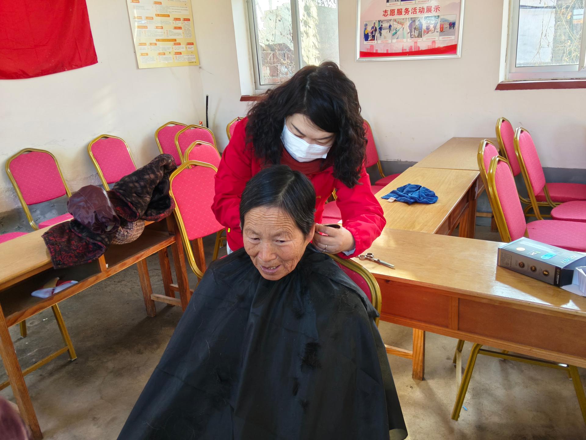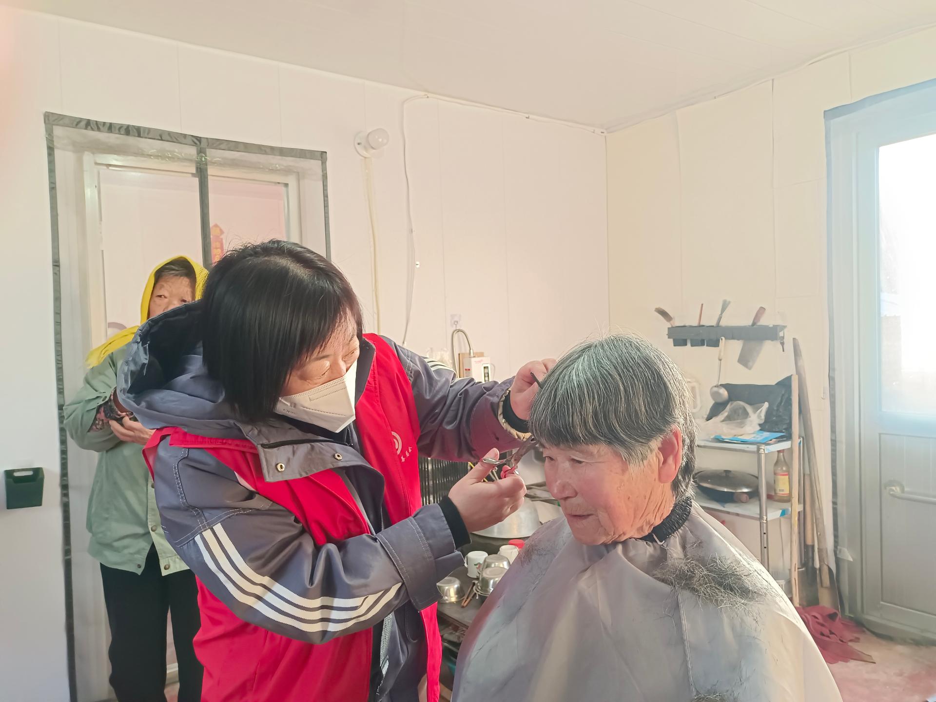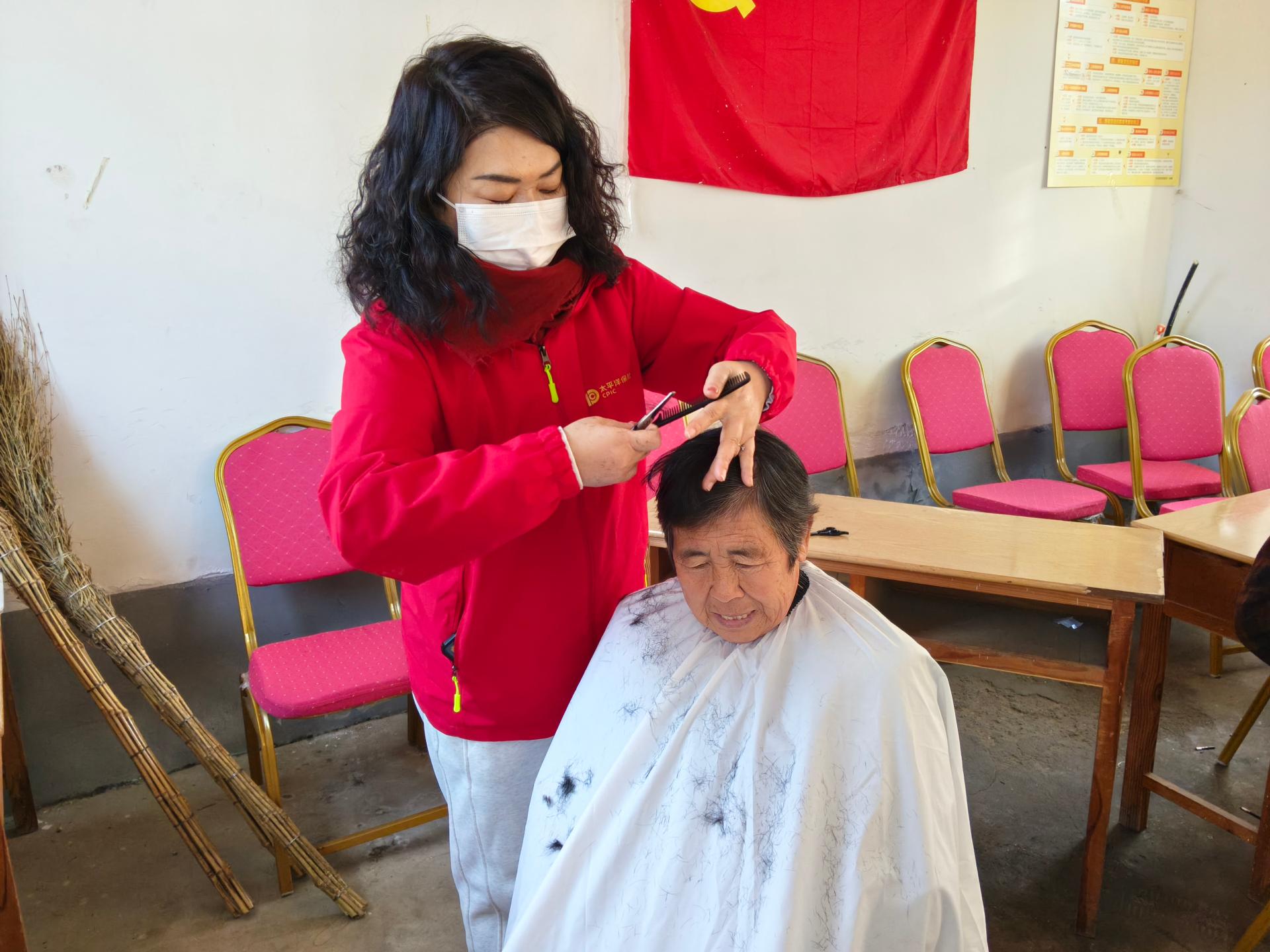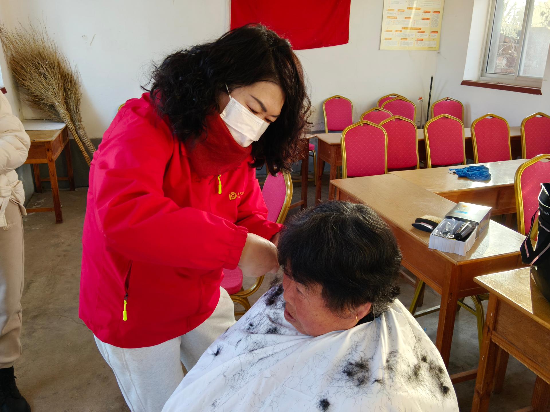 蓬莱区慈善总会雷锋社义工队的家人们为大丁家村老人义剪活动