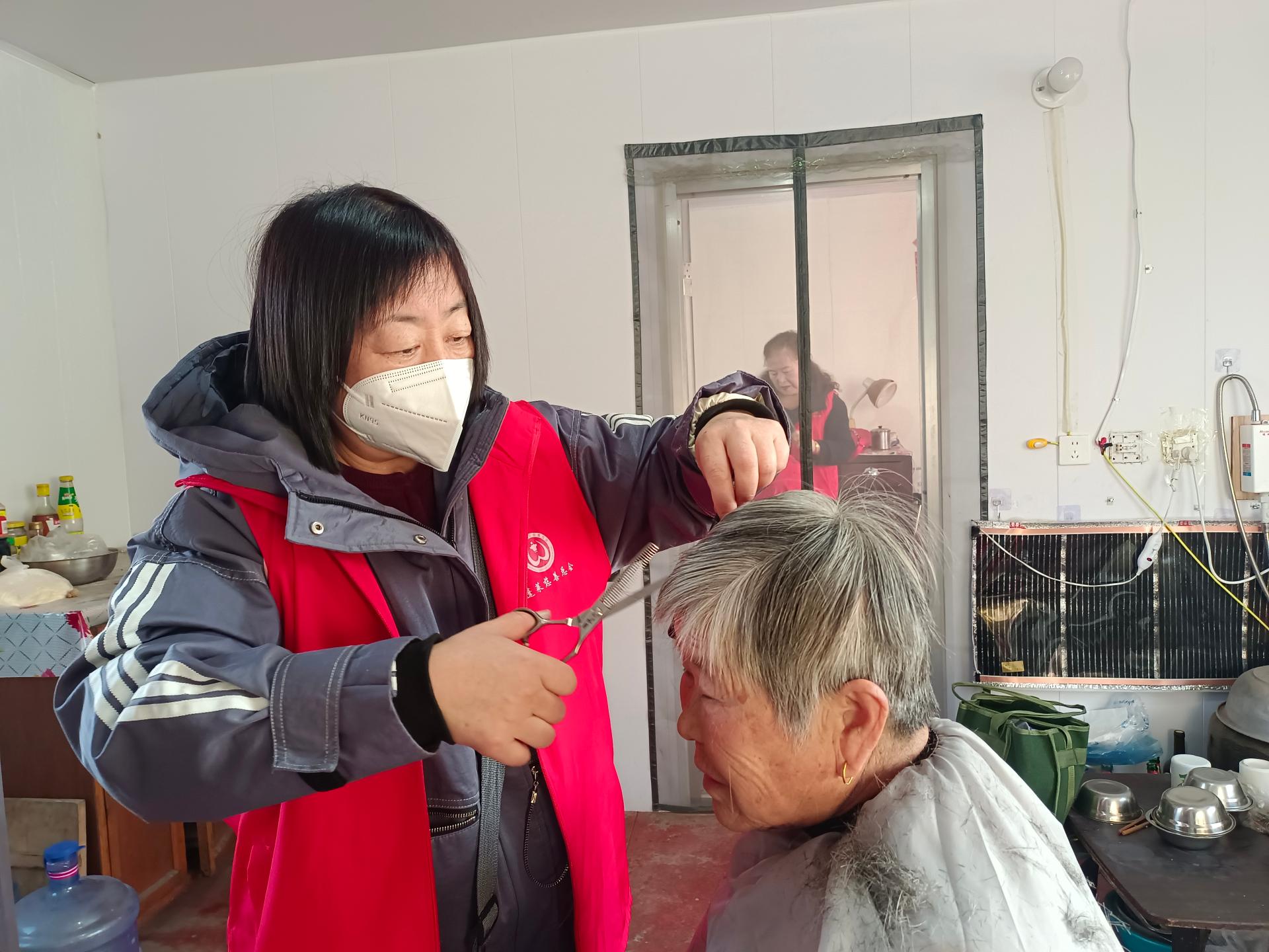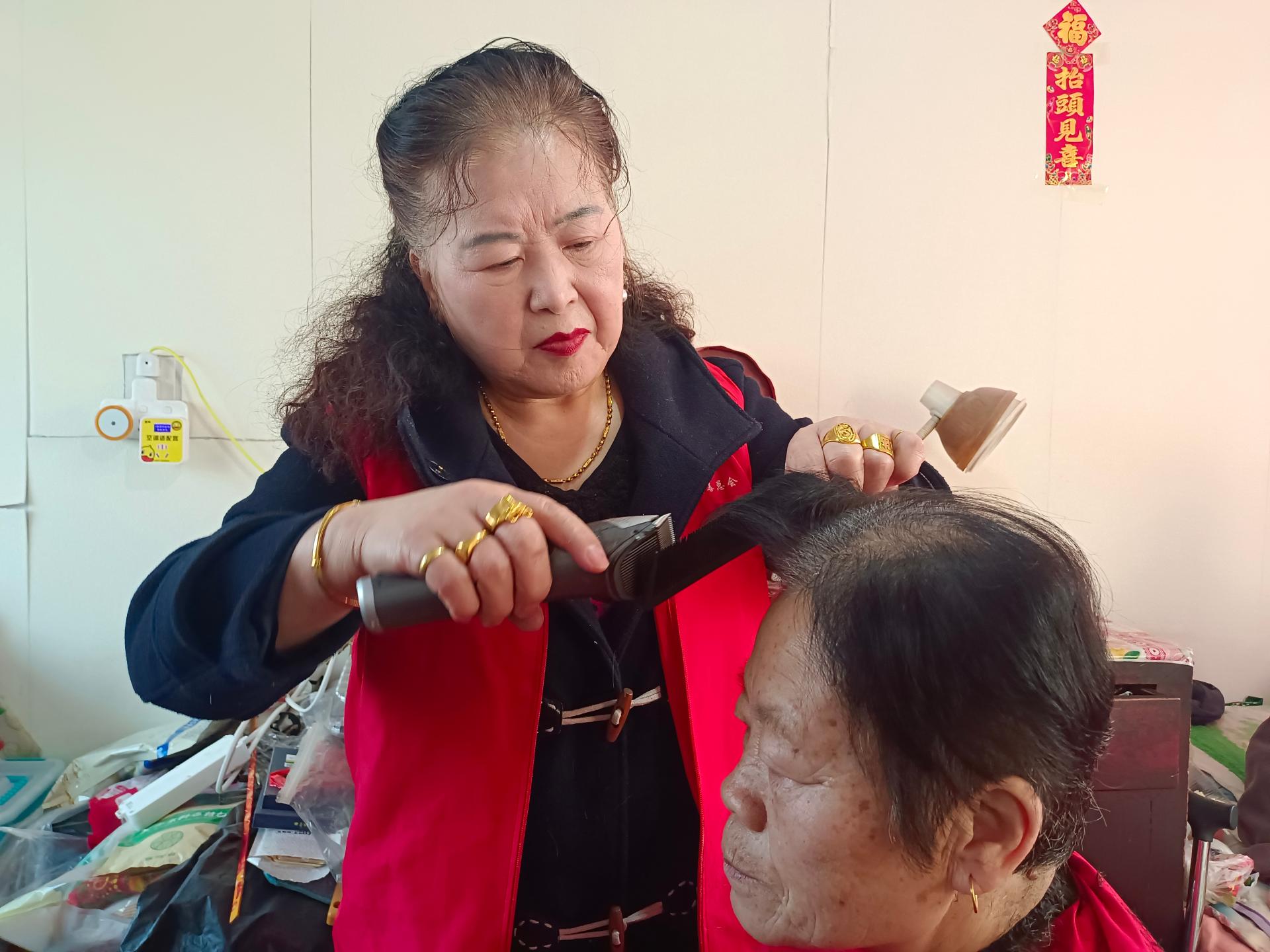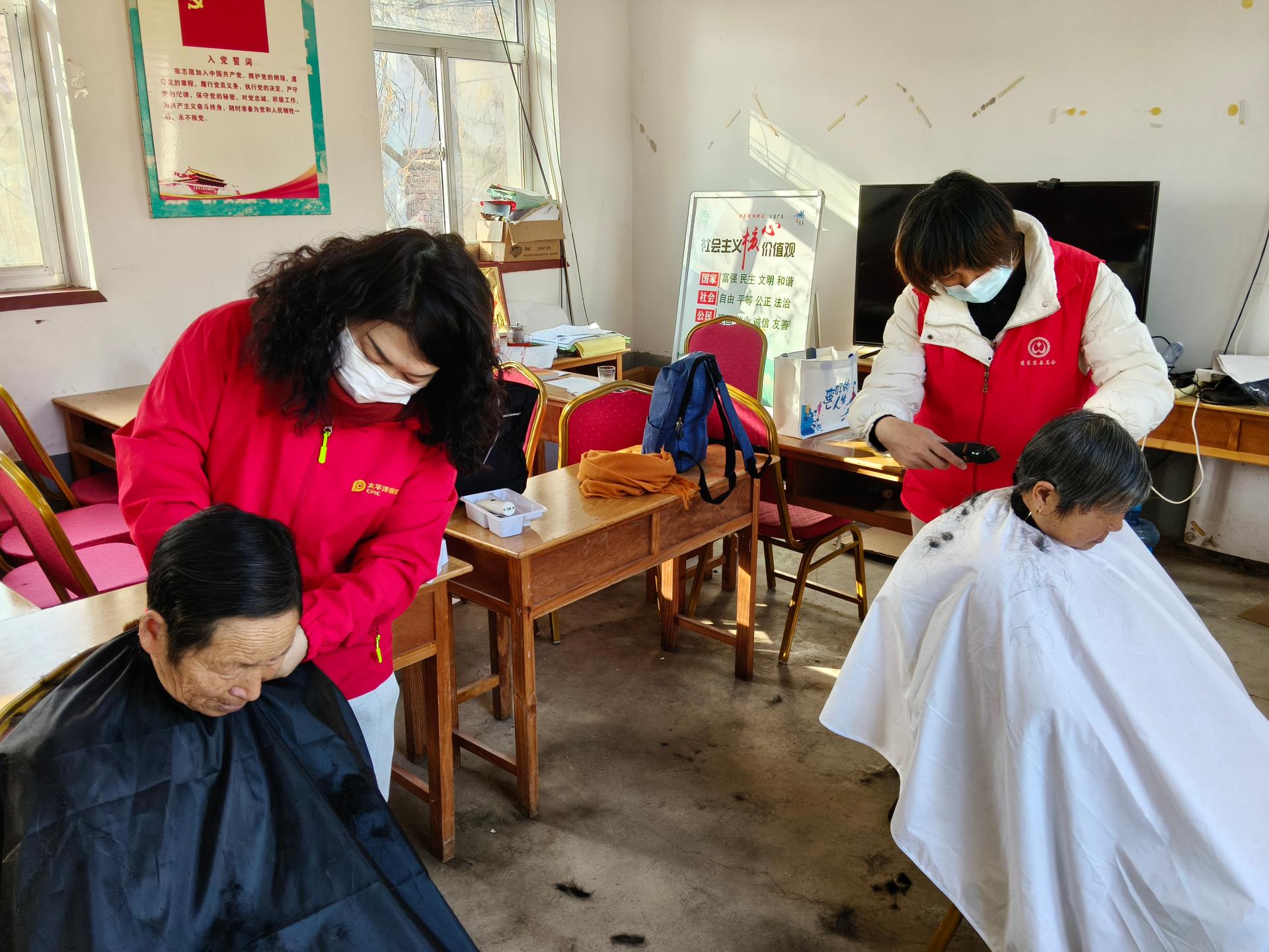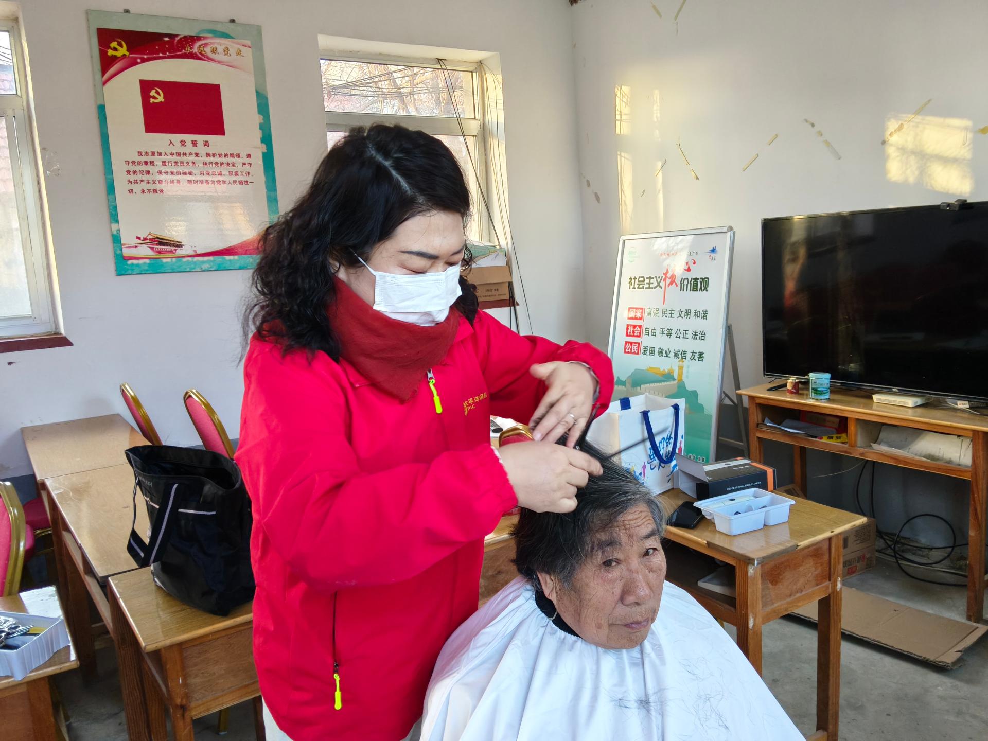 蓬莱区慈善总会雷锋社义工队的家人们为大丁家村老人义剪活动