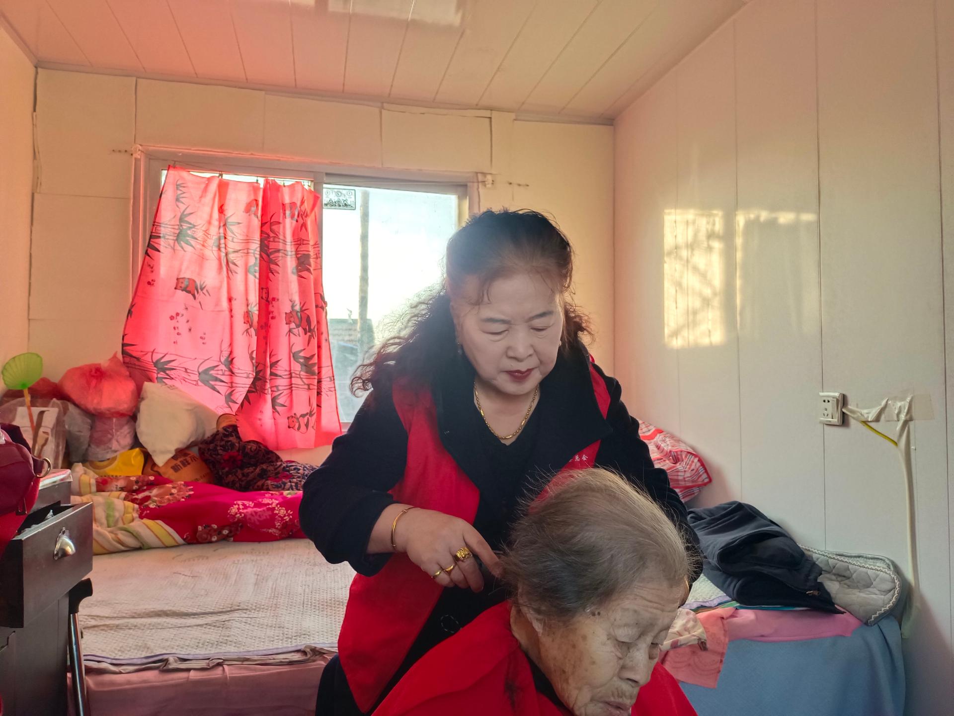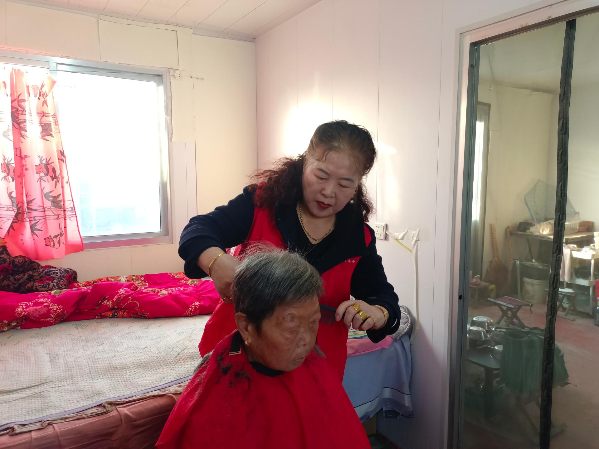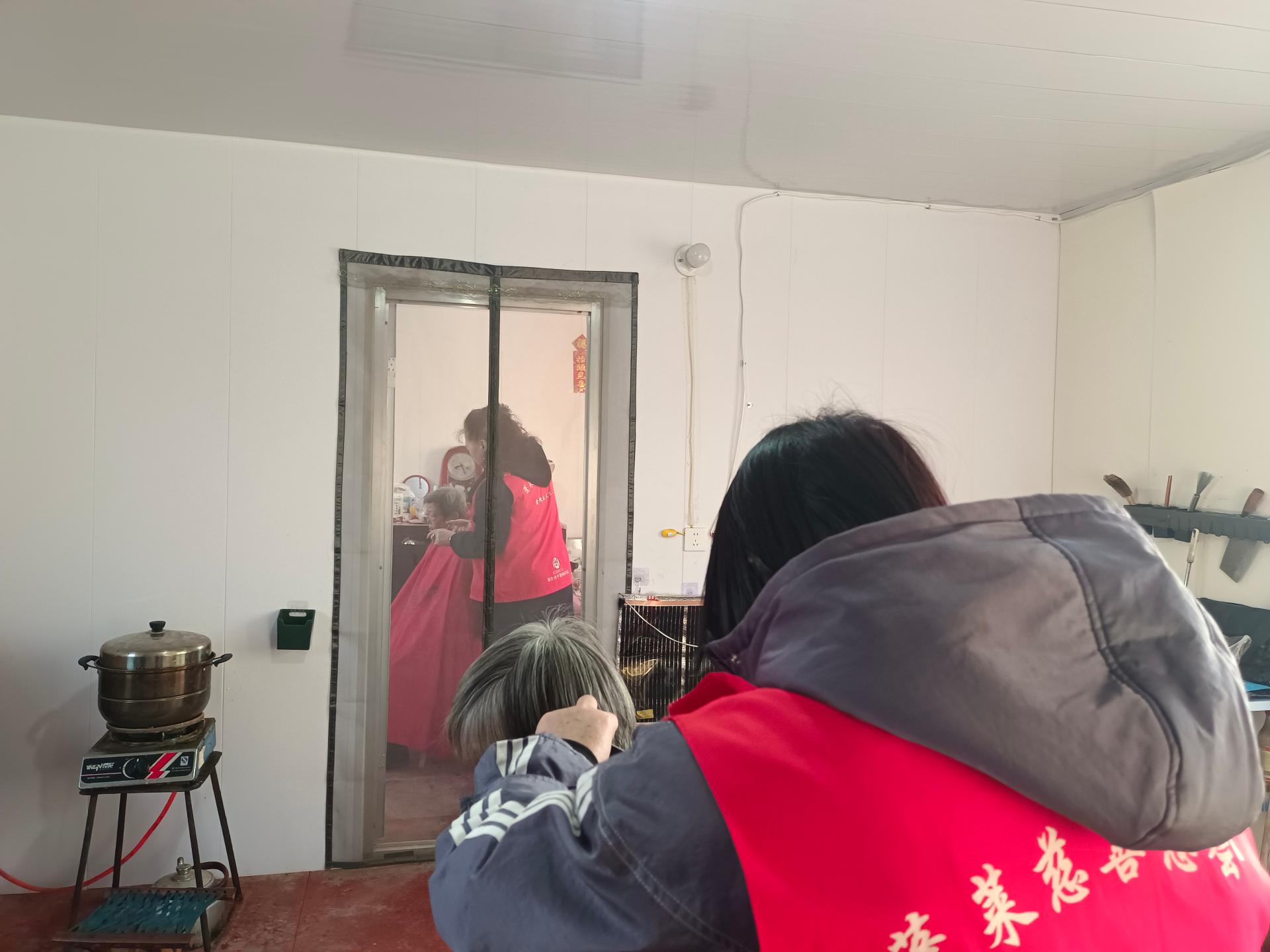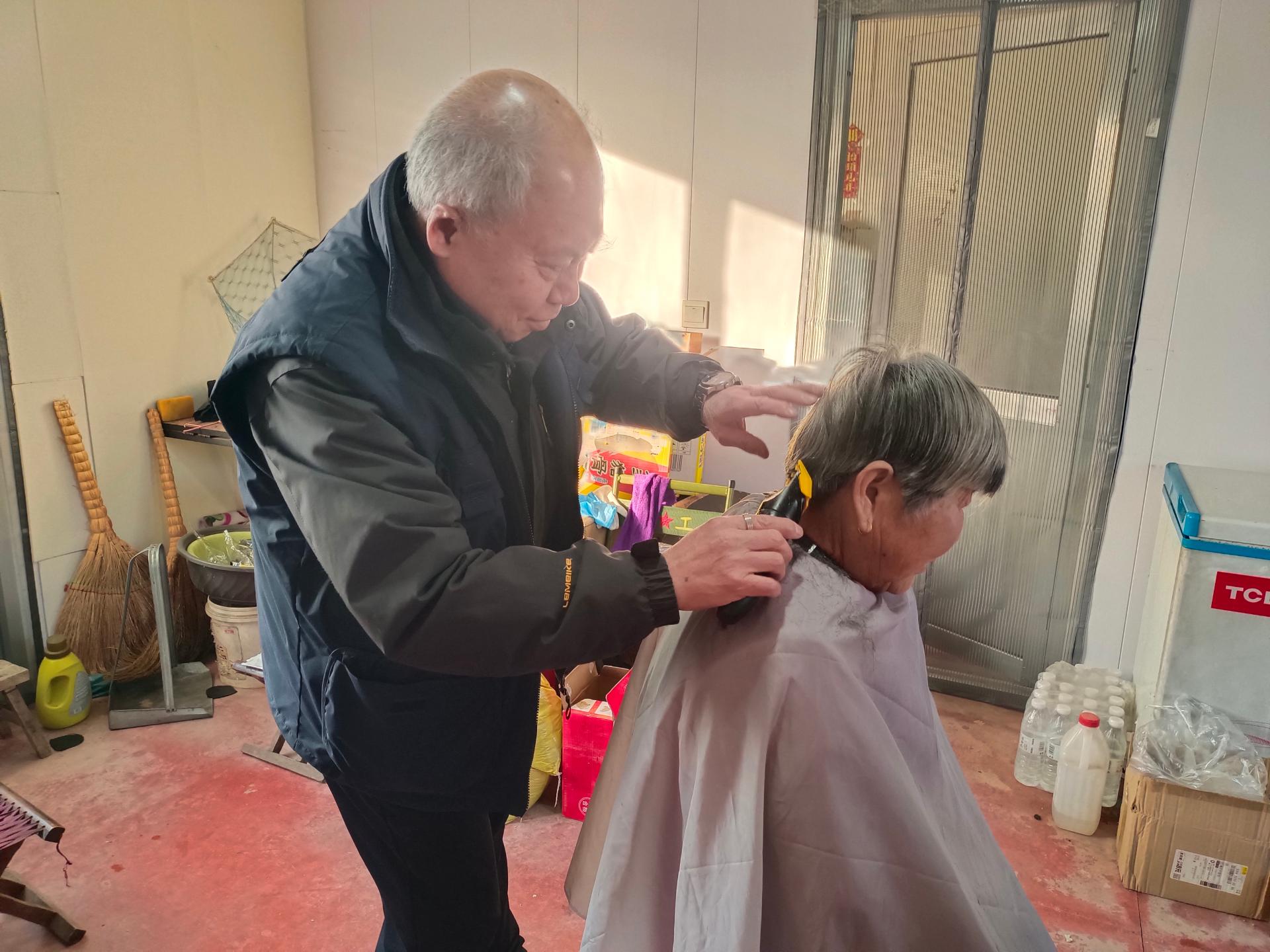 蓬莱区慈善总会雷锋社义工队的家人们为大丁家村老人义剪活动