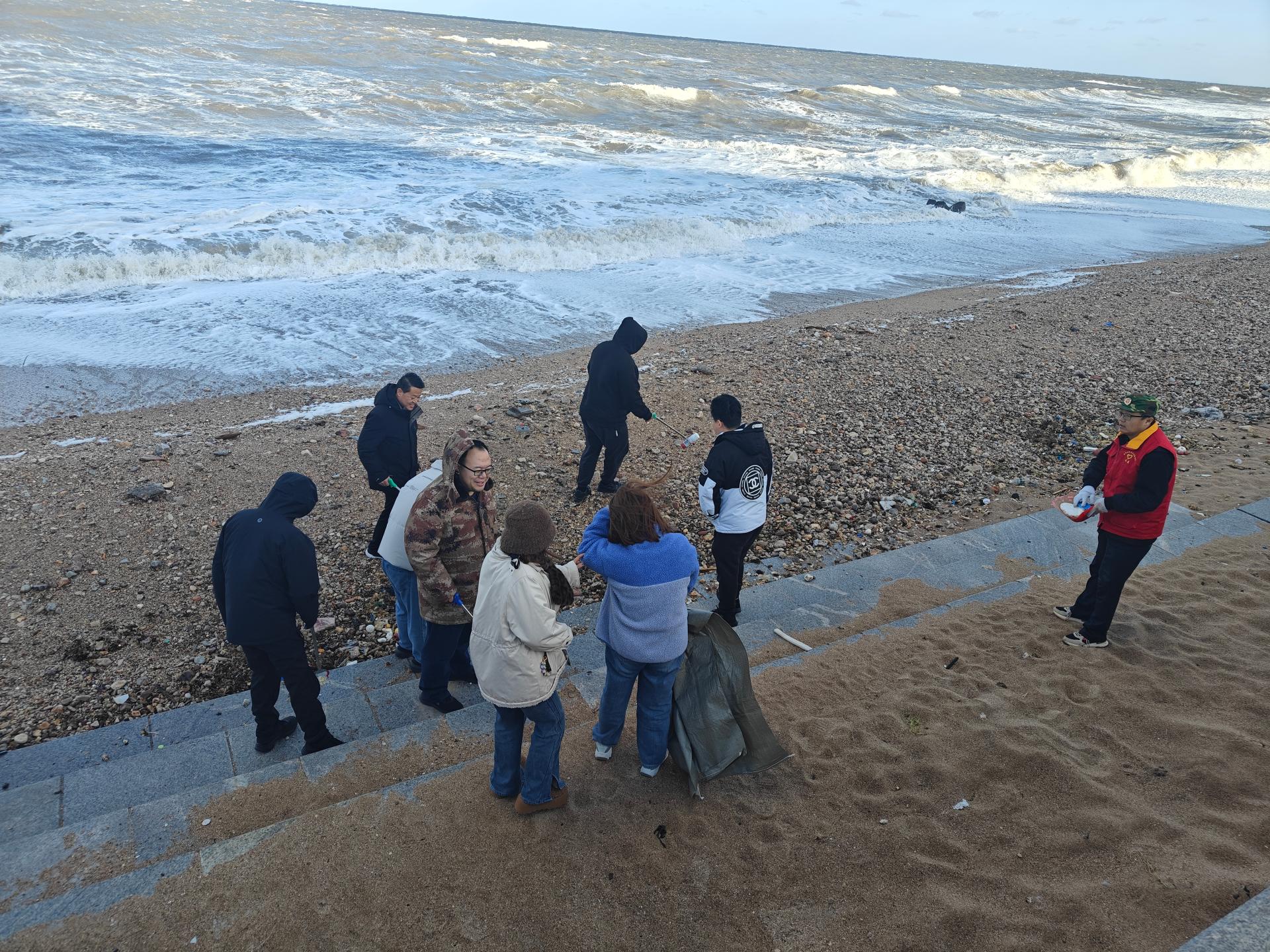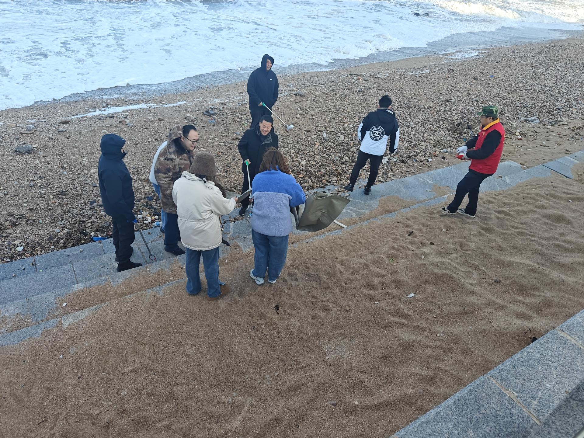 经济发展局志愿服务队携带工具,对岸滩开展排查,对养殖浮球、塑料瓶、废弃渔网等垃圾进行清理,并做好垃圾收集处理等工作。