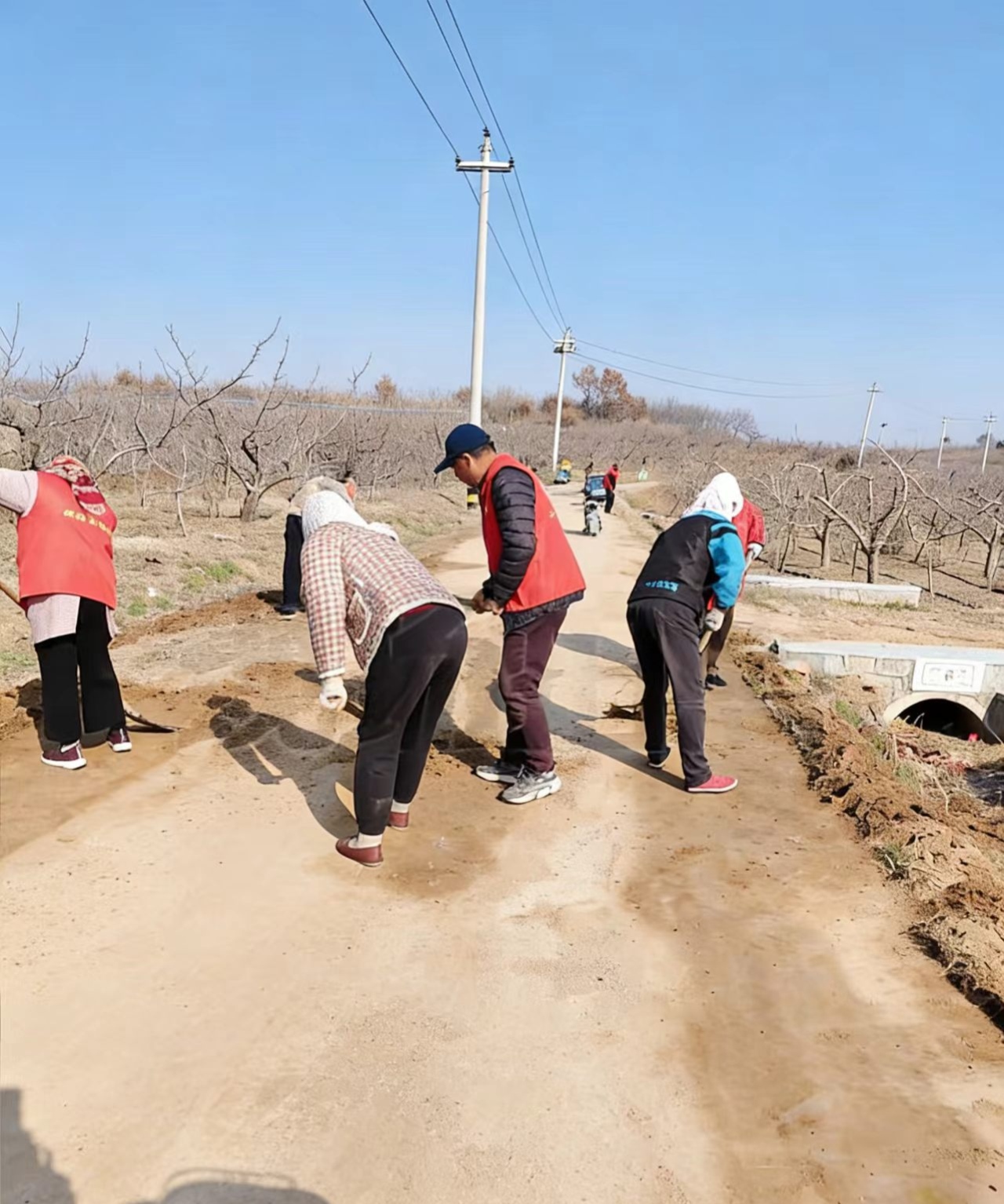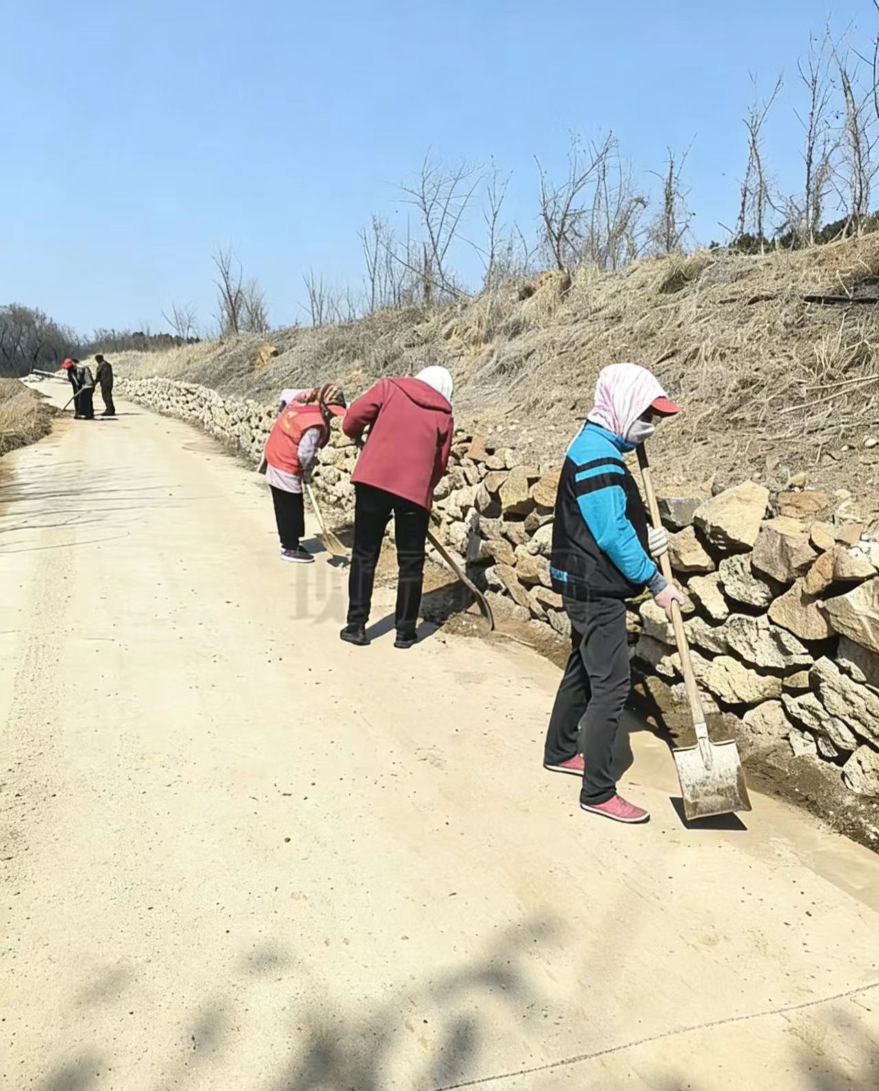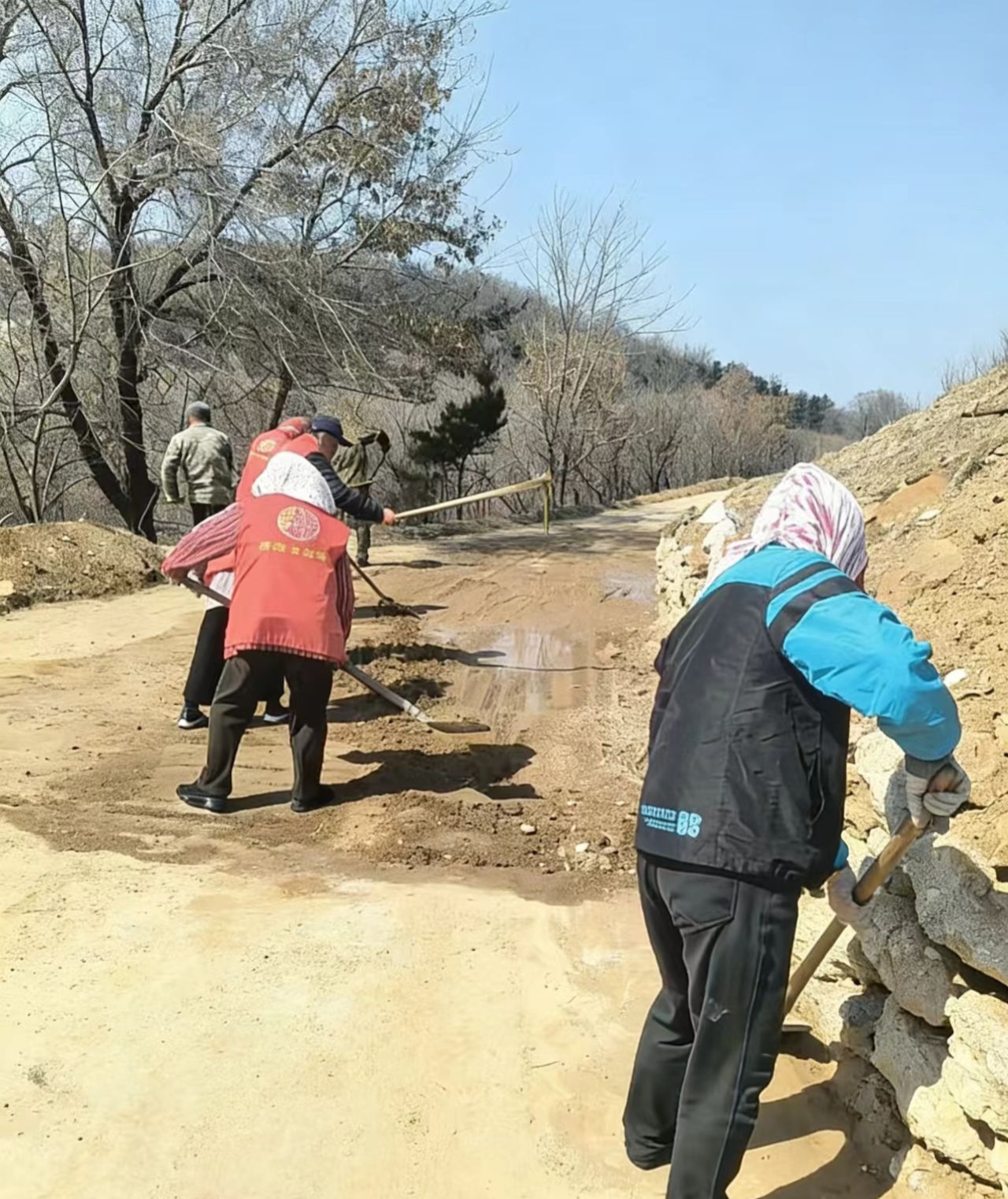 现在正是森林防火时候,为了保障车辆通行,富阳耿家村全体公益岗人带上工具对道路两边泥土、石子进行清理干净。