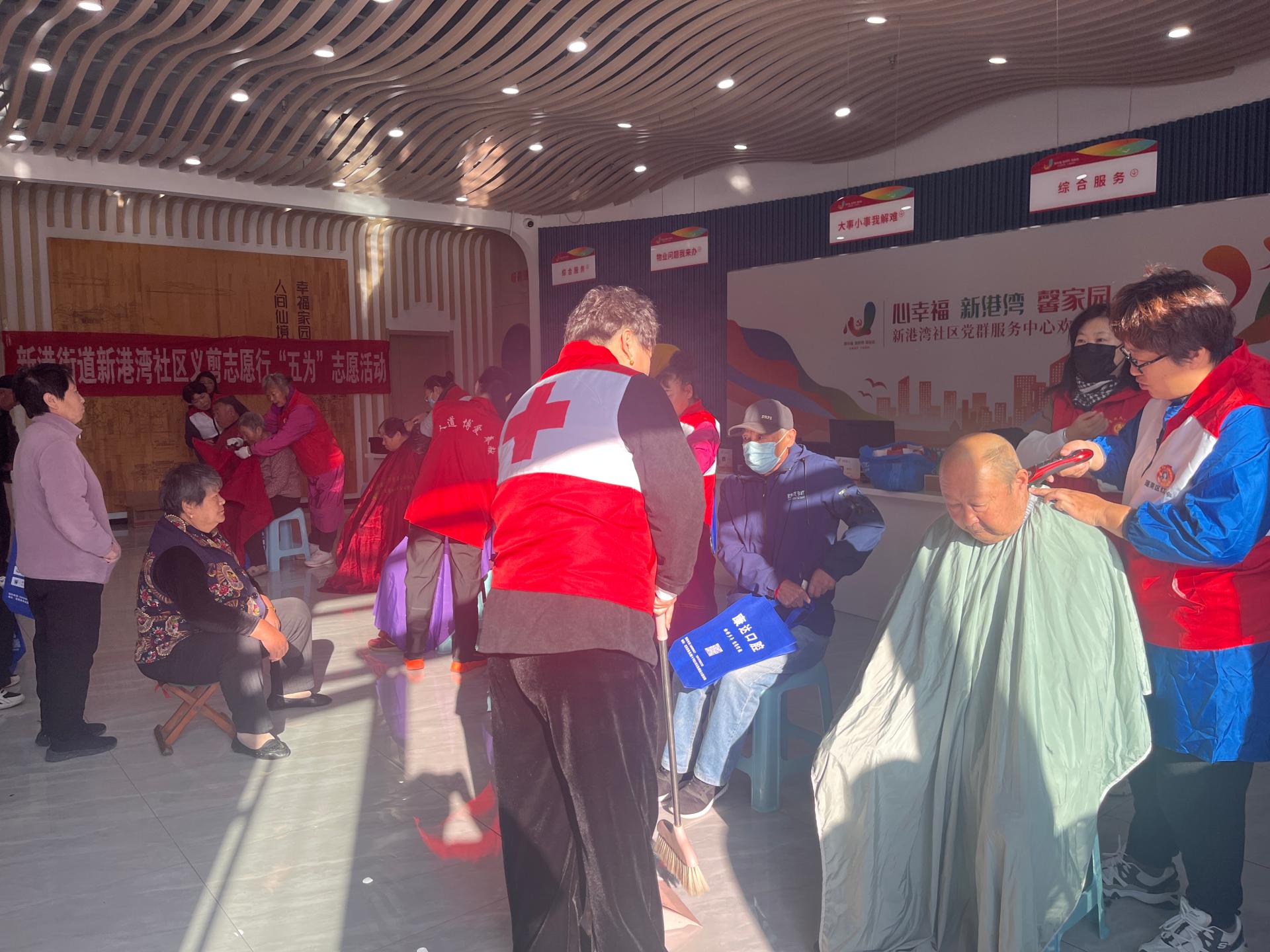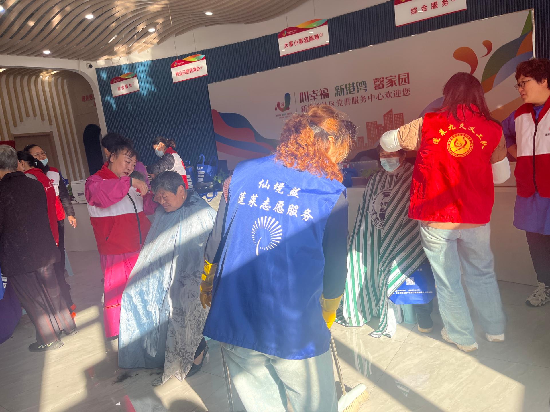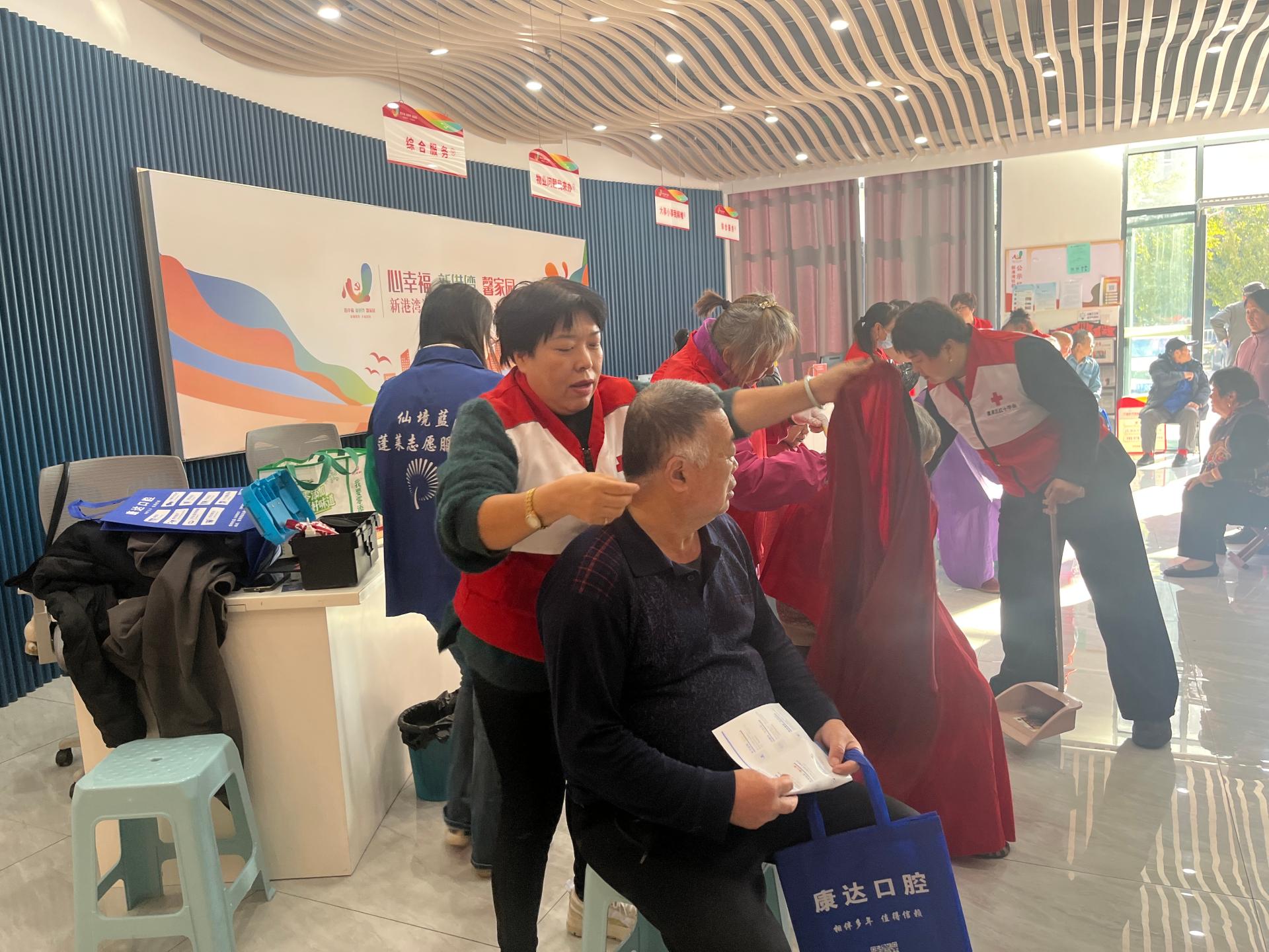 新港街道新港湾社区举行公益大集,庆丰收金秋,贺温情重阳。汇聚便民公益服务与特色仙境好物,涵盖义诊、理发、政策咨询等多项内容。