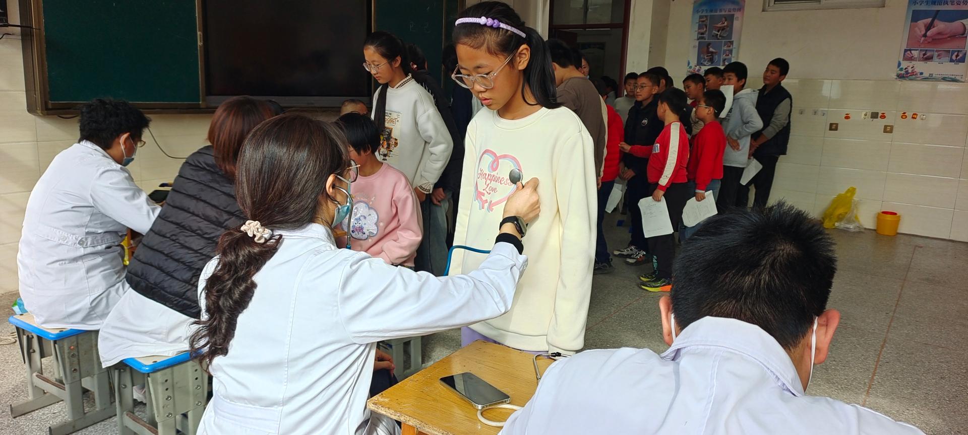 莱阳市沐浴店中心卫生院志愿者服务团队的医务志愿者们,到辖区小学,为小学生们开展健康查体活动,讲解健康知识。